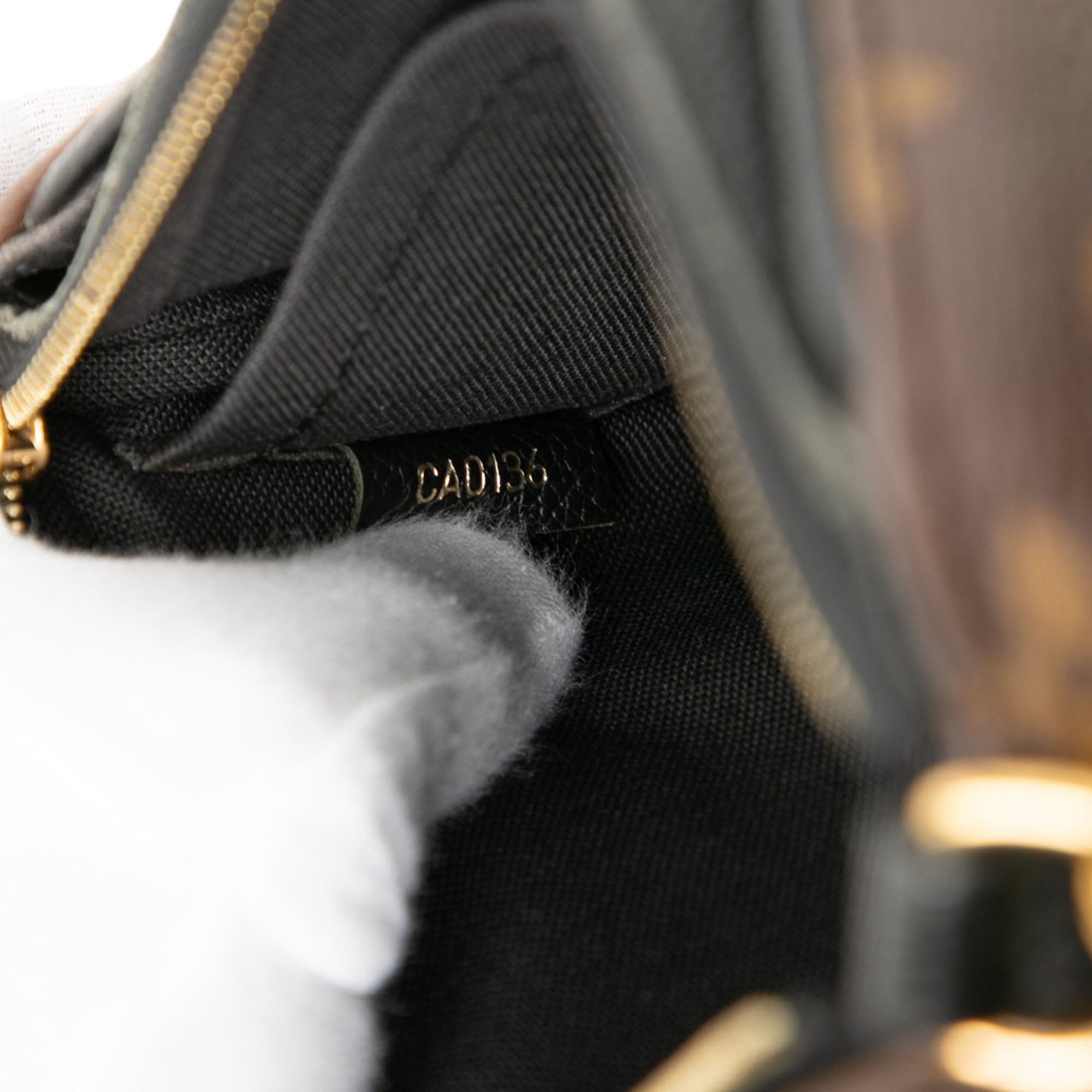 The Pallas features a monogram canvas body with leather trim, a gold-tone chain handle, a detachable flat leather strap, a top zip closure, an exterior slip pocket, and an interior slip pocket. Retail Price: 1558.00