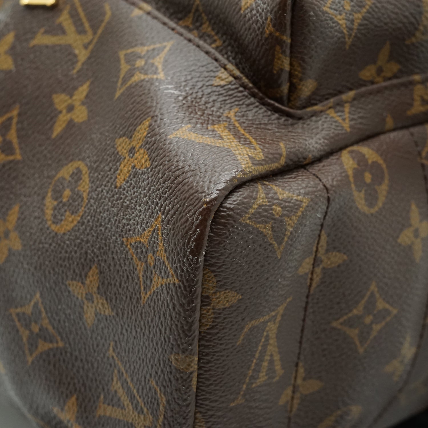 Monogram Palm Springs MM Brown/Black Canvas, LeatherDepth: 10cmHeight: 35cmWidth: 28cmShoulder Drop: 30cmHand Drop: 8cmPeeling: Canvas peeling on the upper area and on the sides (pattern fading)Serial code: PL2106