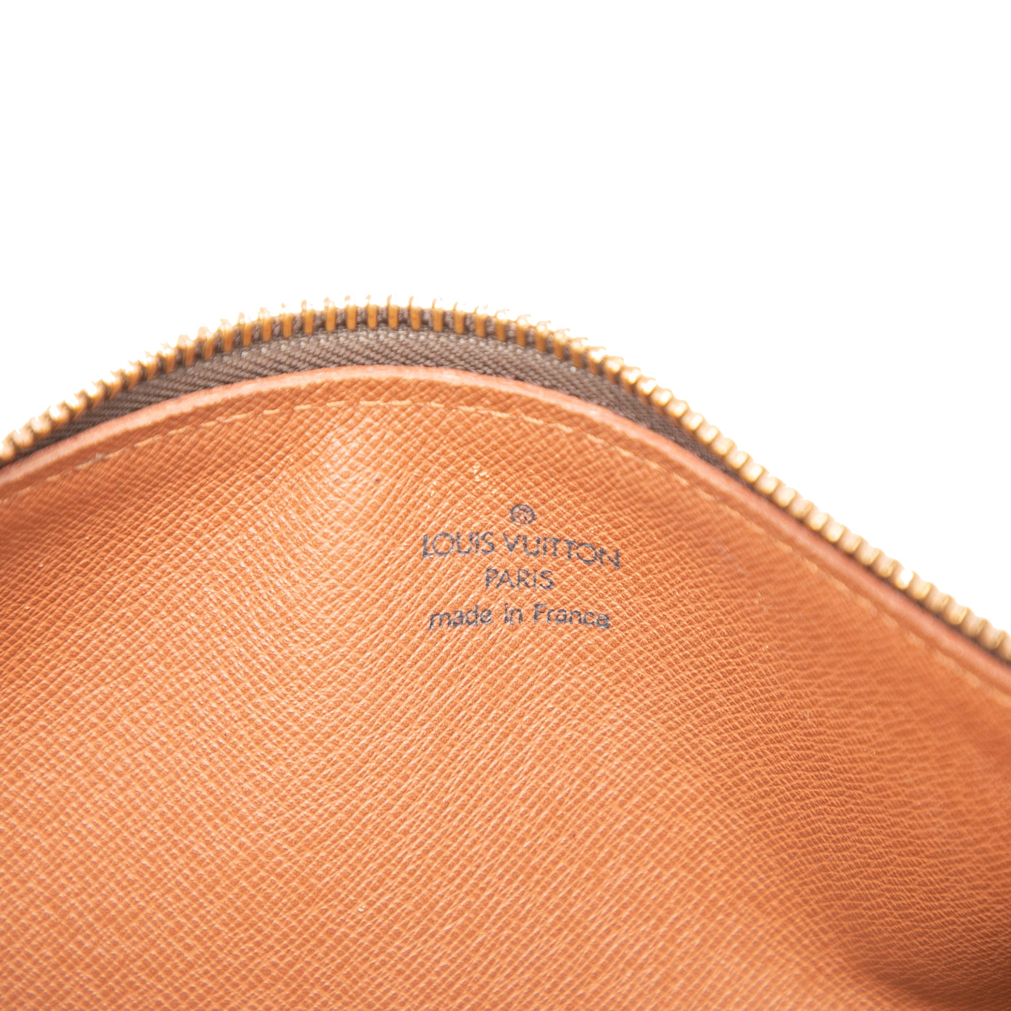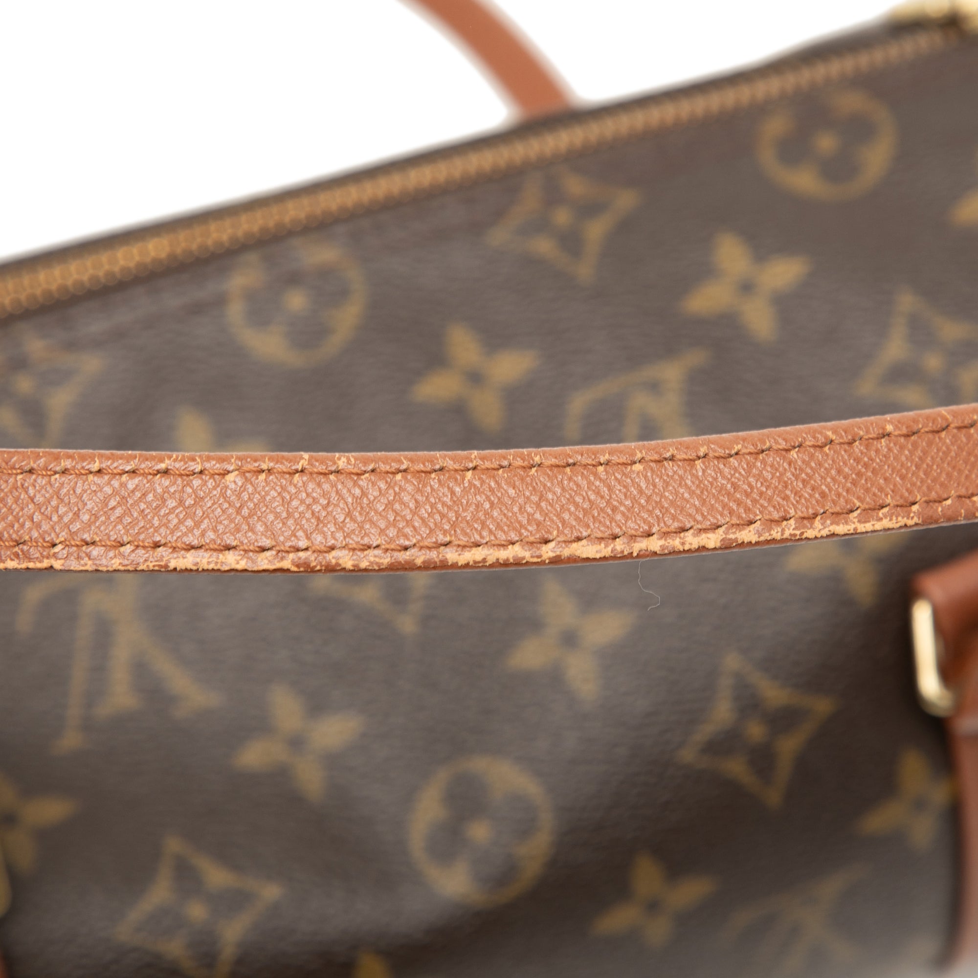 The Papillon 26 features a monogram canvas body with leather trim, flat leather handles, and a top zip closure. Retail Price: 1075.00