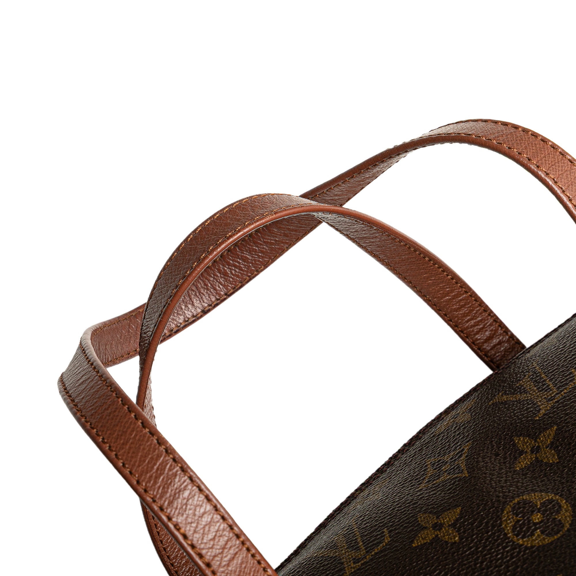 The Papillon 30 features a monogram canvas body, flat leather handles, and a top zip closure. Retail Price: 1298.00