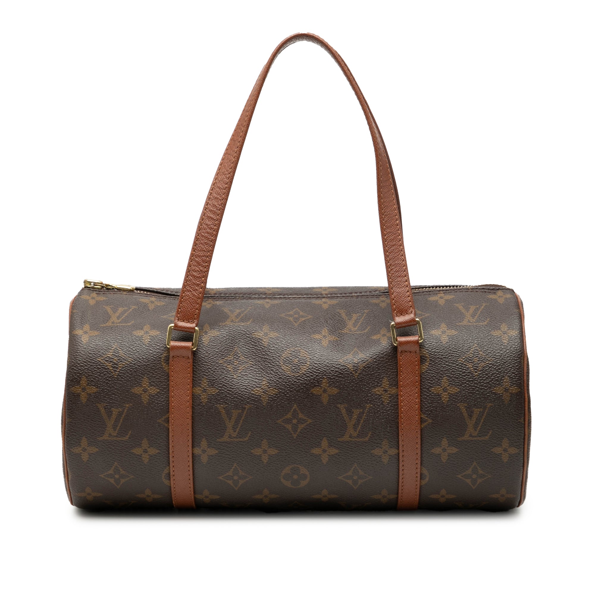 The Papillon 30 features a monogram canvas body, flat leather handles, and a top zip closure. Retail Price: 1298.00