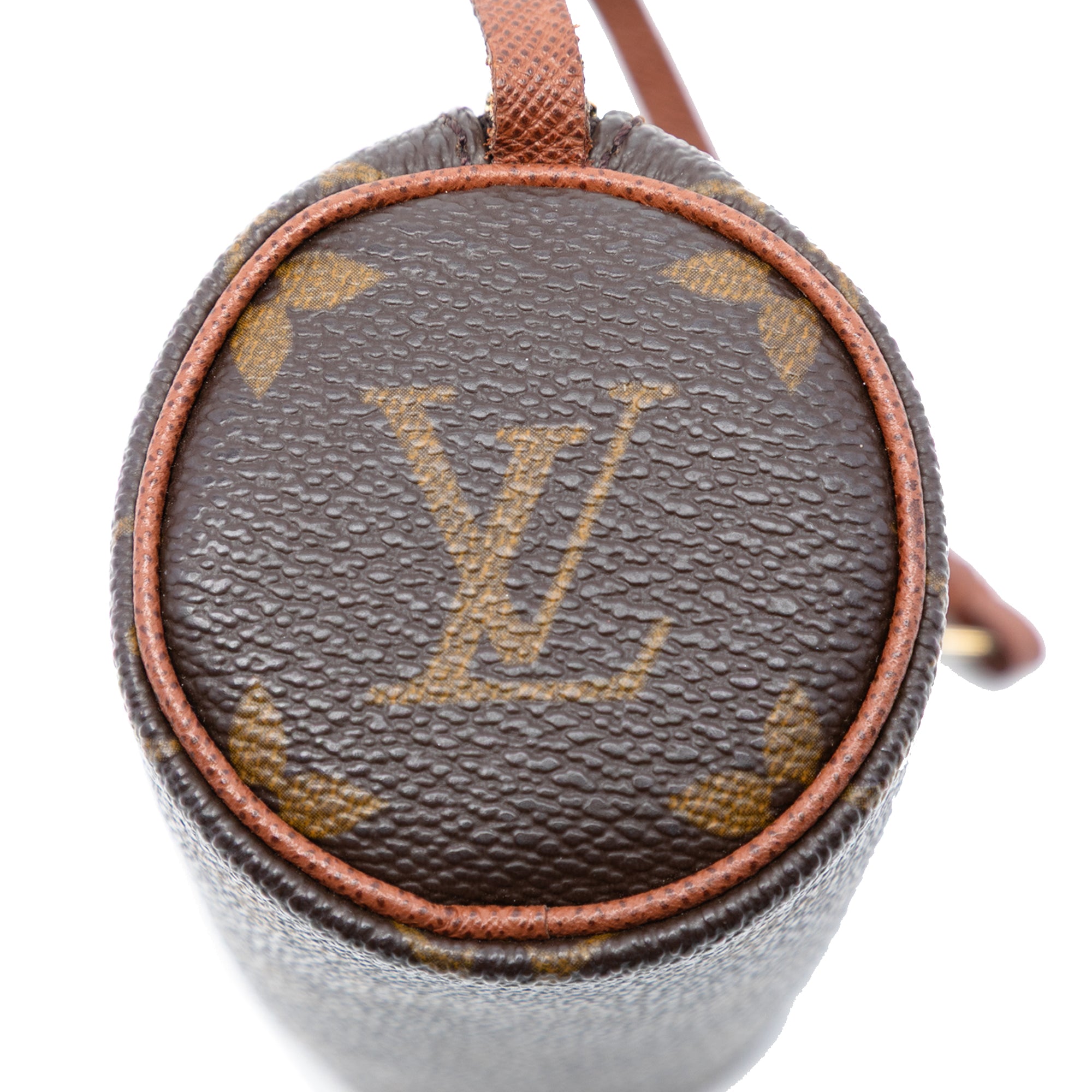 The Pochette Papillon features a monogram canvas body, a detachable flat leather strap, and a top zip closure. Retail Price: 750.00