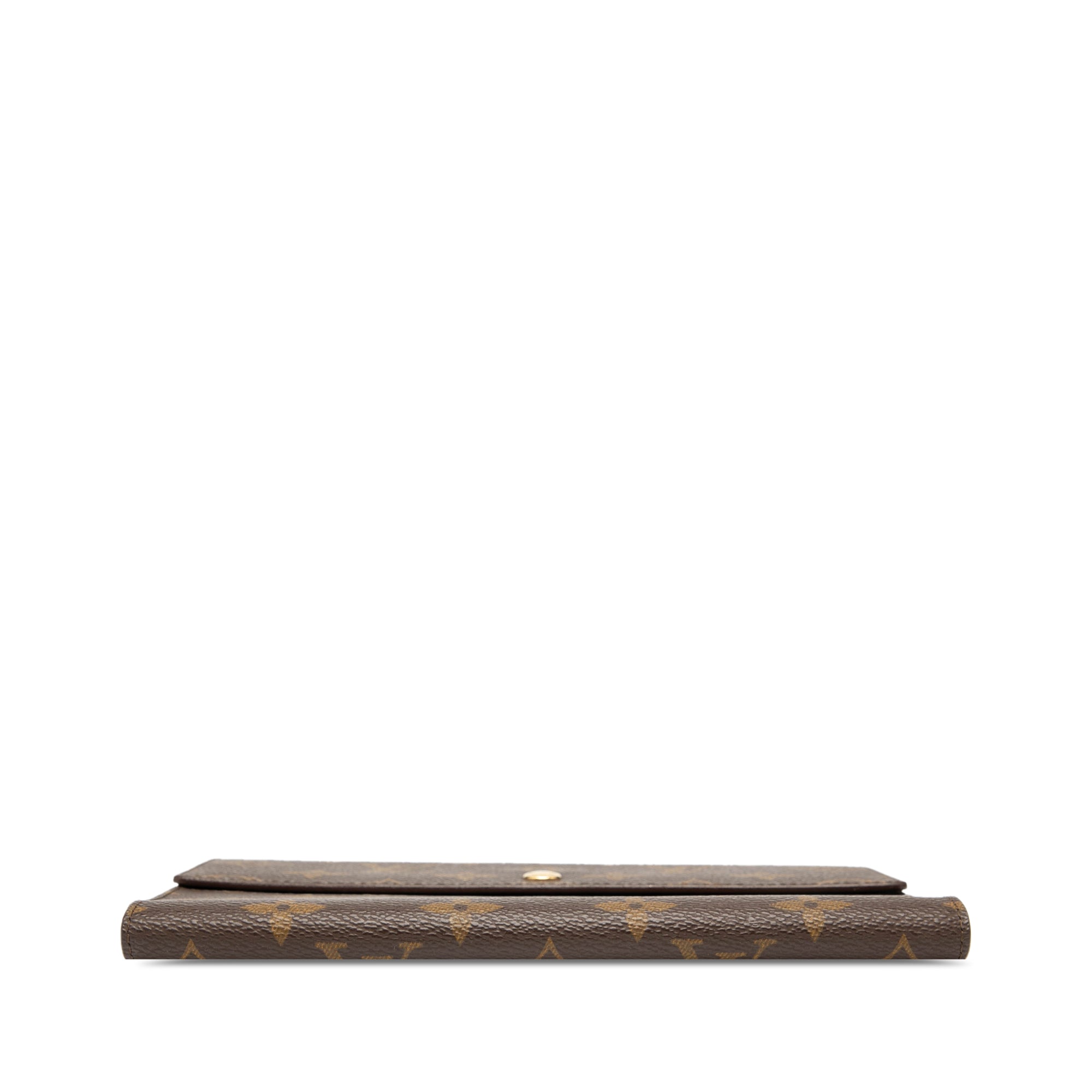 This wallet features a monogram canvas body, a flap with snap closure, and interior zip and slip compartments. Retail Price: 635.00