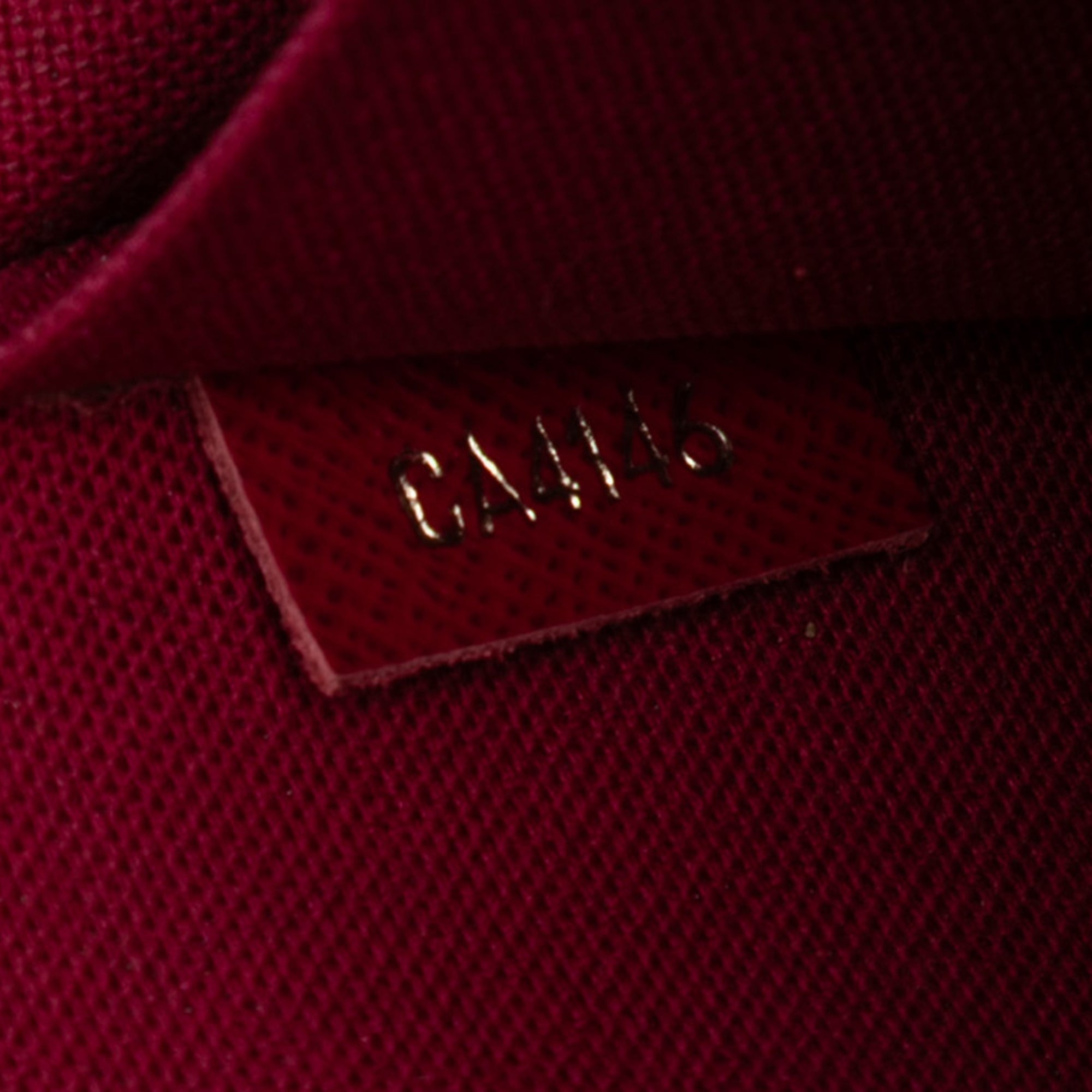 The Pochette Felicie crossbody bag features a monogram canvas body, a detachable gold-tone chain shoulder strap, a top flap with snap closure, and an interior slip pocket. Retail Price: 1641.00