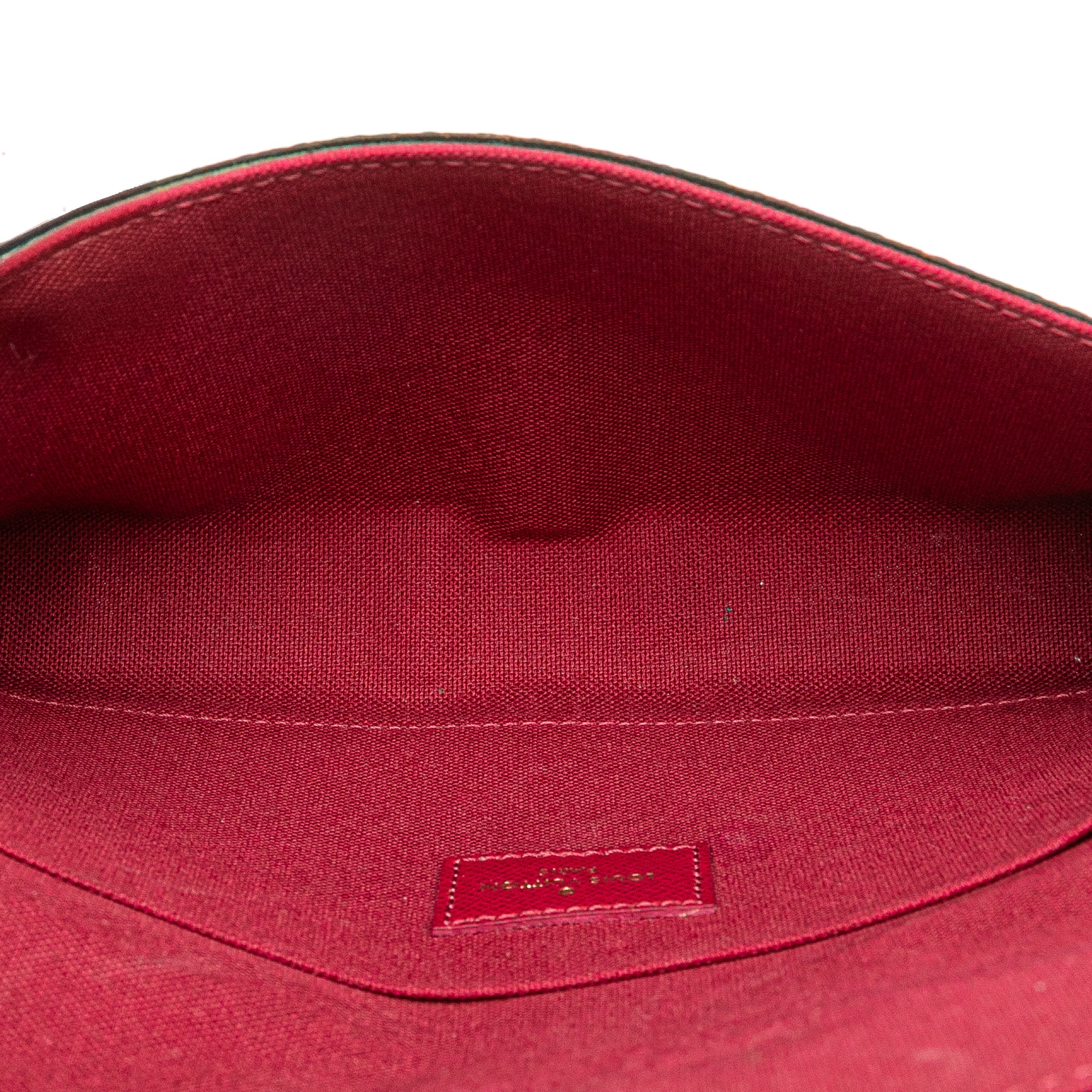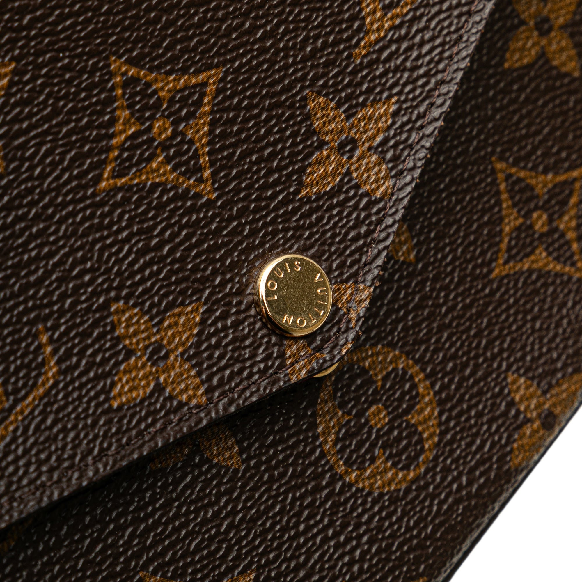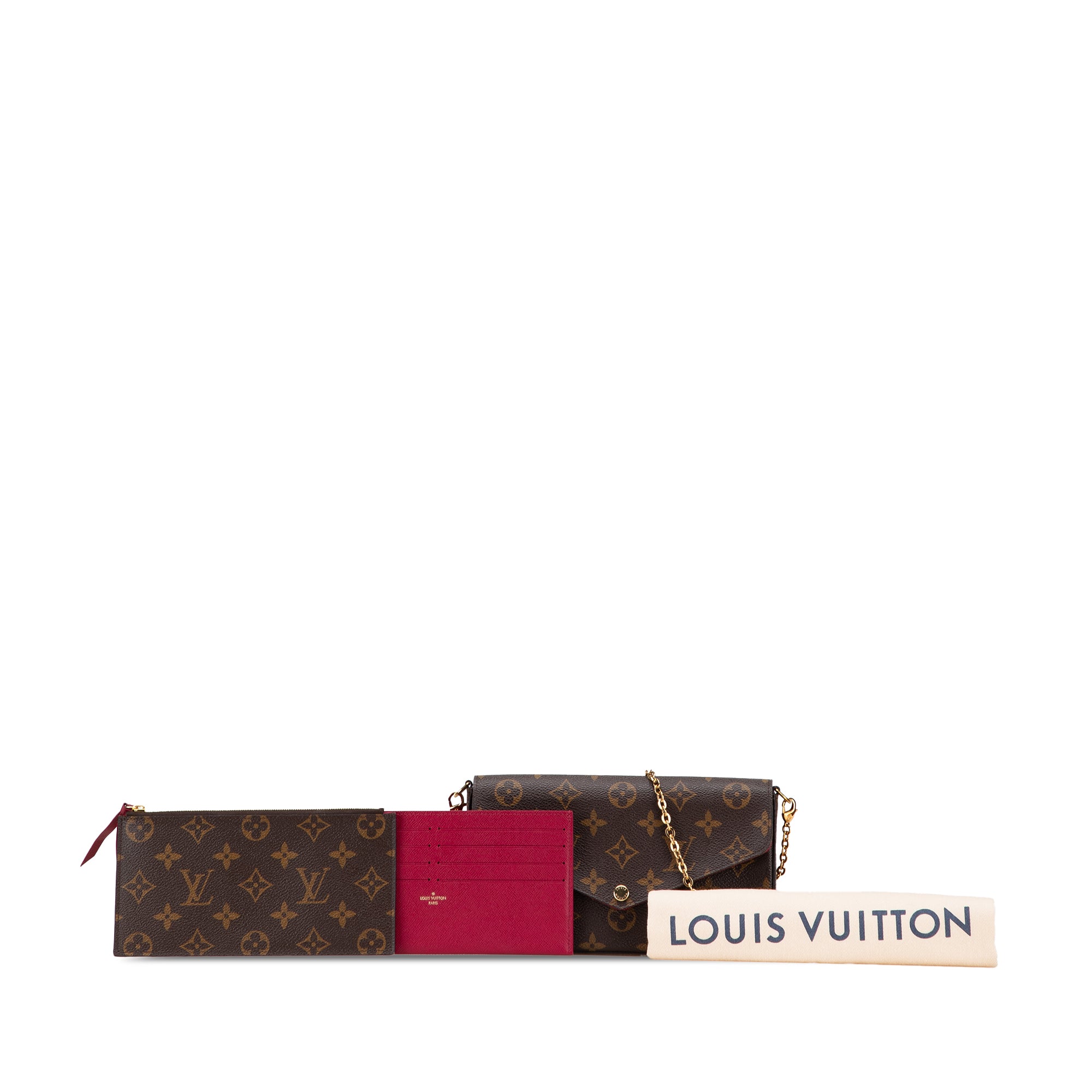 The Pochette Felicie crossbody bag features a monogram canvas body, a detachable chain link shoulder strap, a flap with a snap button closure, an interior slip pocket, and pouch inclusions. Inclusion: Dust bag. Retail Price: 1641.00