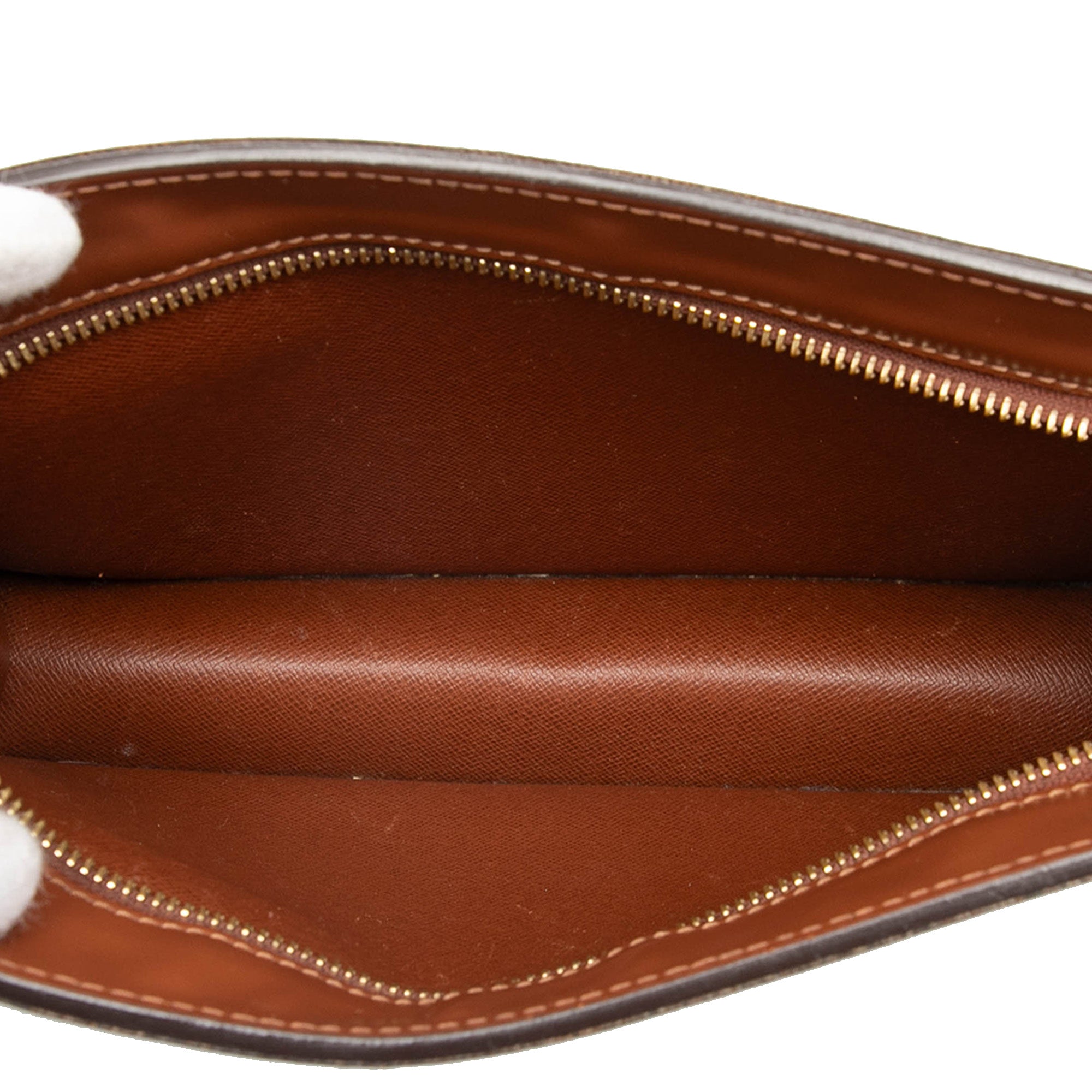 The Pochette Homme features a monogram canvas body, an exterior slip pocket, and top zip closure. Retail Price: 1005.00