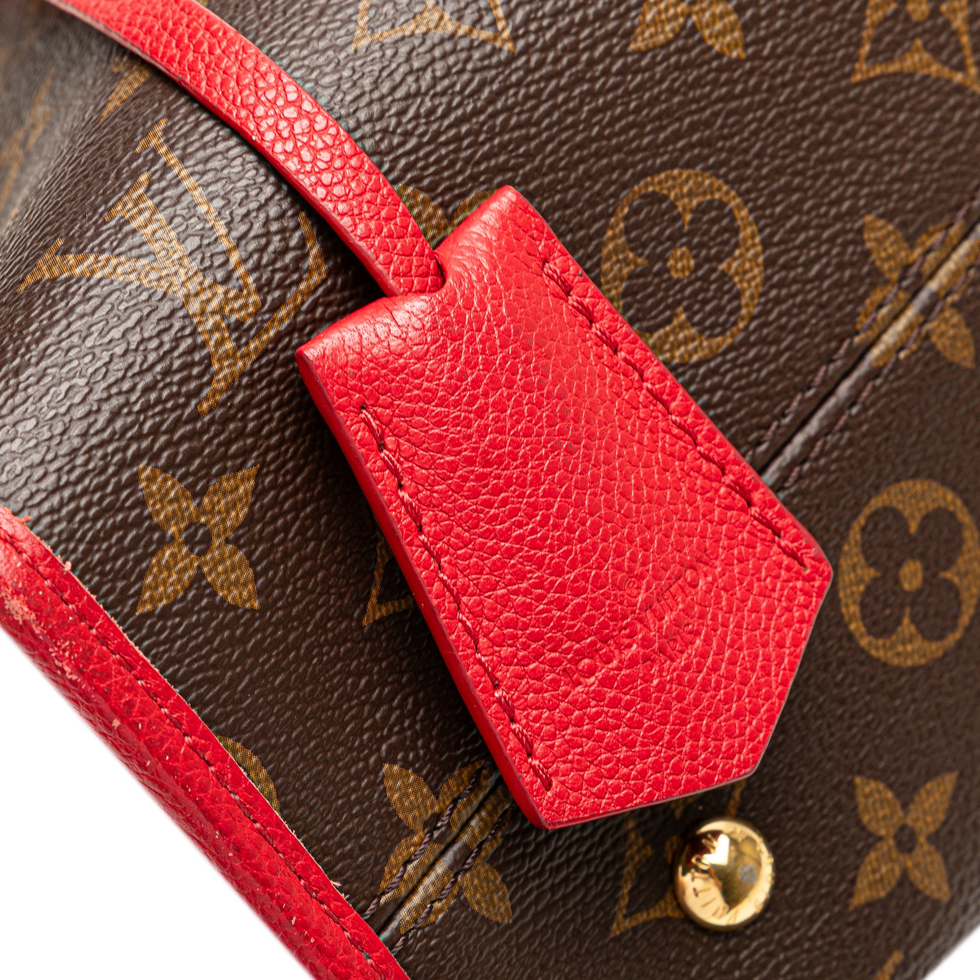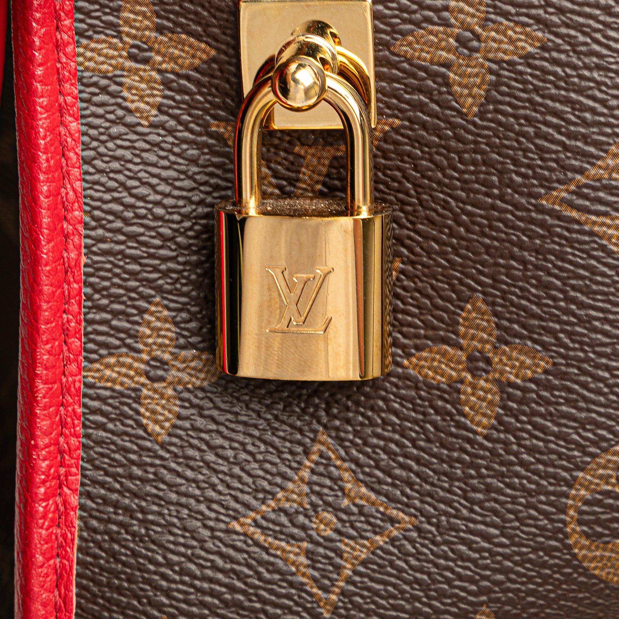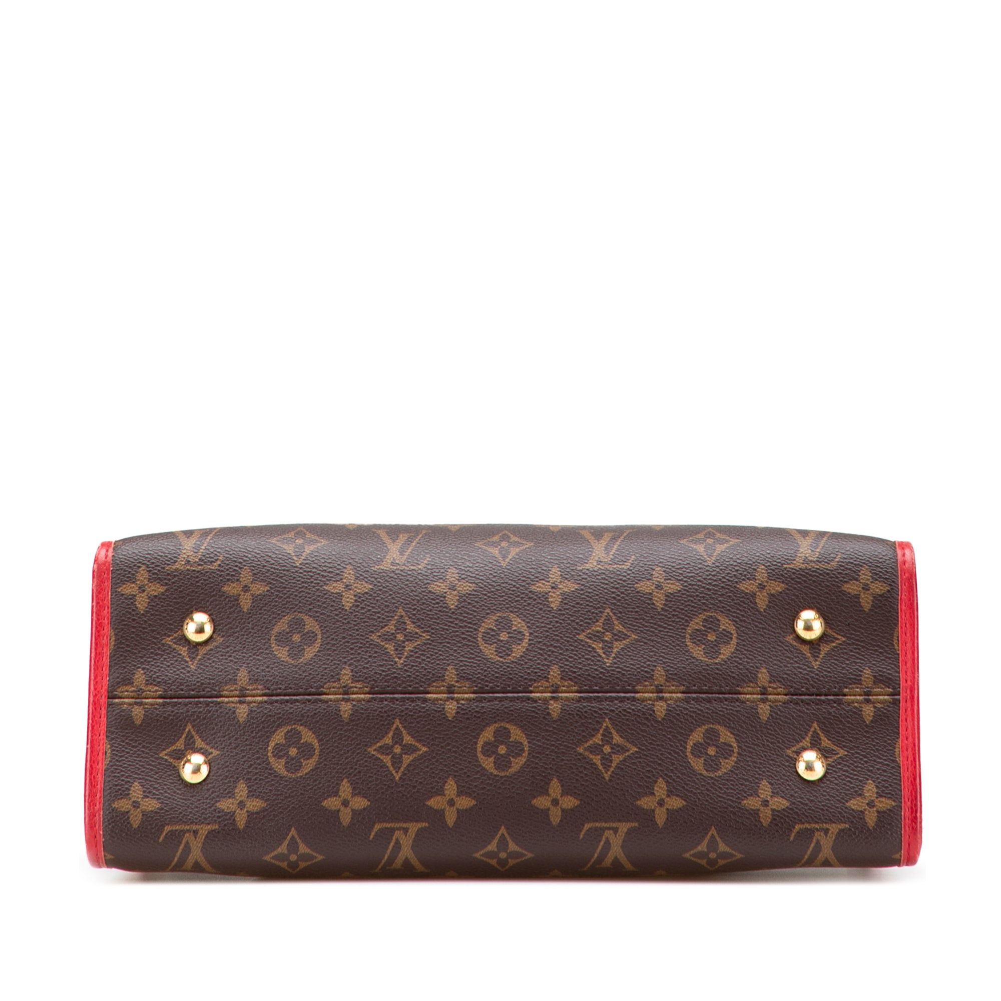 The Popincourt PM features a monogram canvas body with leather trim, rolled leather handles, a detachable leather strap, a clochette, a top zip closure, an exterior front zip pocket, and interior zip and slip pockets. Inclusion: Dust bag. Retail Price: 2370.00