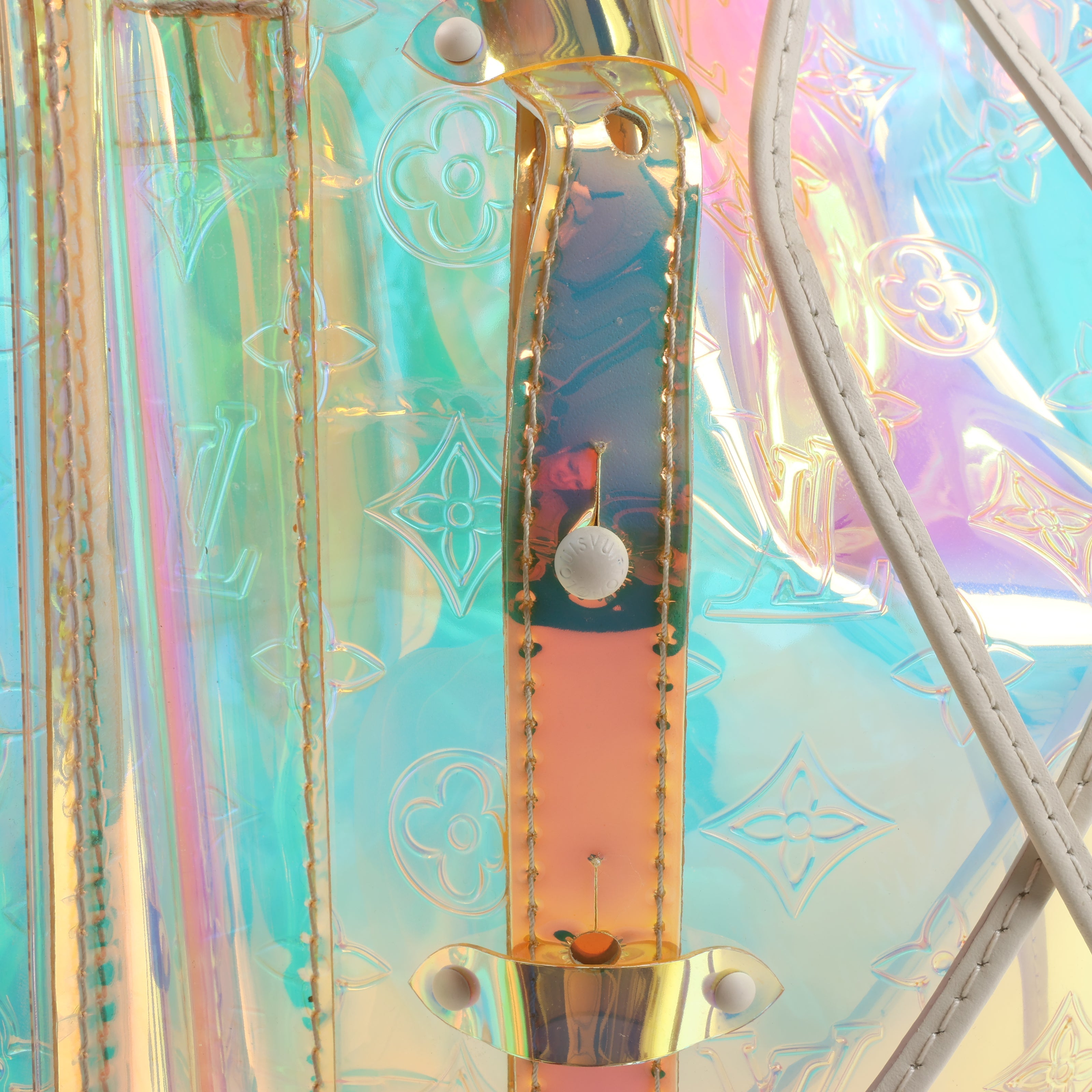 Louis Vuitton Monogram Prism Christopher GM Backpack in iridescent PVC with iconic monogram embossing. A futuristic, statement-making design combining luxury and innovation with spacious, functional style. Model M44766.