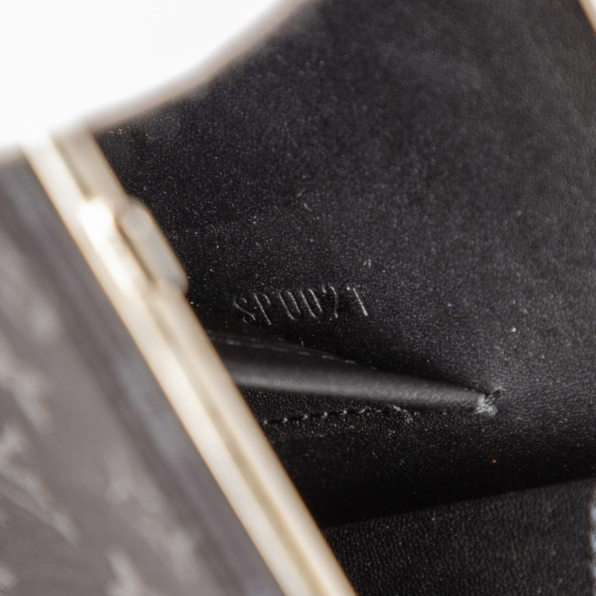 The Ange PM features a monogram satin body, mesh metal handle, a frame with top clasp closure, and interior slip pockets. Retail Price: 1200.00
