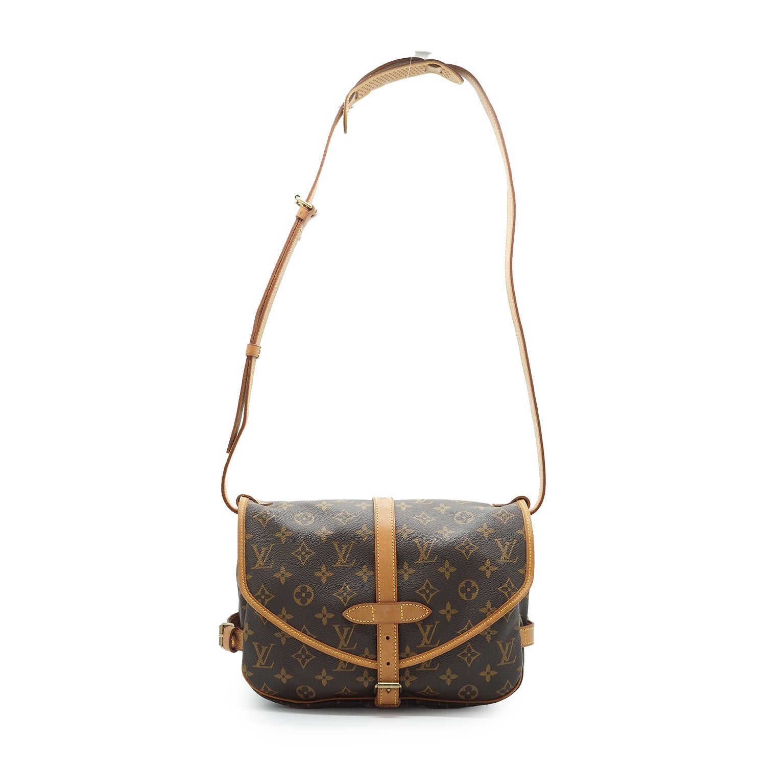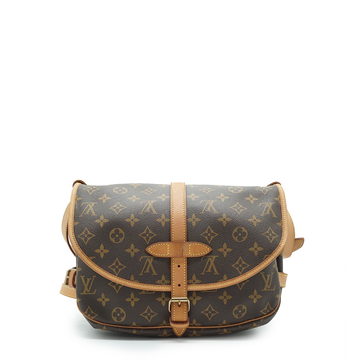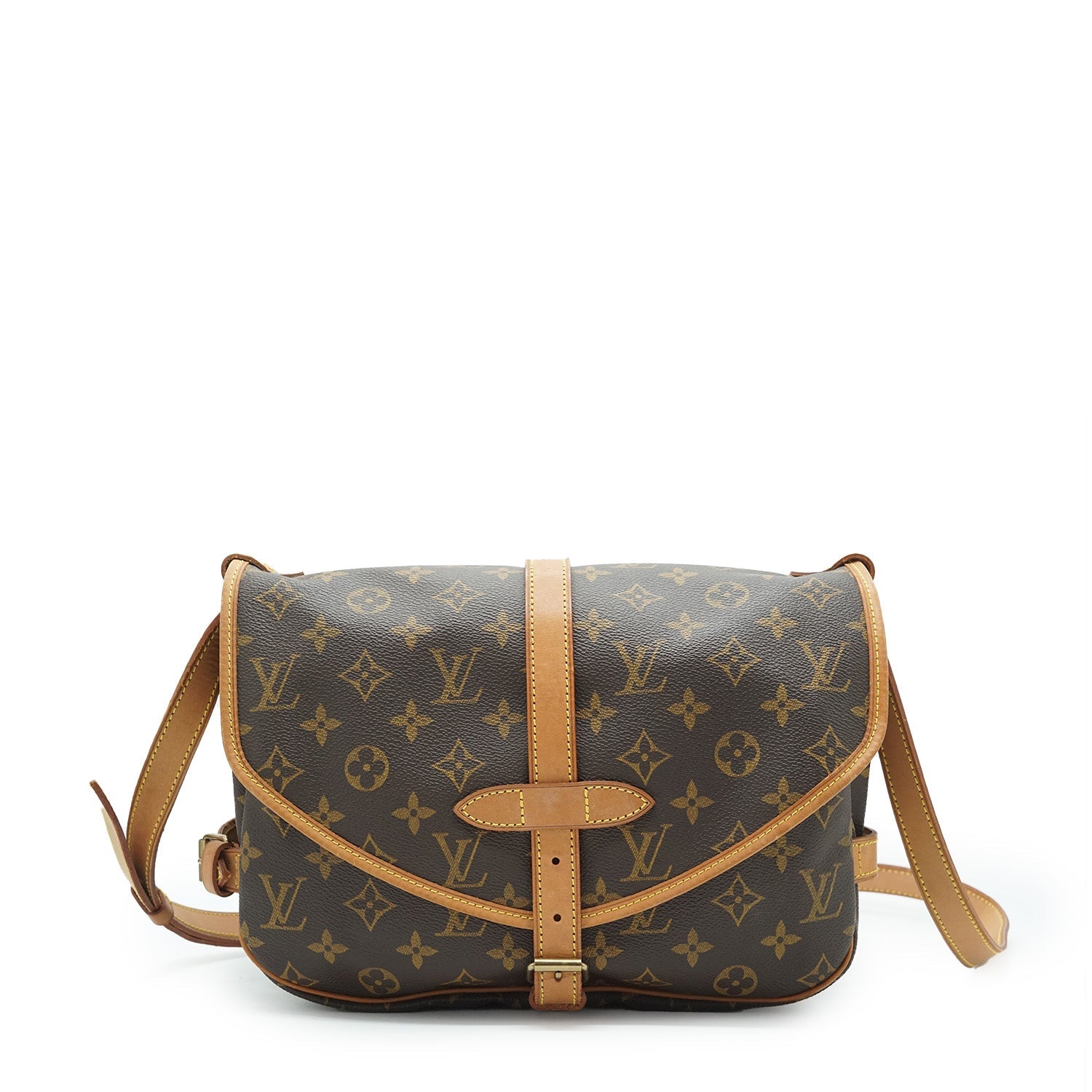 Monogram Saumur 30 Brown Canvas, LeatherDepth: 10cmHeight: 22cmWidth: 28.5cmShoulder Drop: 53cmOutside Rank: BInside Rank: BStain: Some stains on the inside fabric and on the outside leather parts (front leather strap)Discoloration: Some hardware tarnishPeeling: Minor leather cracking (middle strap)Worn: Some signs of wear overallOdor: Storage smellSerial code: MB0947SKU: 7030051