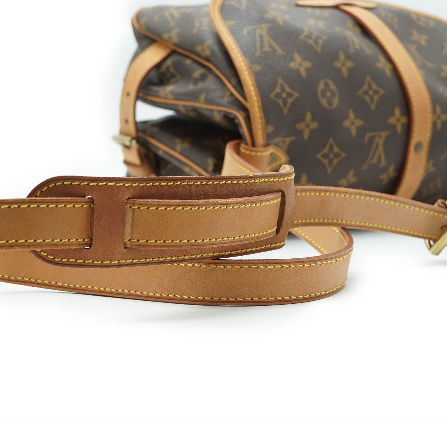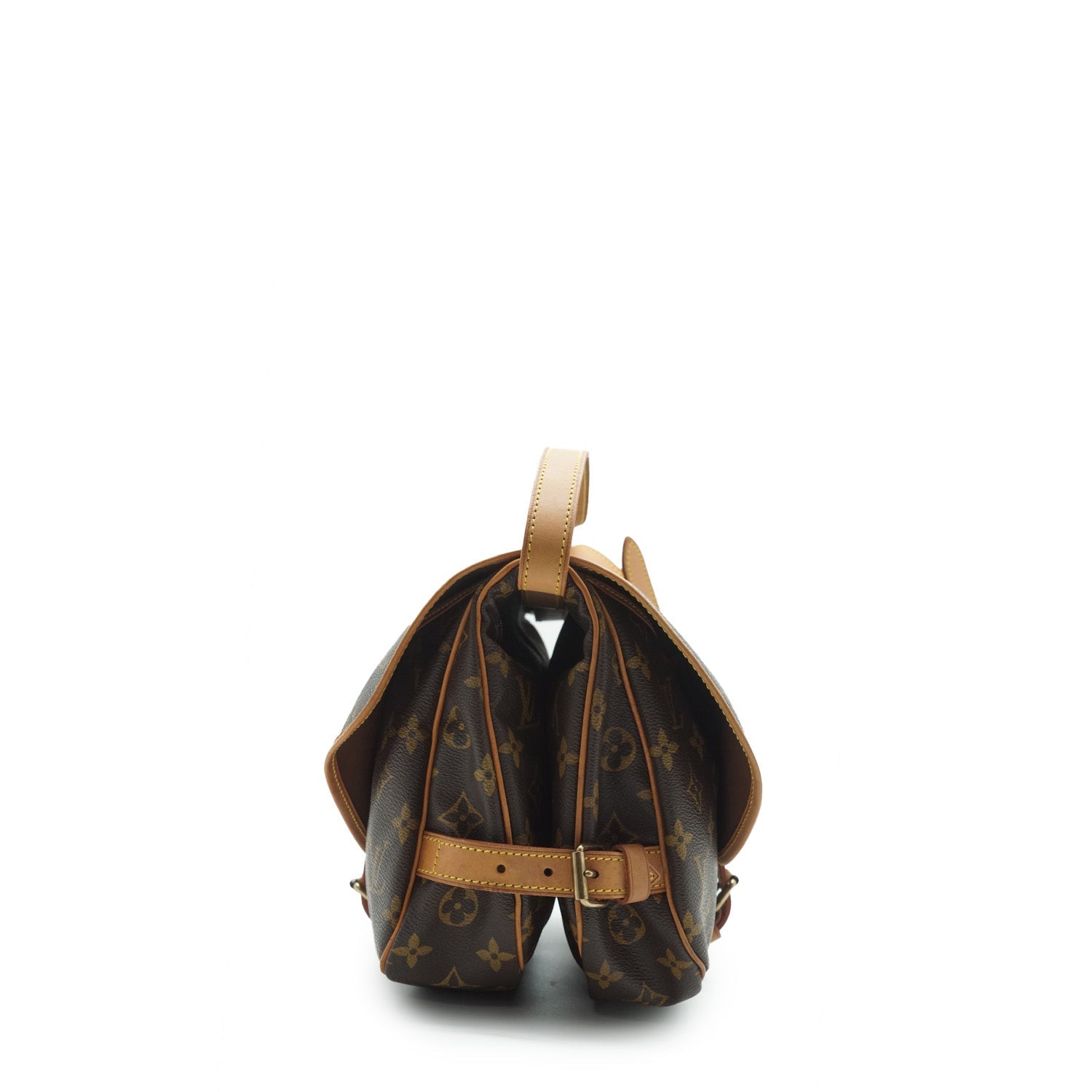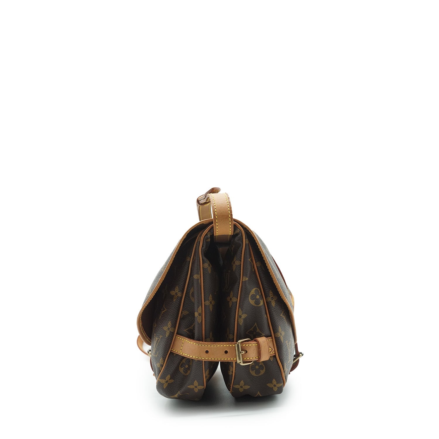 Monogram Saumur 30 Brown Canvas, LeatherDepth: 10cmHeight: 22cmWidth: 28.5cmShoulder Drop: 53cmOutside Rank: BInside Rank: BStain: Some stains on the inside fabric and on the outside leather parts (front leather strap)Discoloration: Some hardware tarnishPeeling: Minor leather cracking (middle strap)Worn: Some signs of wear overallOdor: Storage smellSerial code: MB0947SKU: 7030051