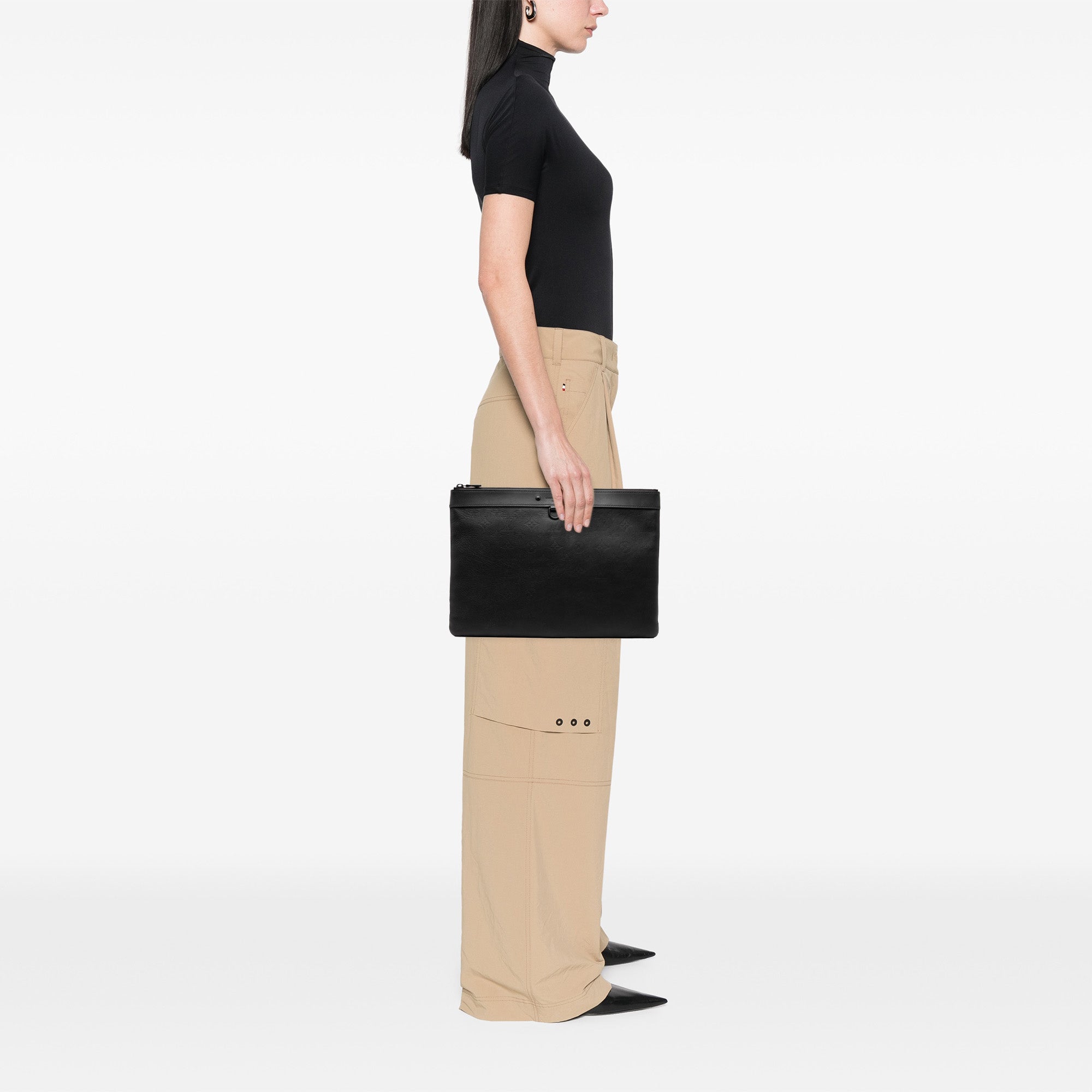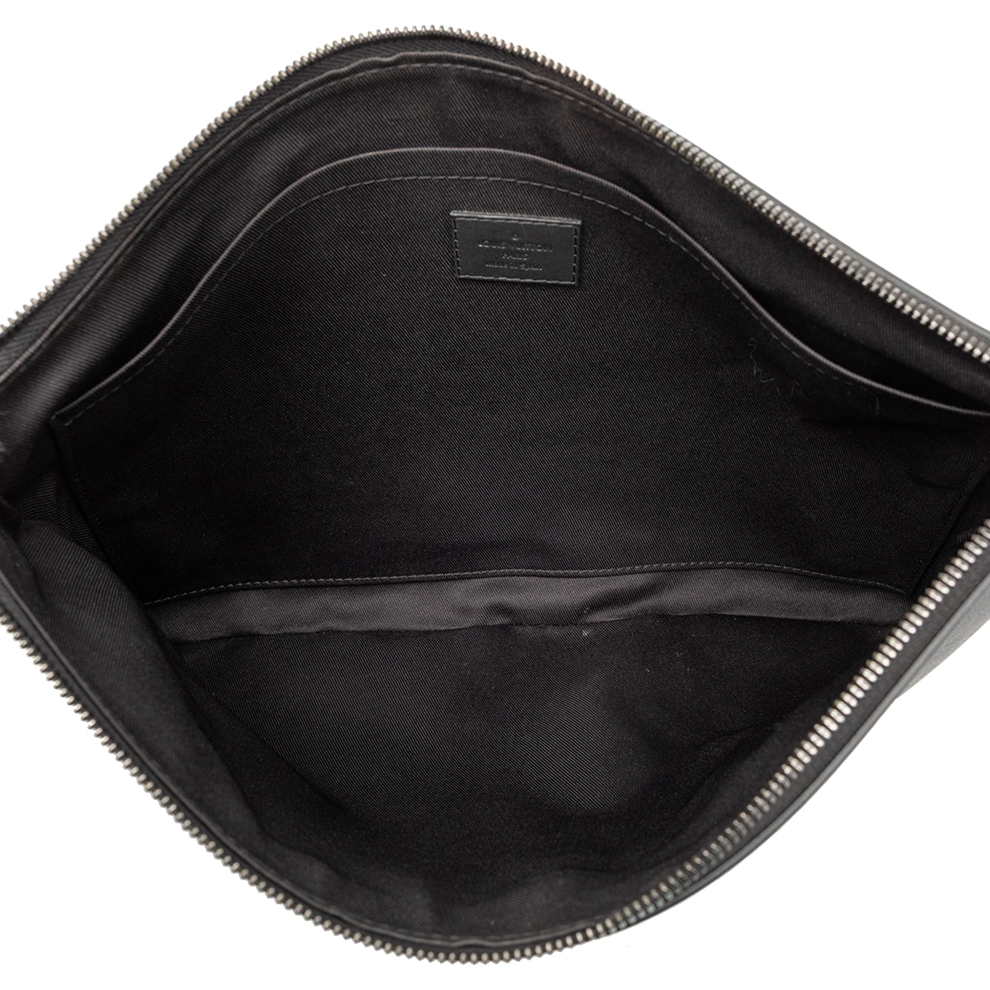 The Discovery Pochette features a leather body, a top zip closure, and an interior slip pocket. Retail Price: 1150.00