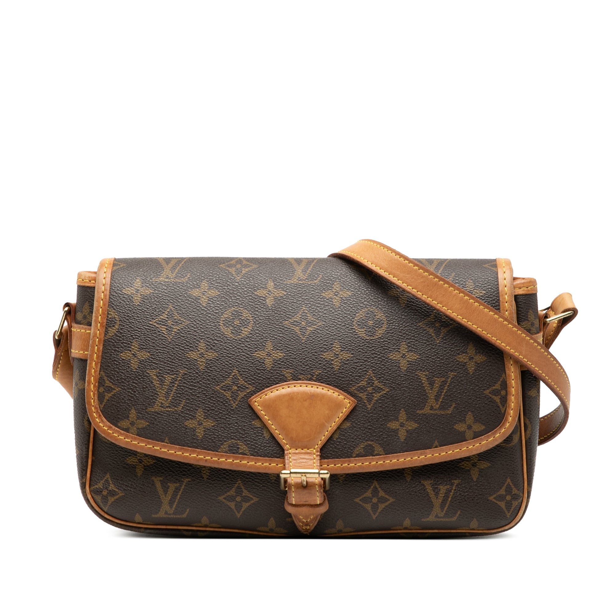 The Sologne features the Monogram canvas body, an adjustable flat vachetta strap with a vachetta shoulder pad, a front flap secured by a belt and buckle closure, exterior front and back pockets, and an interior zip pocket. Inclusion: Dust bag. Retail Price: 1468.00
