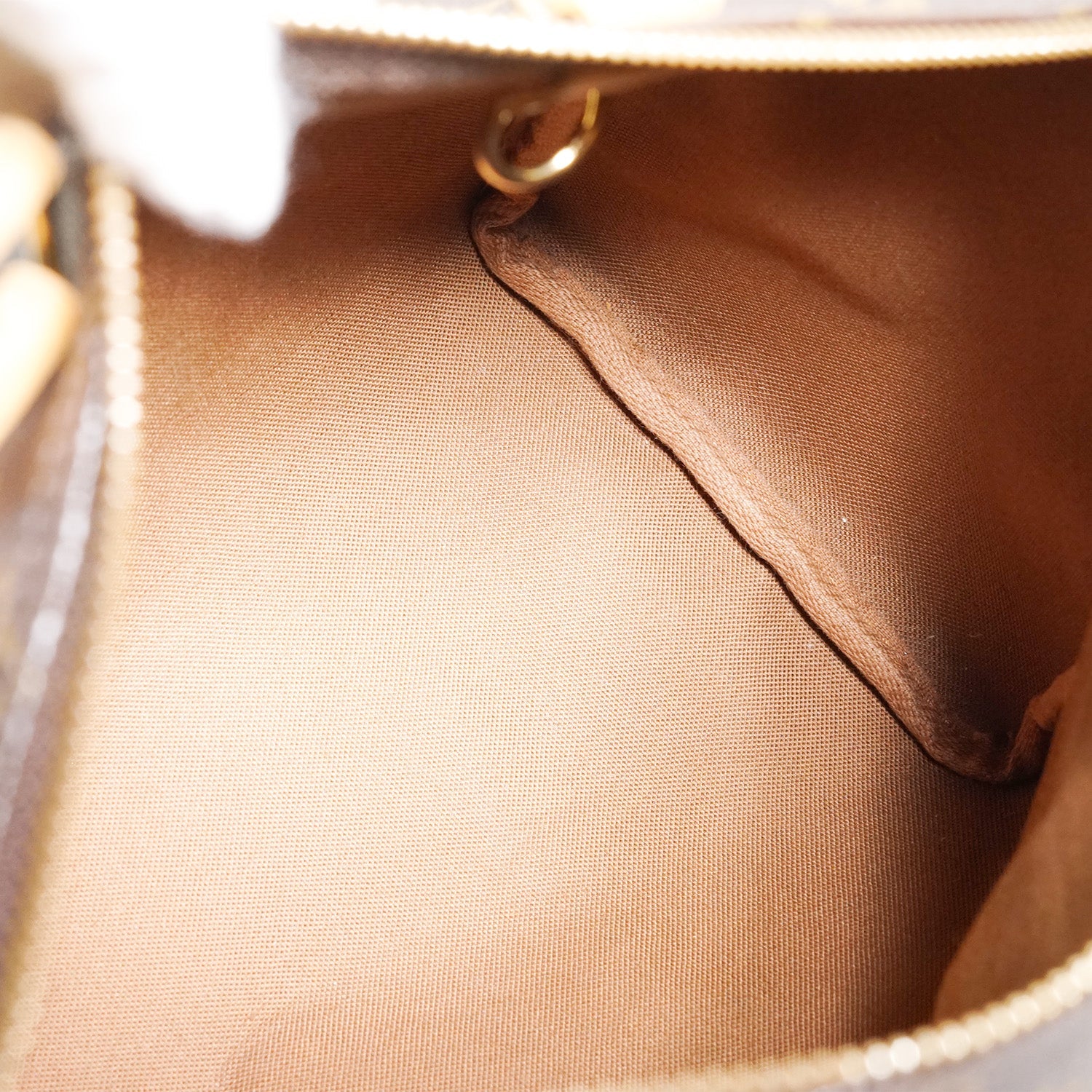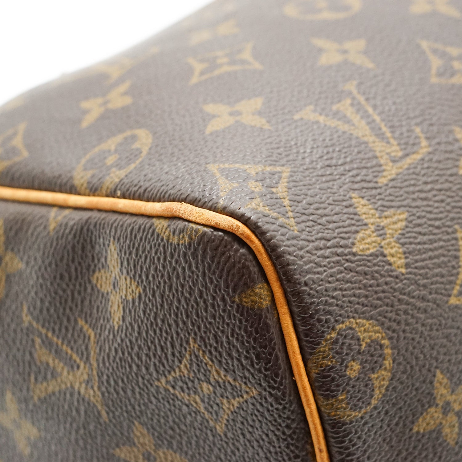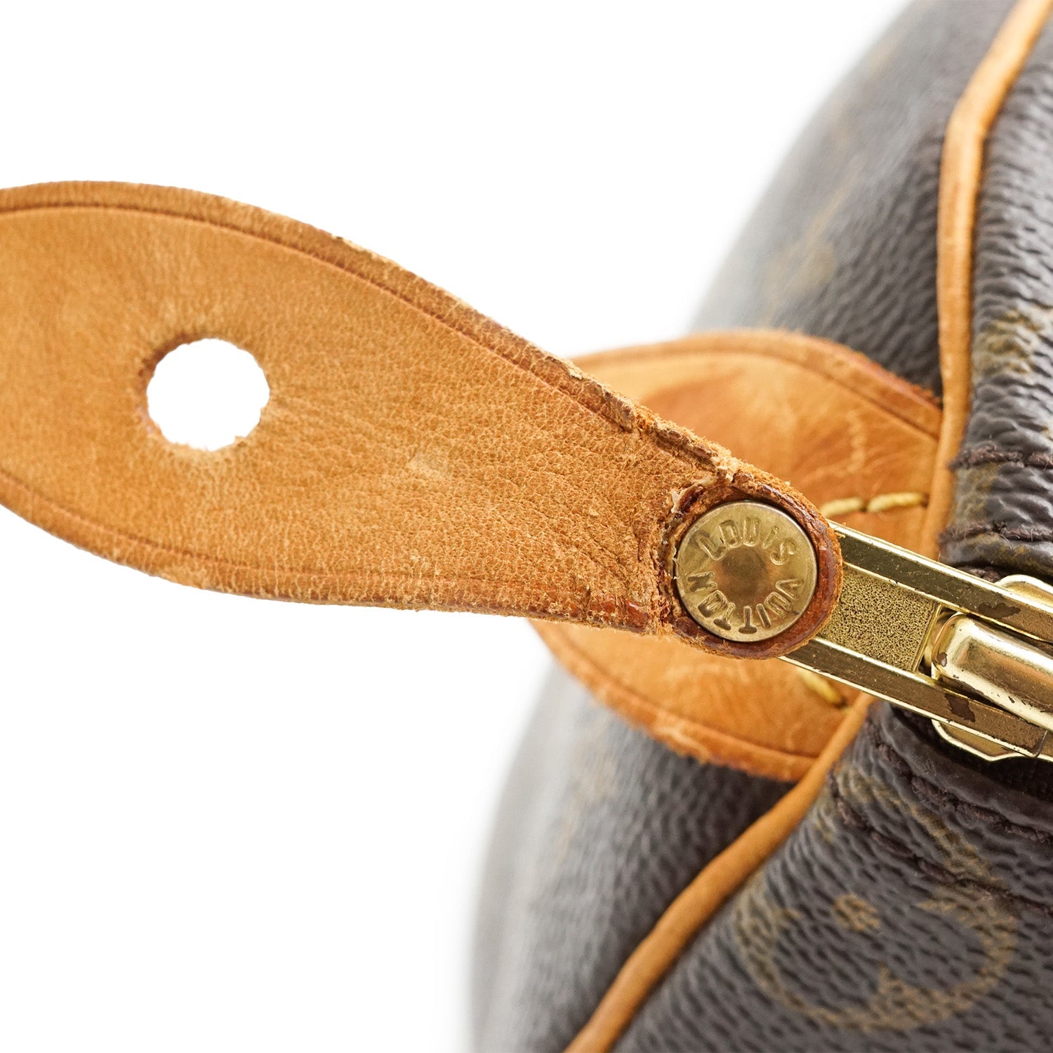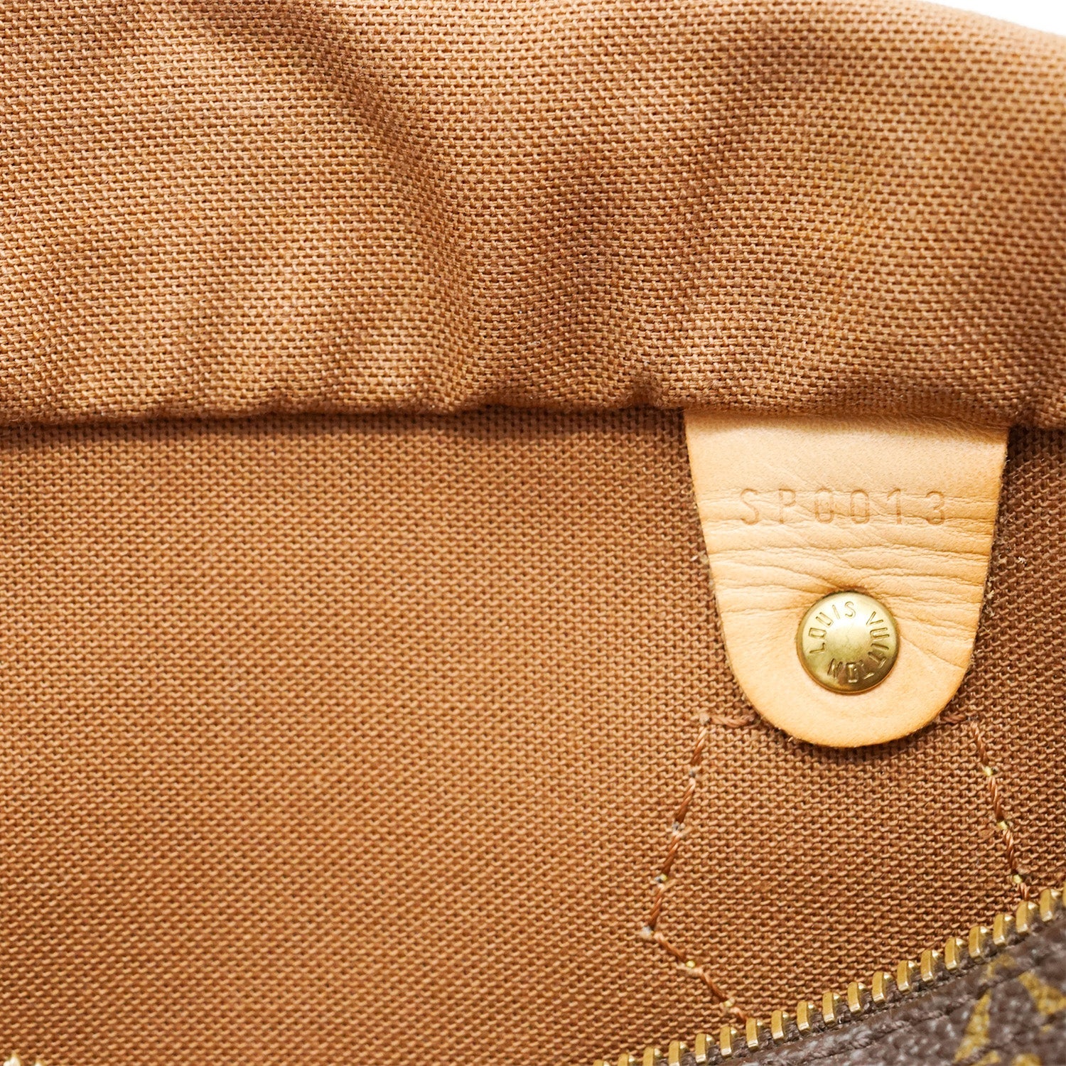 Monogram Speedy 25 Brown Canvas, LeatherDepth: 14.5cmHeight: 19cmWidth: 24.5cmHand Drop: 10.5cmOutside Rank: BCInside Rank: BStain: Minor pen marks on the inside, some water stains on the leather partsDiscoloration: Some hardware tarnish, some discoloration on the leather partsScratch: Minor corner rub, slight scratches on the canvasPeeling: Minor leather cracking and peeling on the top handle (loose threads)Comments: The leather zipper pull is partially coming looseSerial code: SP0013