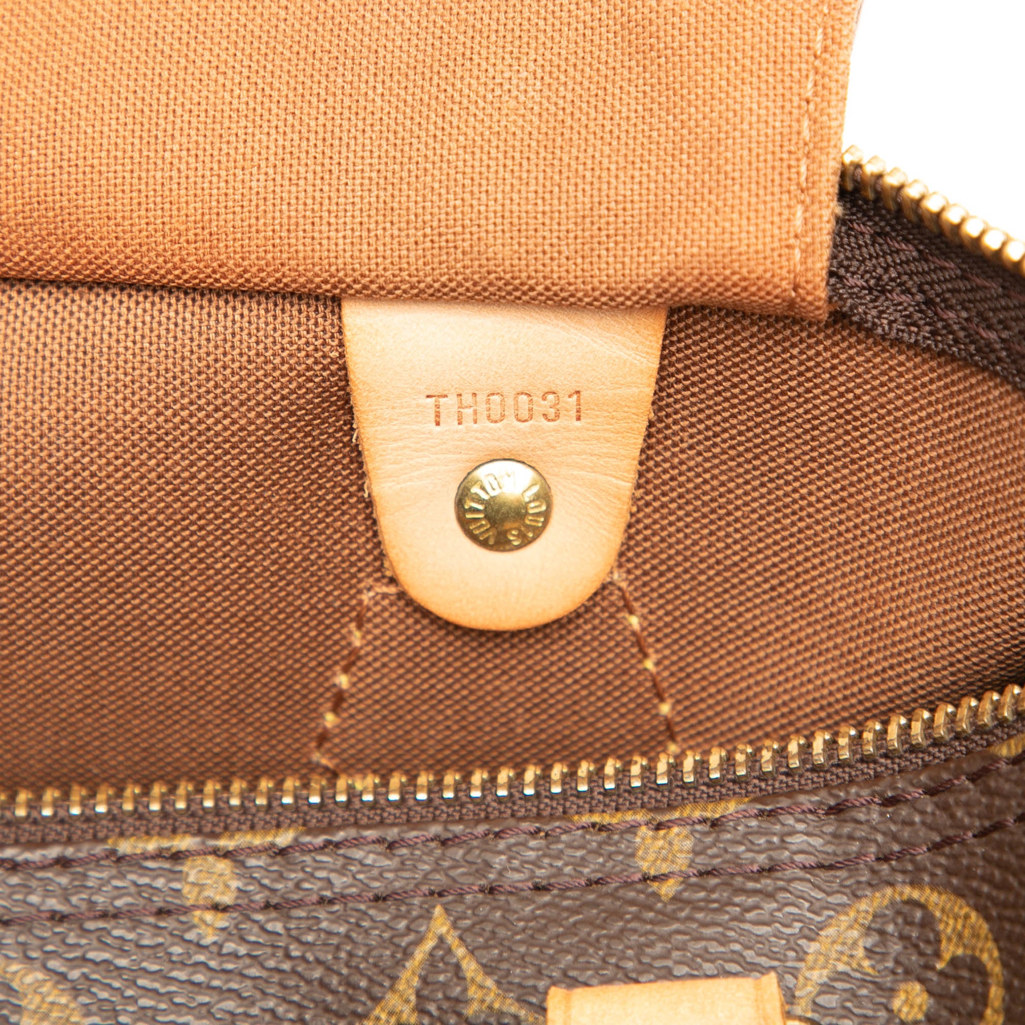 The Speedy 30 features a monogram canvas body, rolled vachetta leather handles, a top zip closure, and an interior pocket. Retail Price: 1377.00