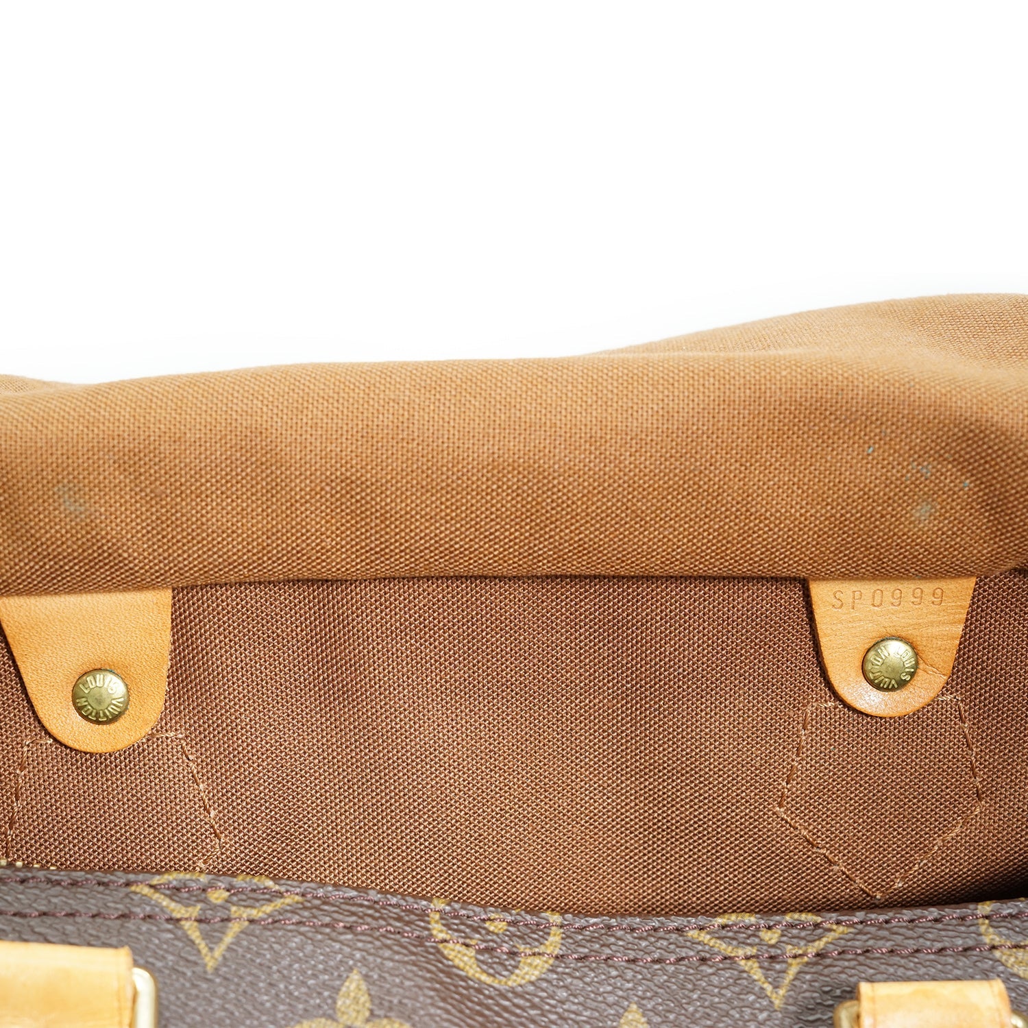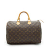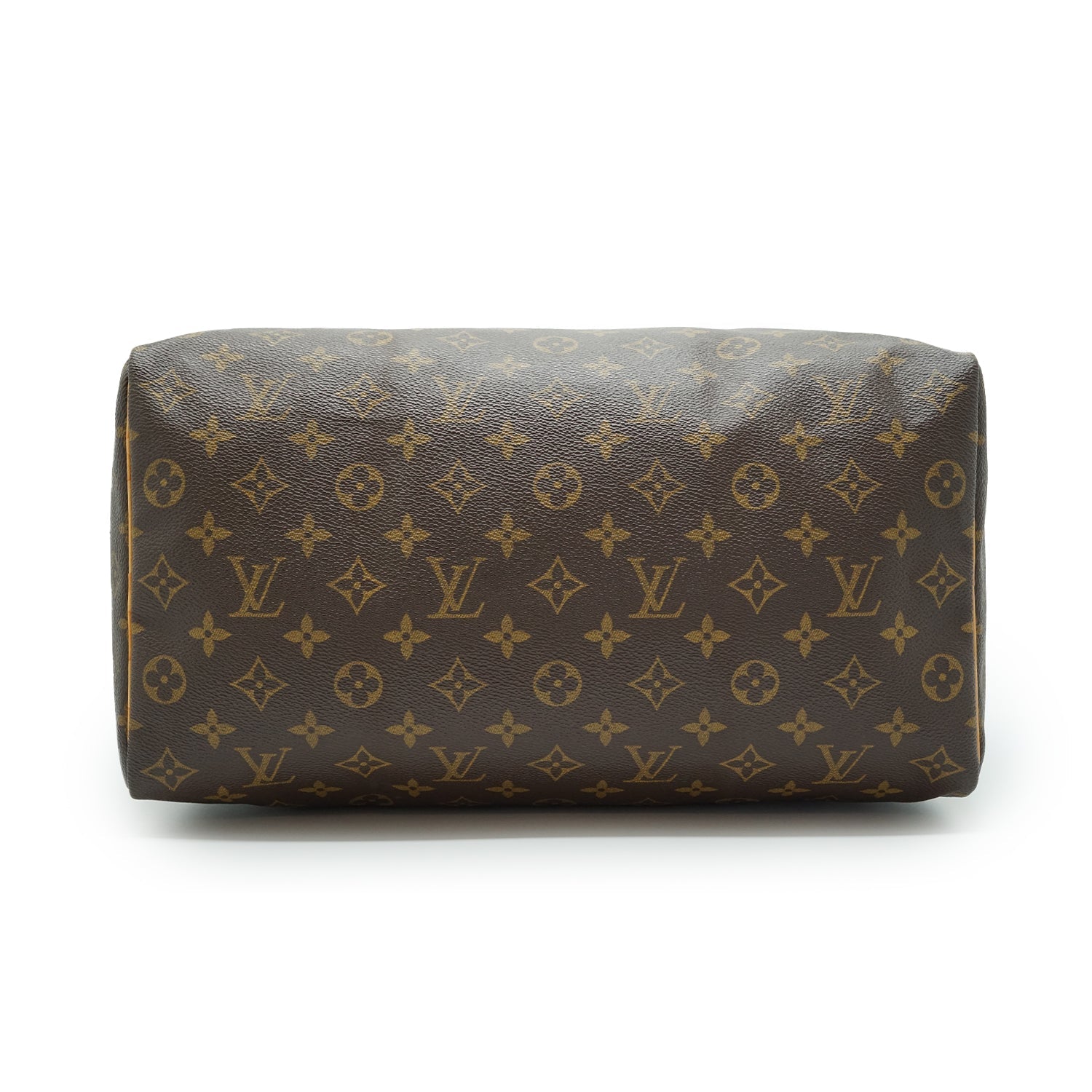 Monogram Speedy 35 Brown Canvas, LeatherDepth: 19cmHeight: 22.5cmWidth: 34cmHand Drop: 11.5cmStain: Minor water stains on the leather parts, minor white stains/discoloration on the inside fabricDiscoloration: Some hardware tarnishScratch: Slight scratches on the leather parts (top handles)Peeling: Noticeable crack on the side leather tabComments: The side leather tab is cracked and partially detachingSerial code: SP0999