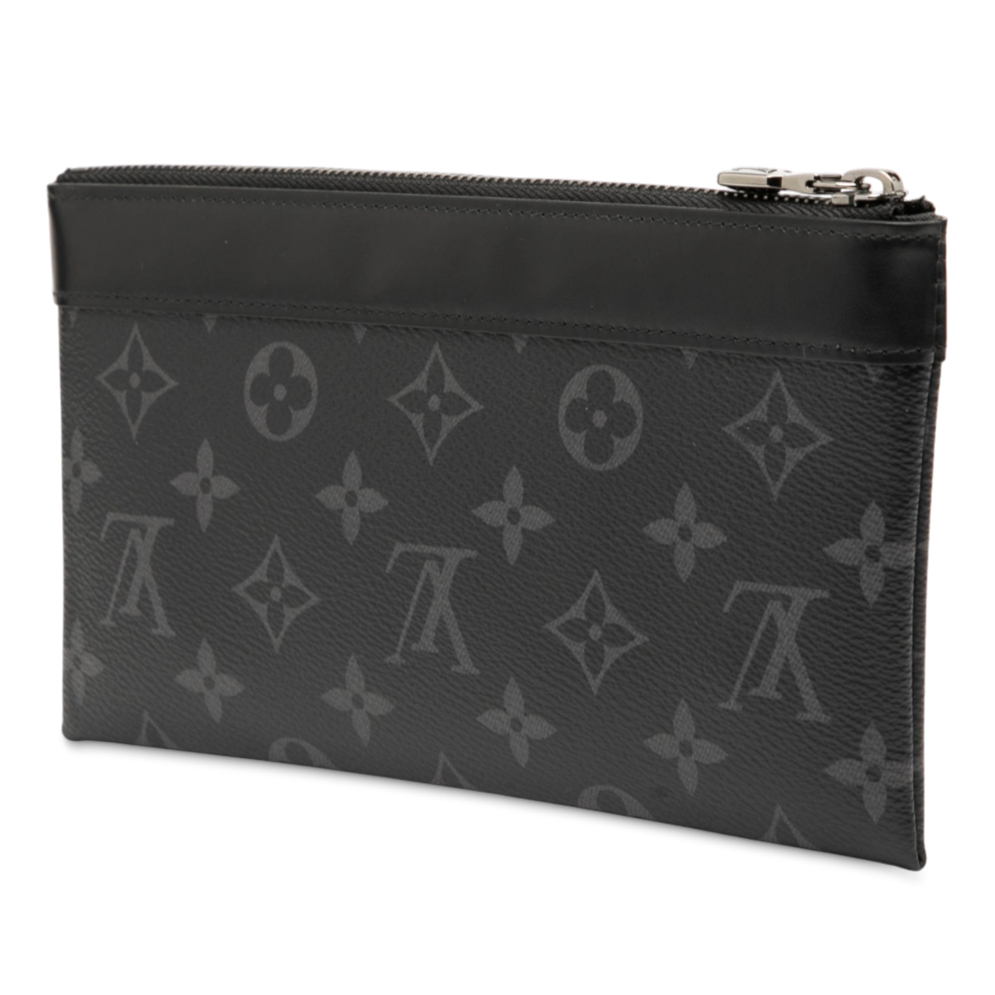 The Pochette Discovery PM features a monogram canvas and taiga leather body, a top zip closure, and interior slip pockets. Retail Price: 640.00