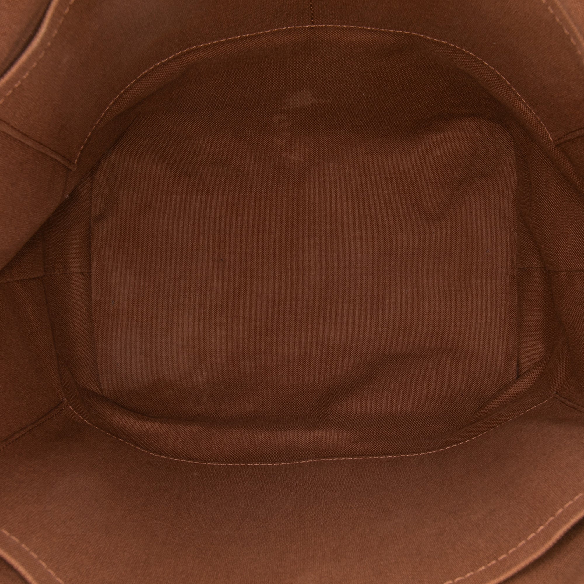 The Totally MM features a monogram canvas body with vachetta leather trim, flat vachetta leather straps, a top zip closure, exterior side open pockets, and interior slip pockets. Retail Price: 1350.00