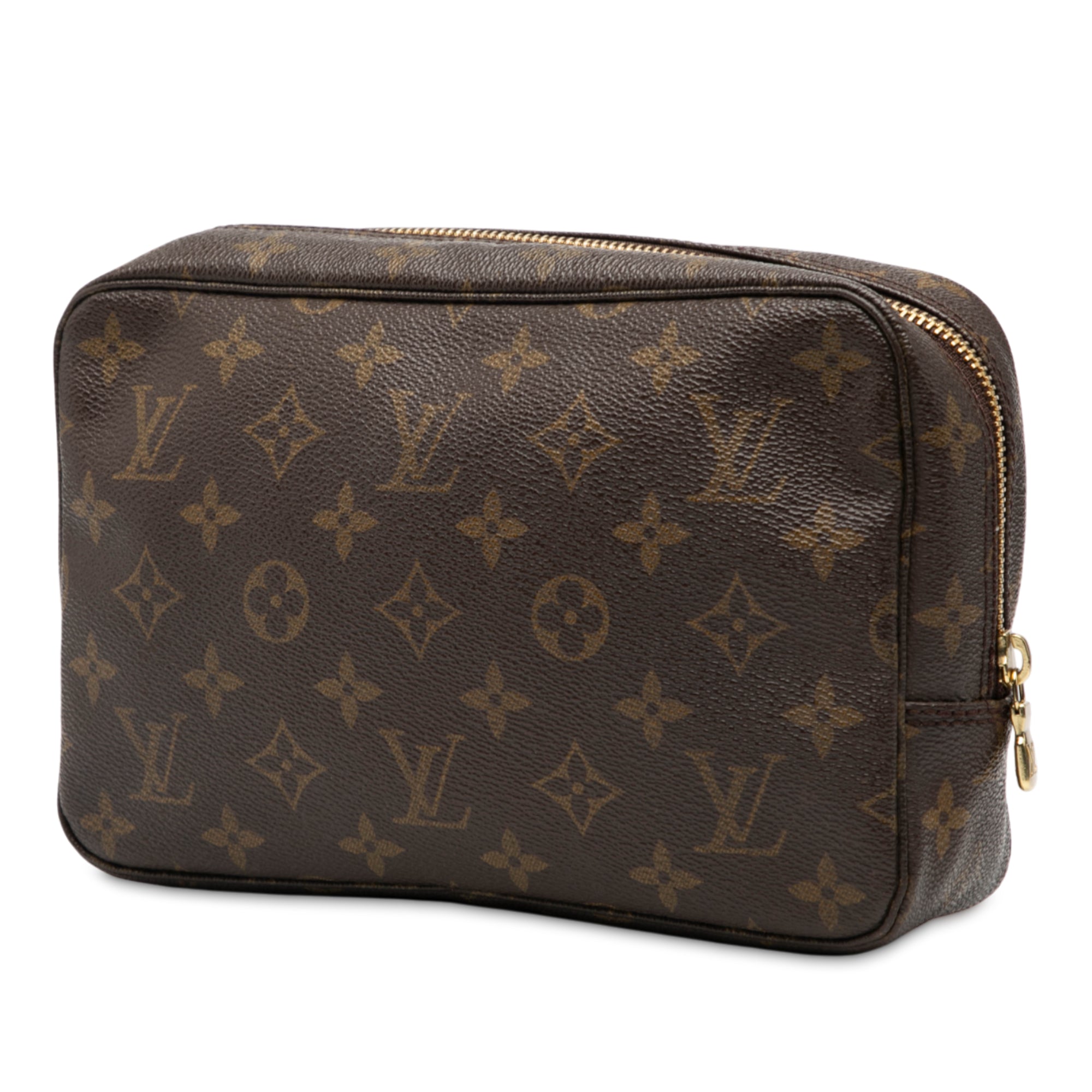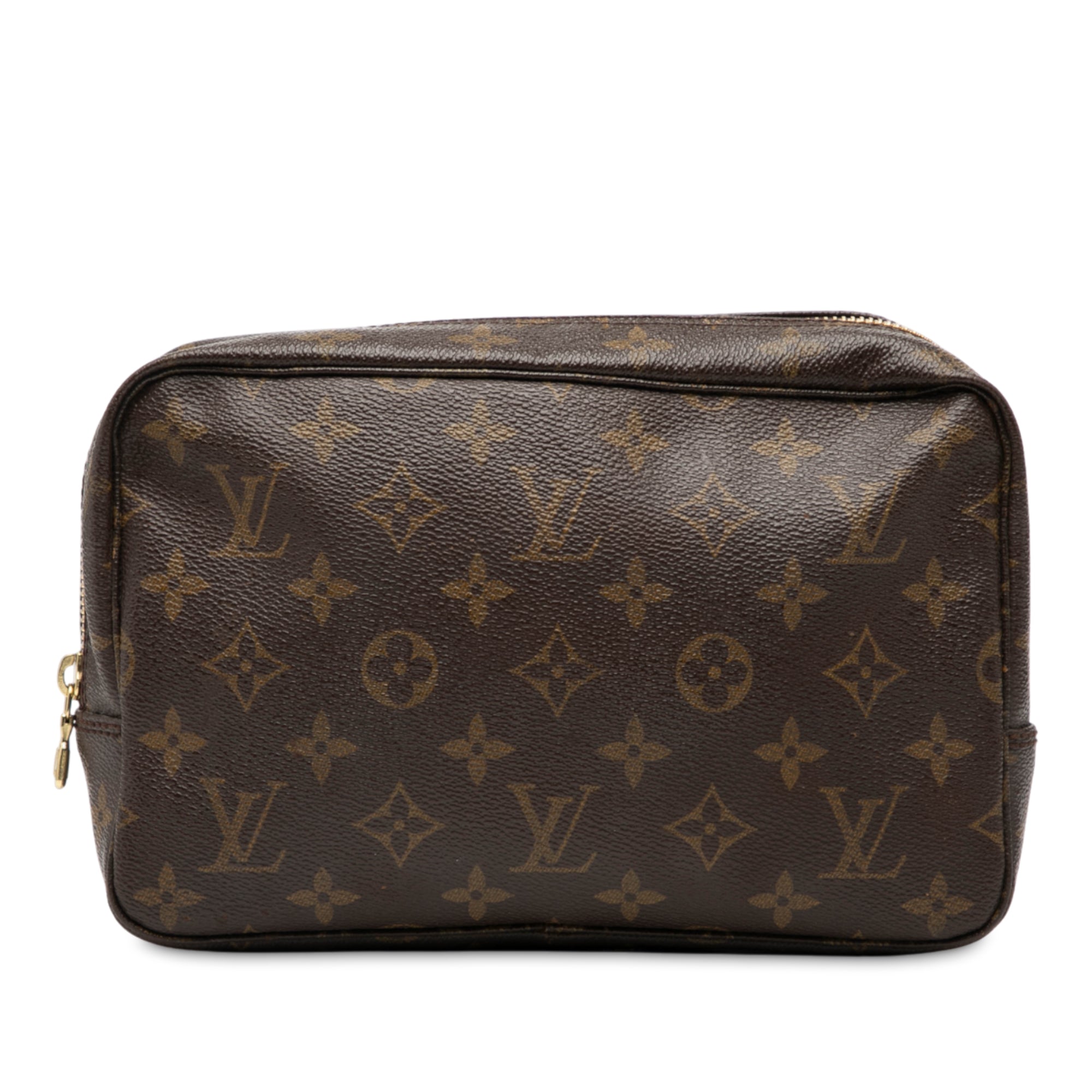 The Trousse Toilette features a monogram canvas body, a top zip closure, and an interior pockets. Retail Price: 1063.00