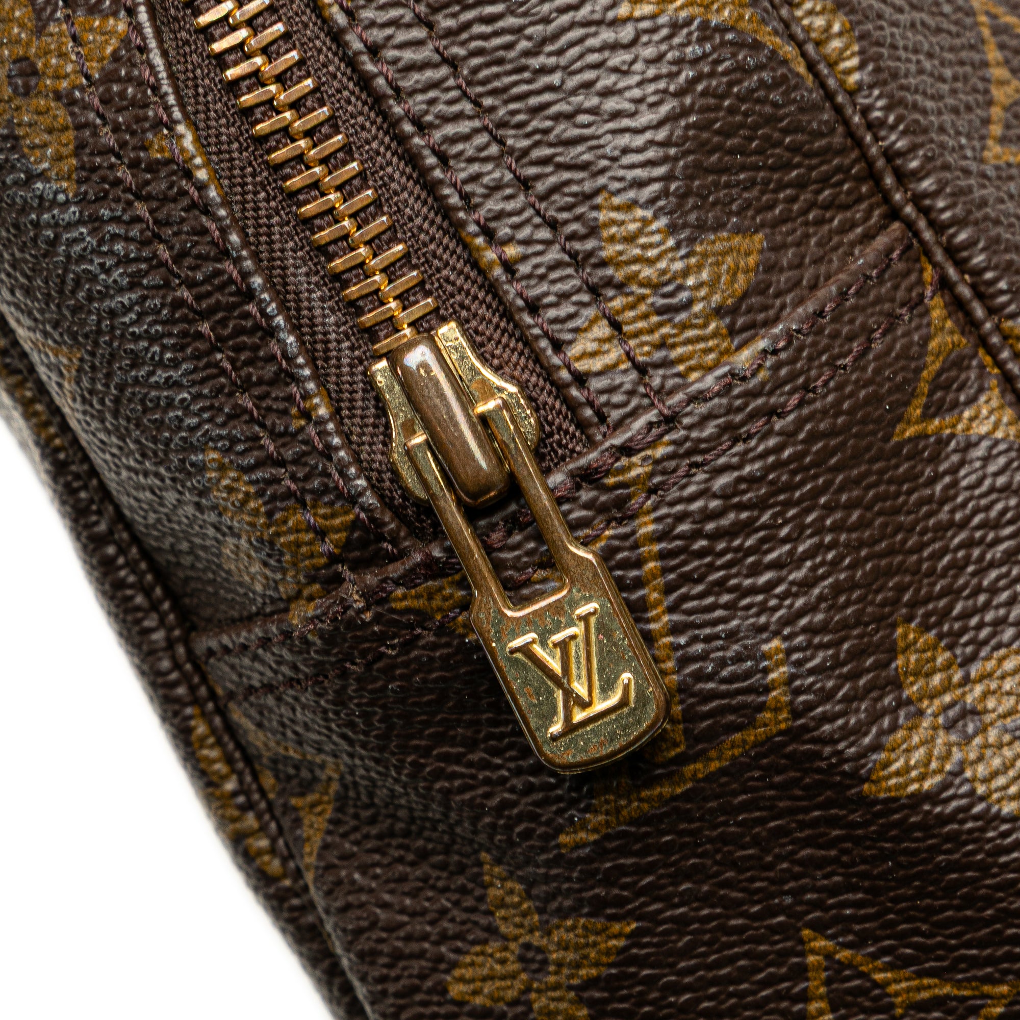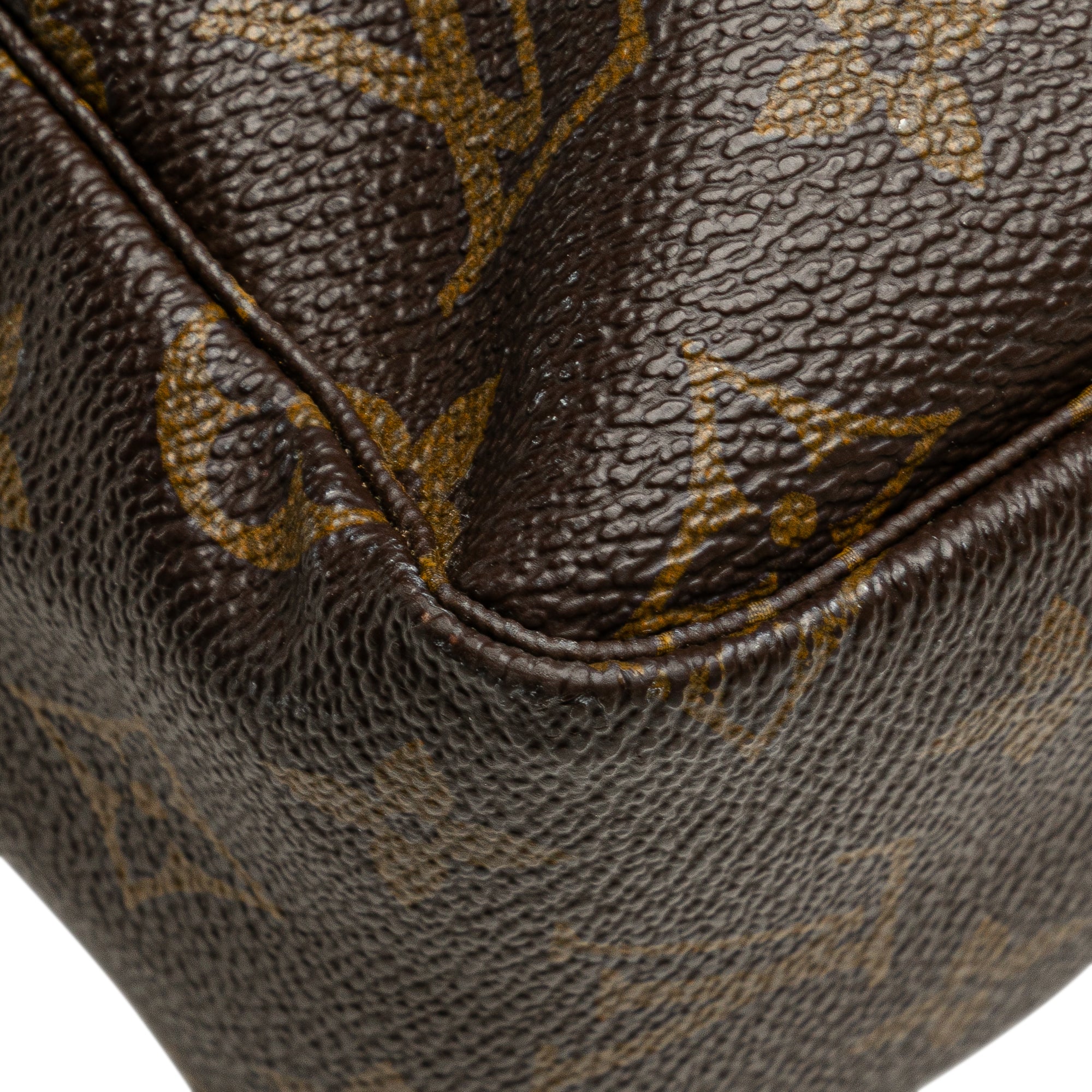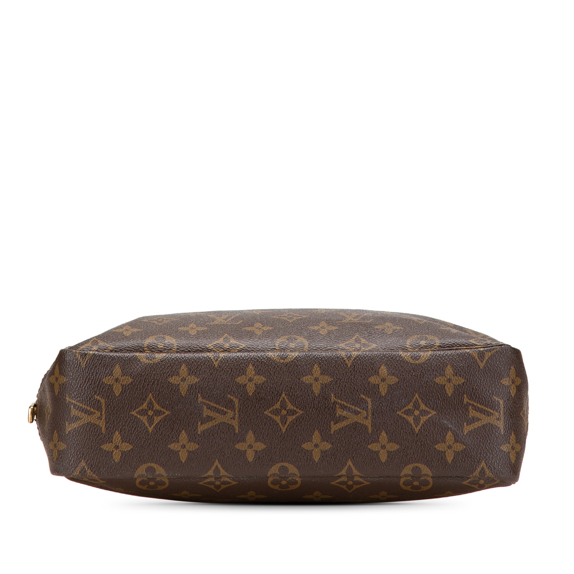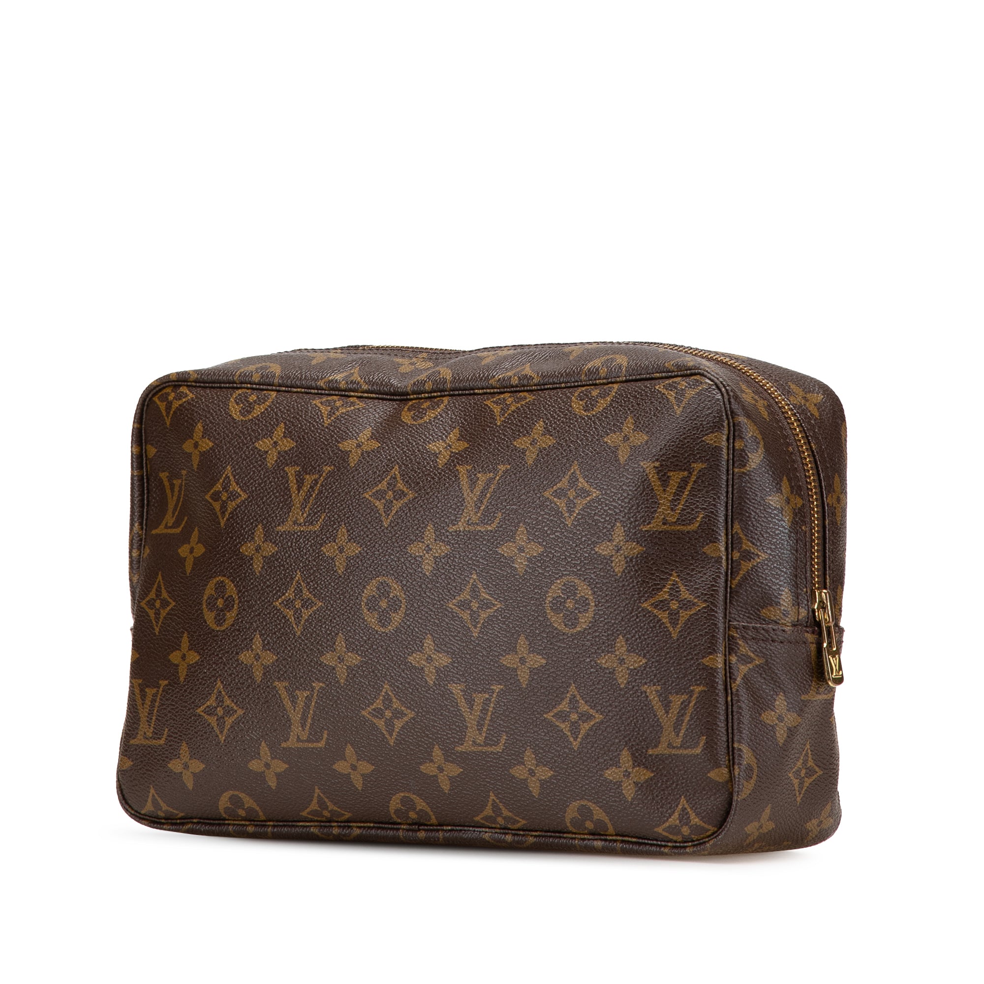 The Trousse Toilette 28 features a monogram canvas body, a top zip closure, and an interior slip pocket. Retail Price: 700.00