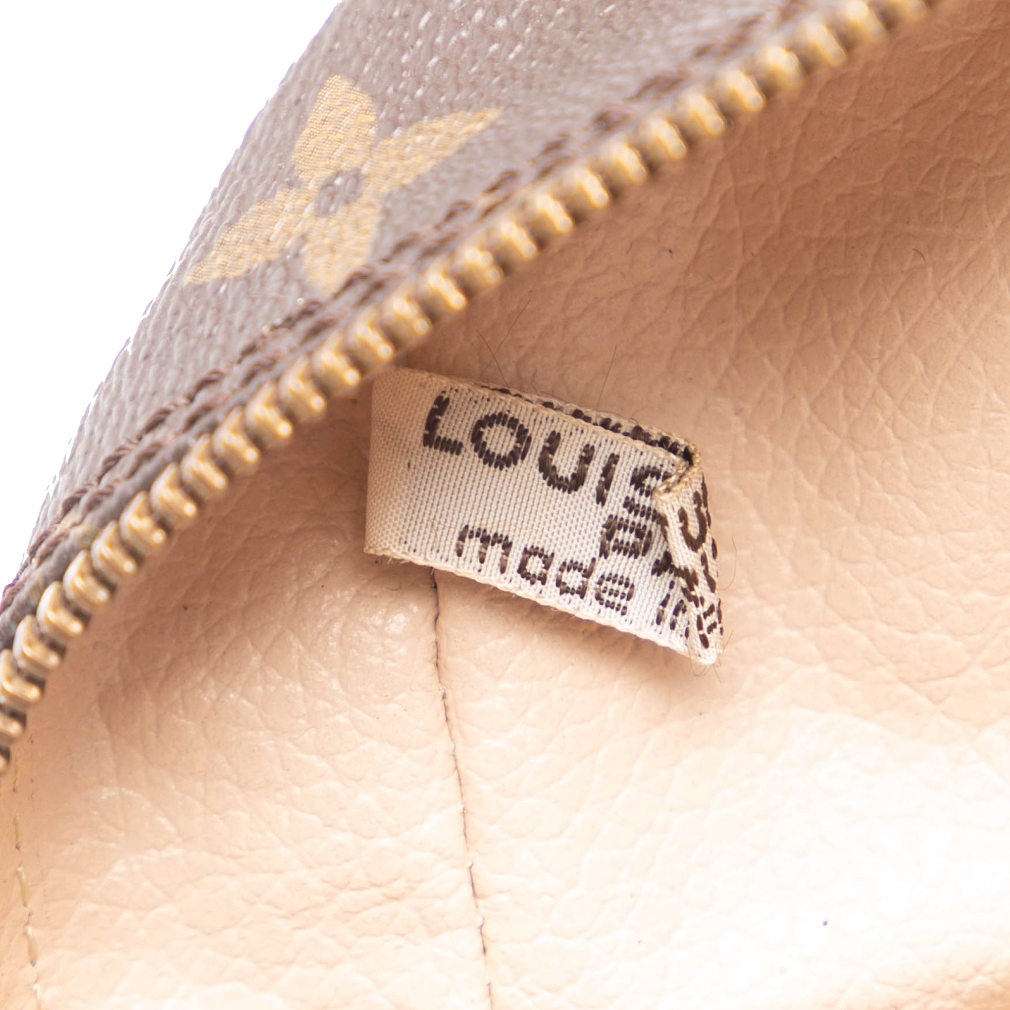 The Trousse Toilette 28 features a monogram canvas body, a top zip closure, and an interior slip pocket. Retail Price: 700.00