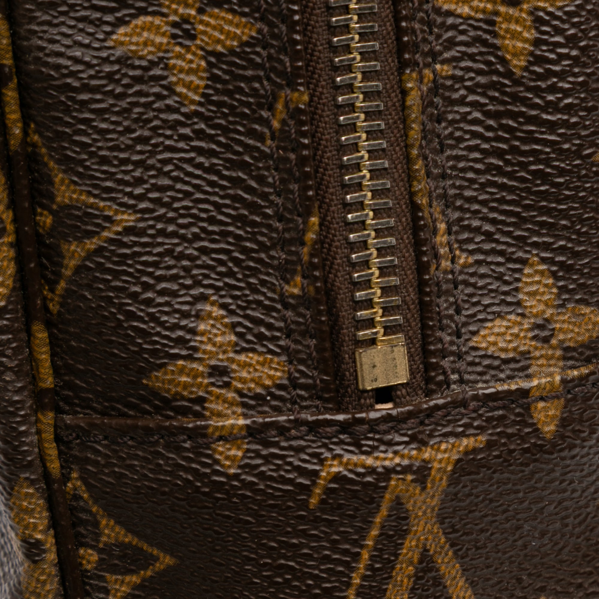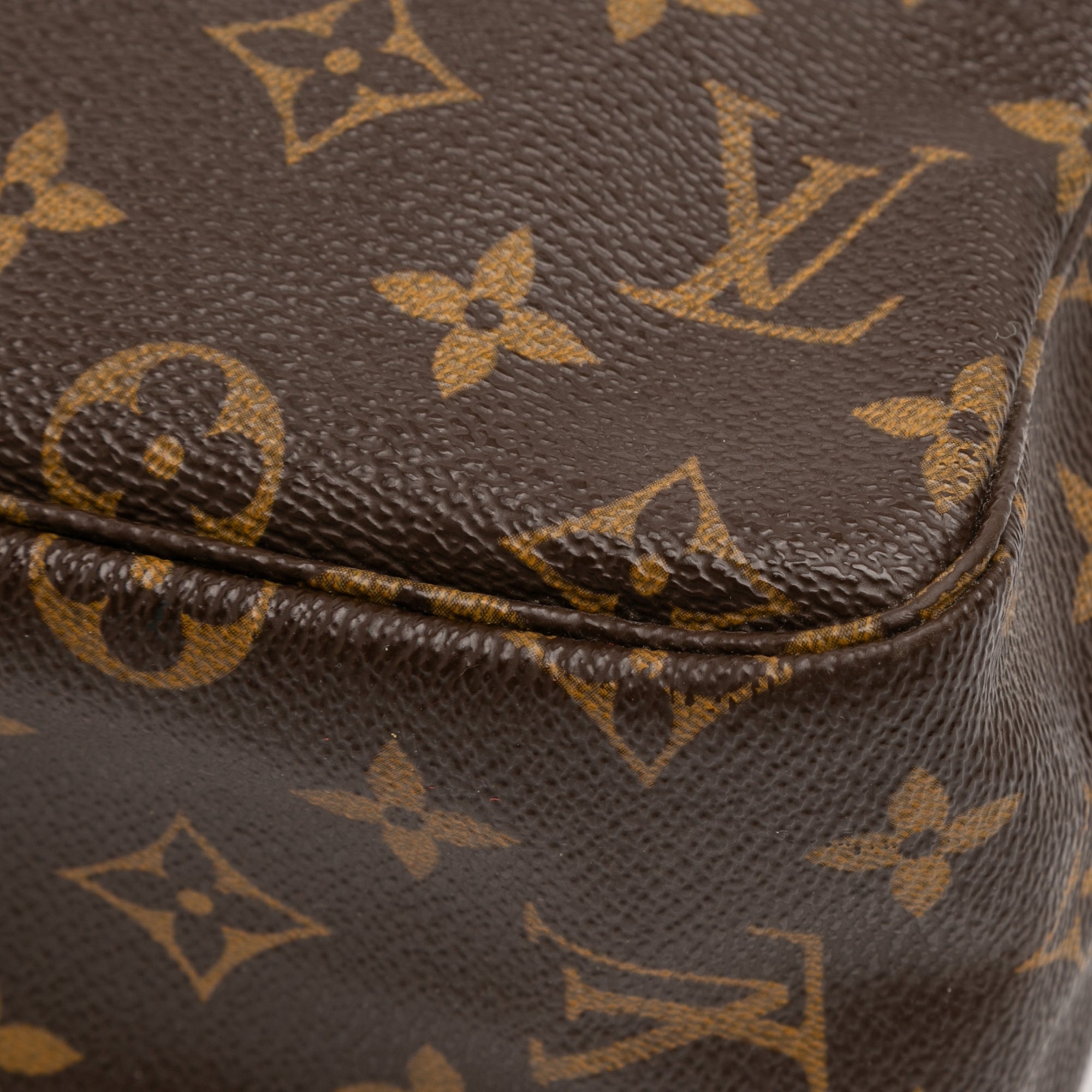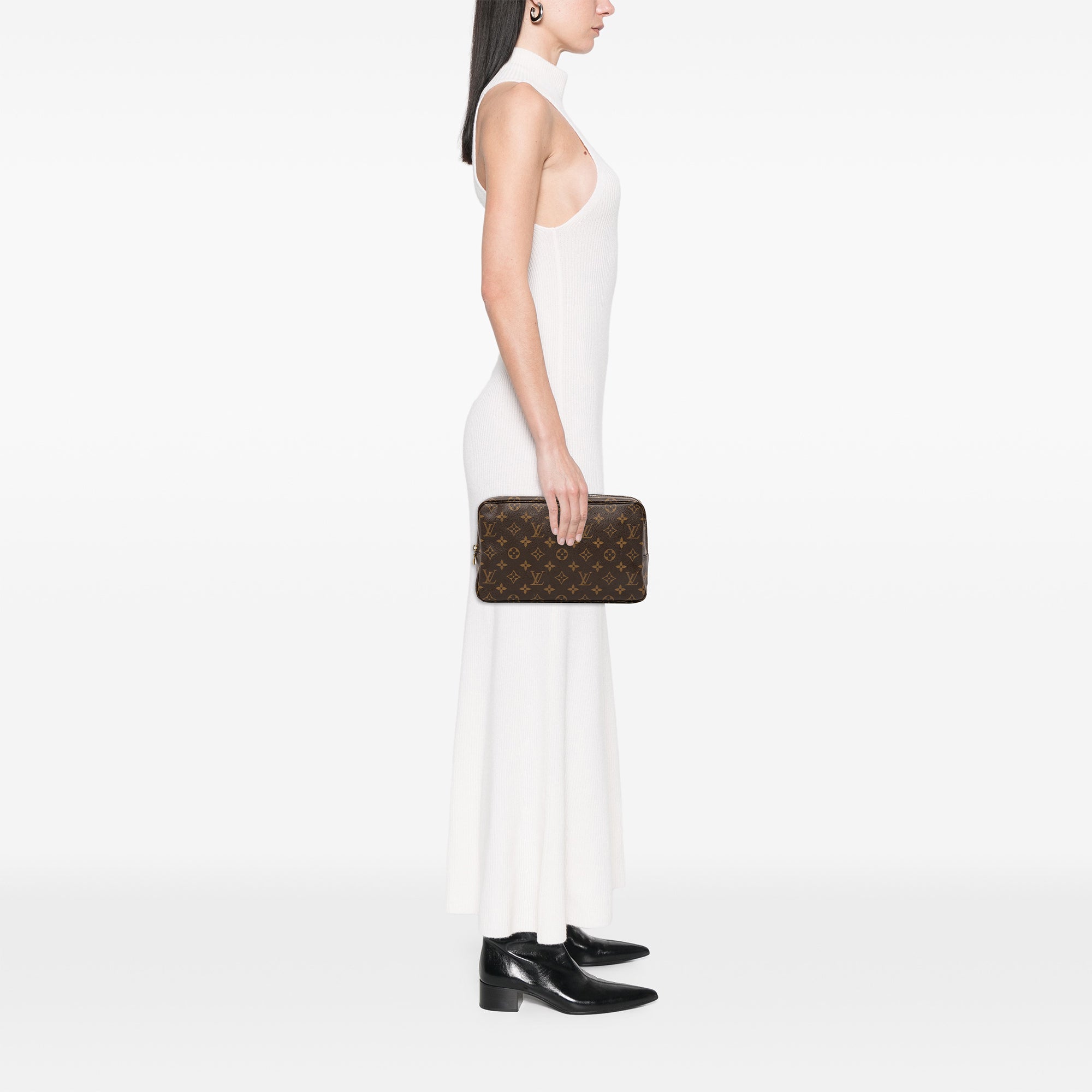 The Trousse Toilette 28 features a monogram canvas body, a top zip closure, and an interior slip pocket. Retail Price: 700.00