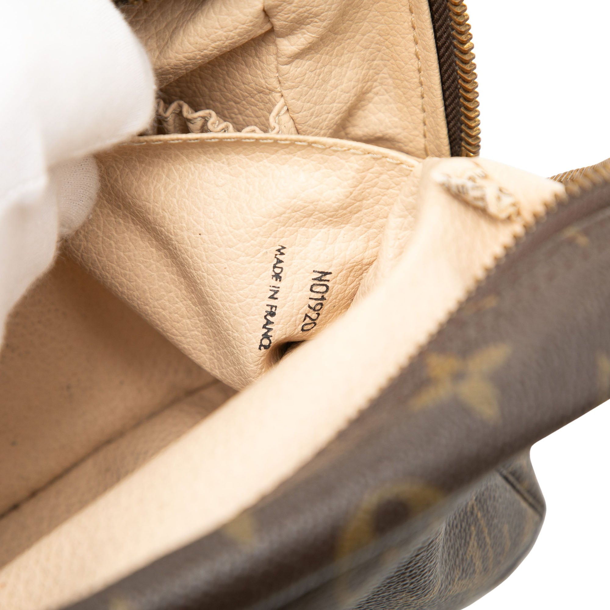 The Trousse Toilette 28 features a monogram canvas body, a top zip closure, and an interior slip pocket. Retail Price: 700.00