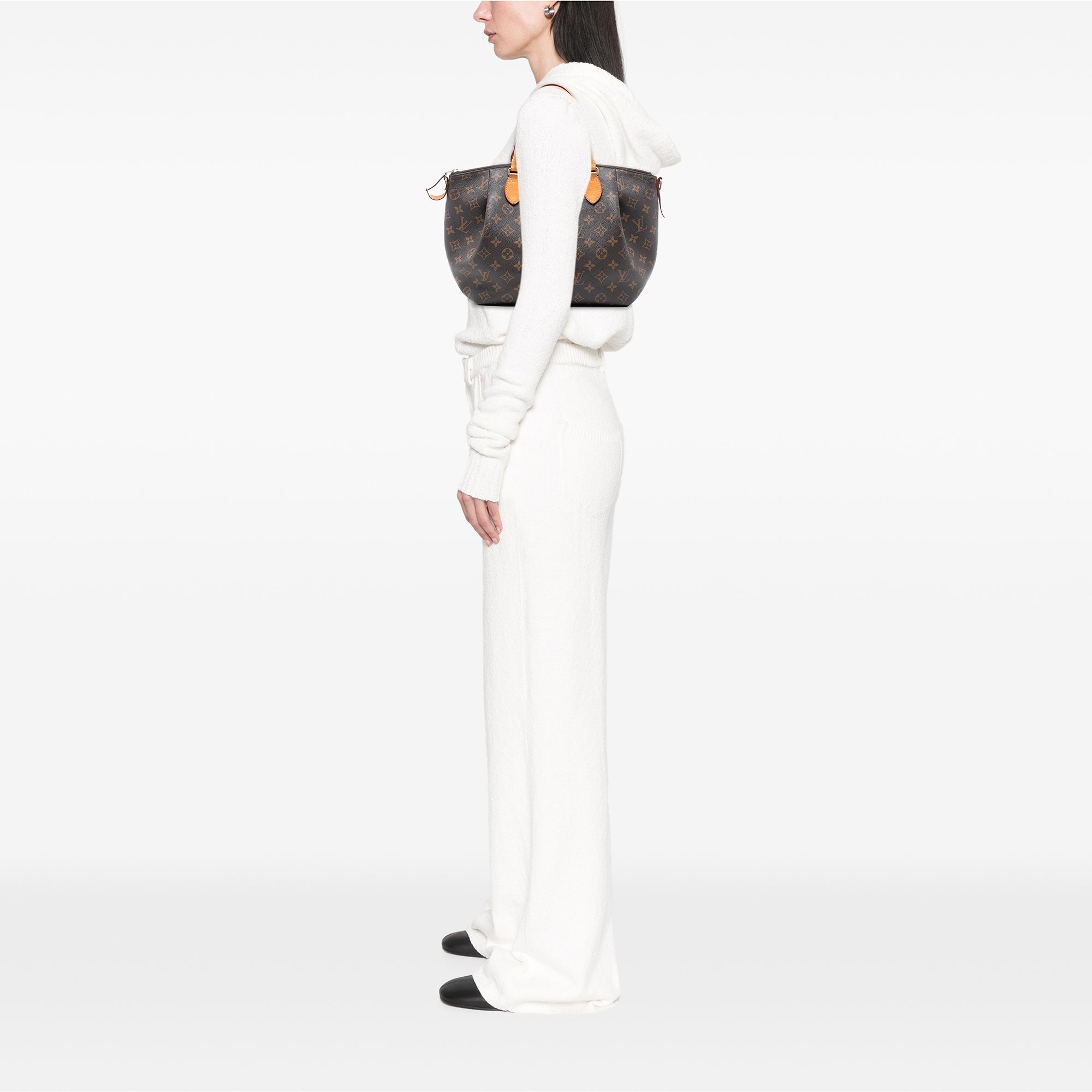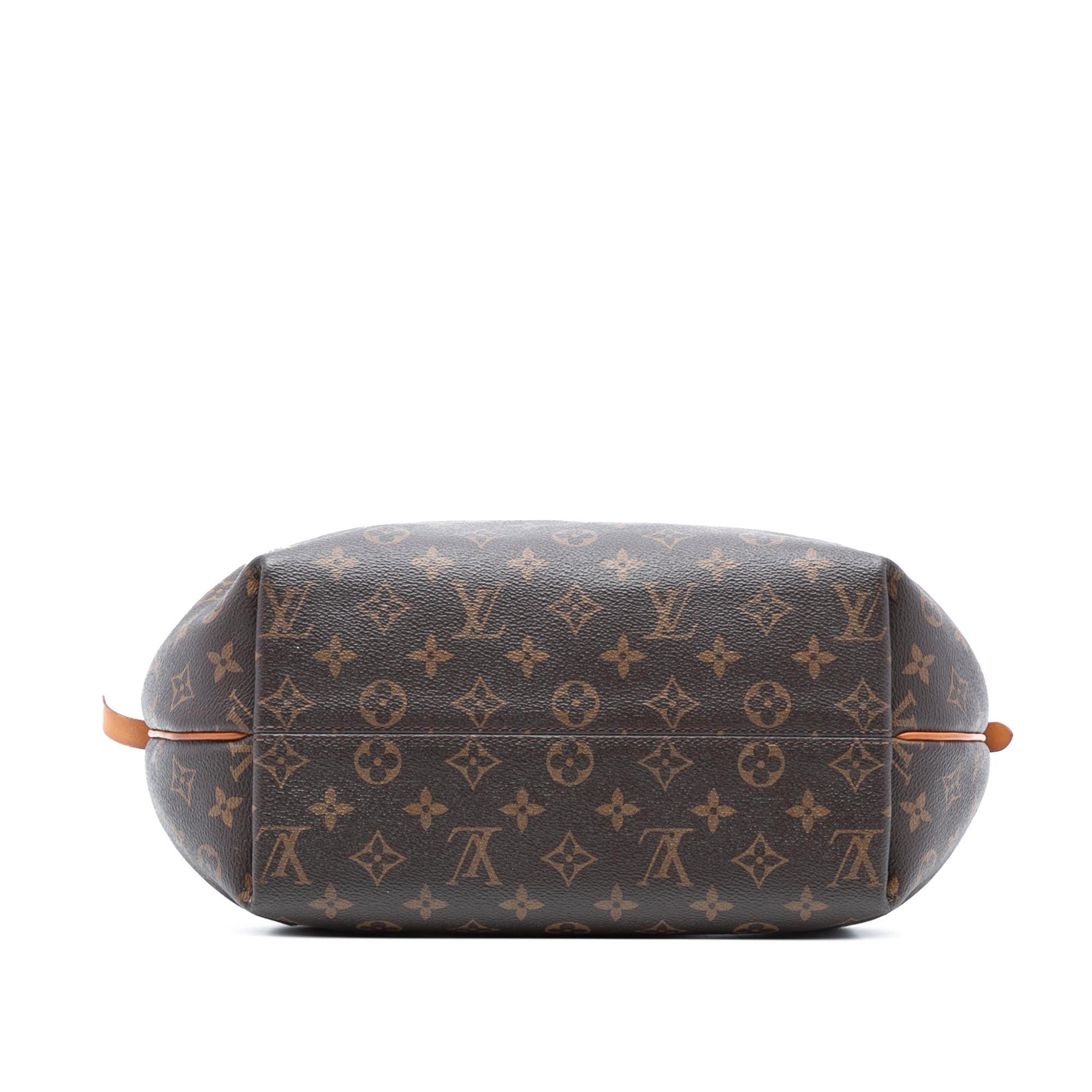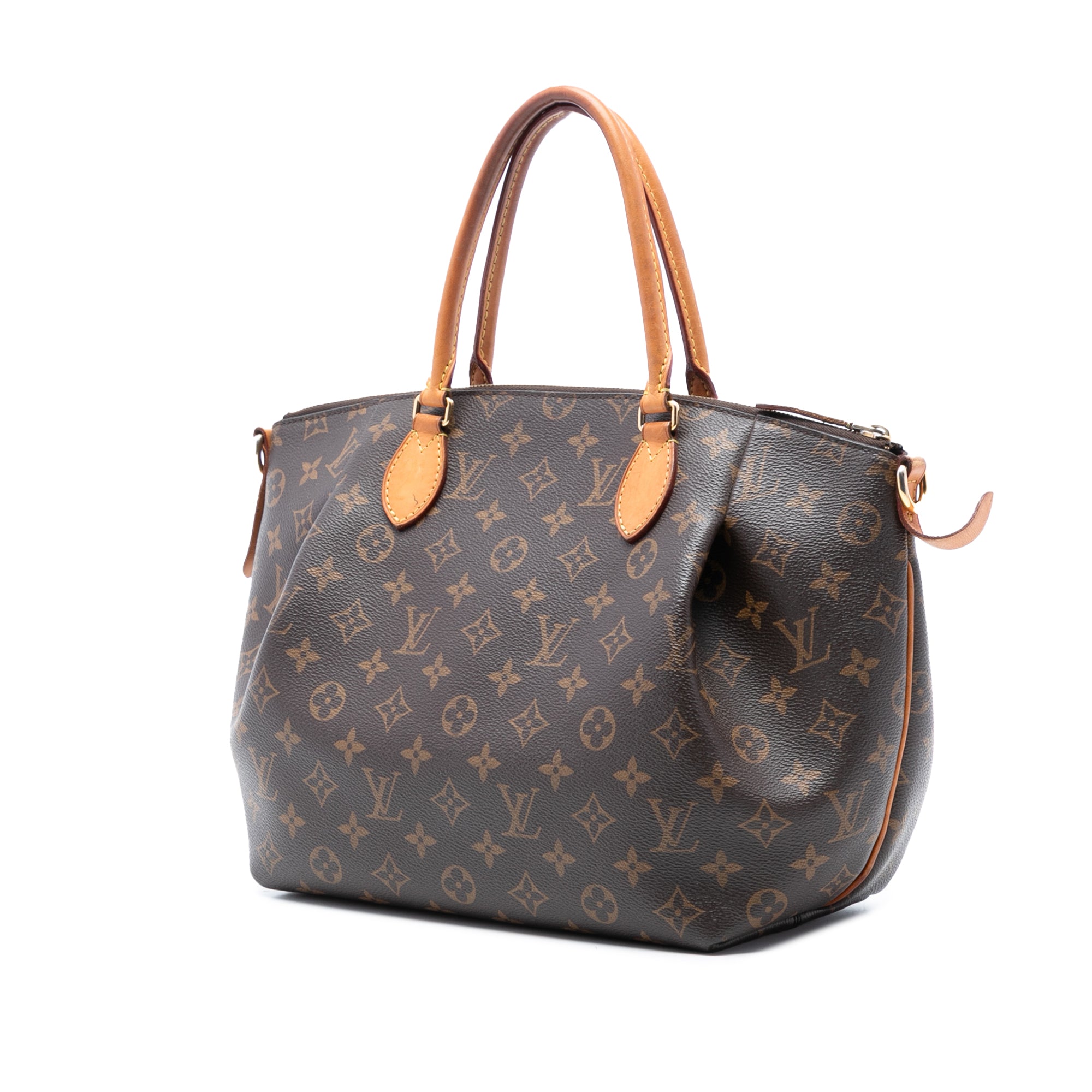 The Turenne MM features a monogram canvas body with vachetta leather trim, rolled leather handles, a top zip closure, and interior slip pockets. Retail Price: 1670.00