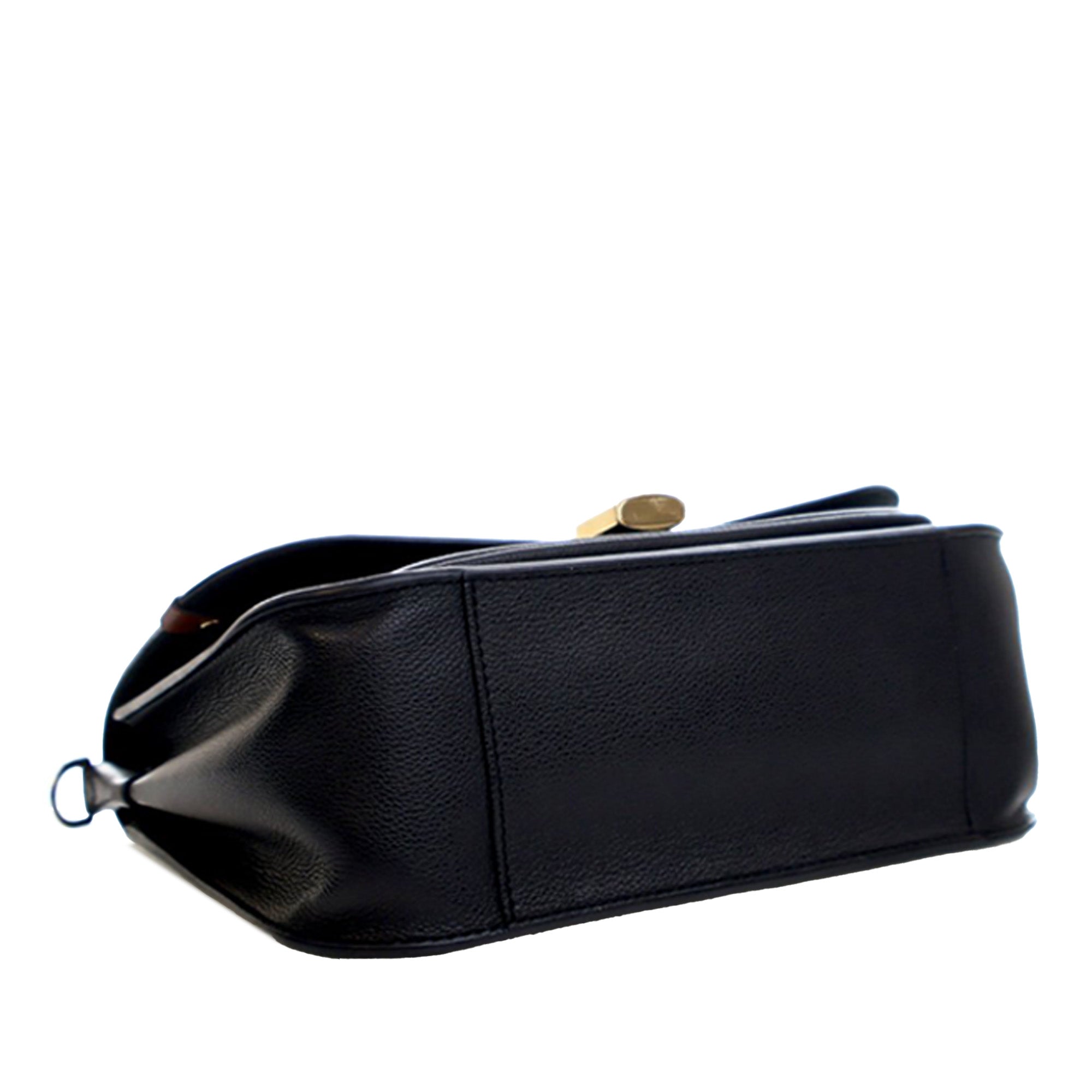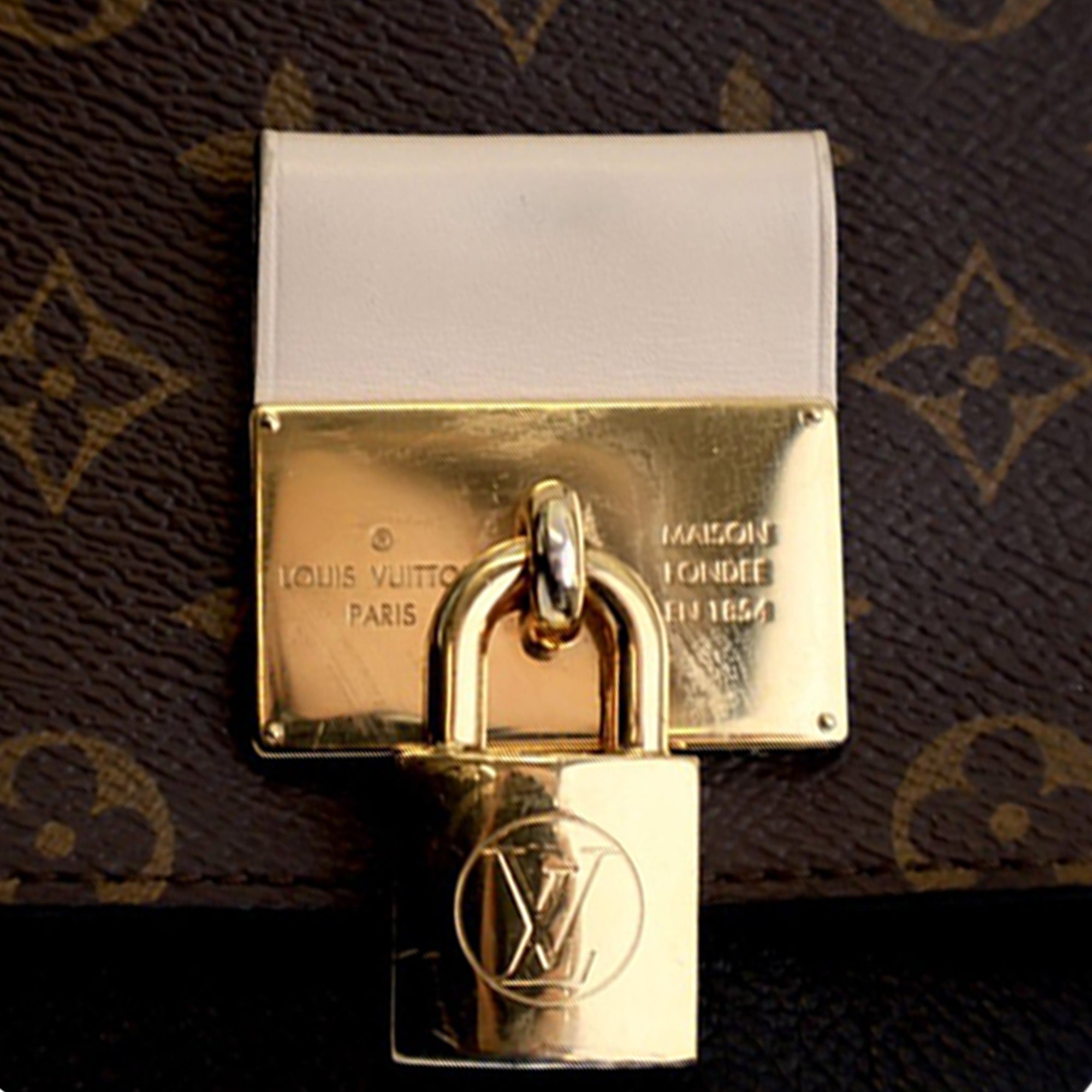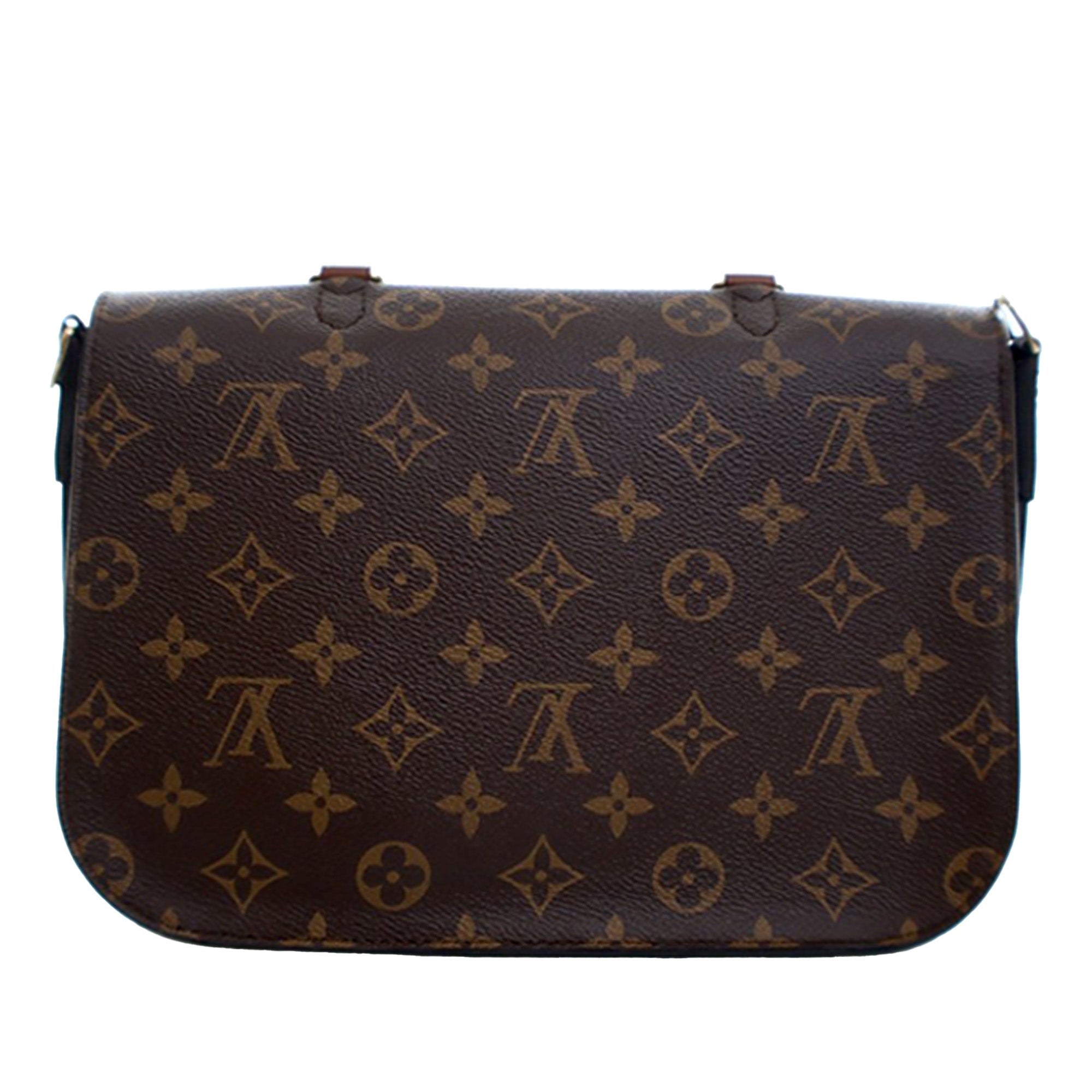 The Vaugirard satchel features a monogram canvas and leather body, a rolled leather top handle, an adjustable and detachable flat leather strap, a front monogram canvas with snap closure, and interior slip pockets. Retail Price: 2425.00