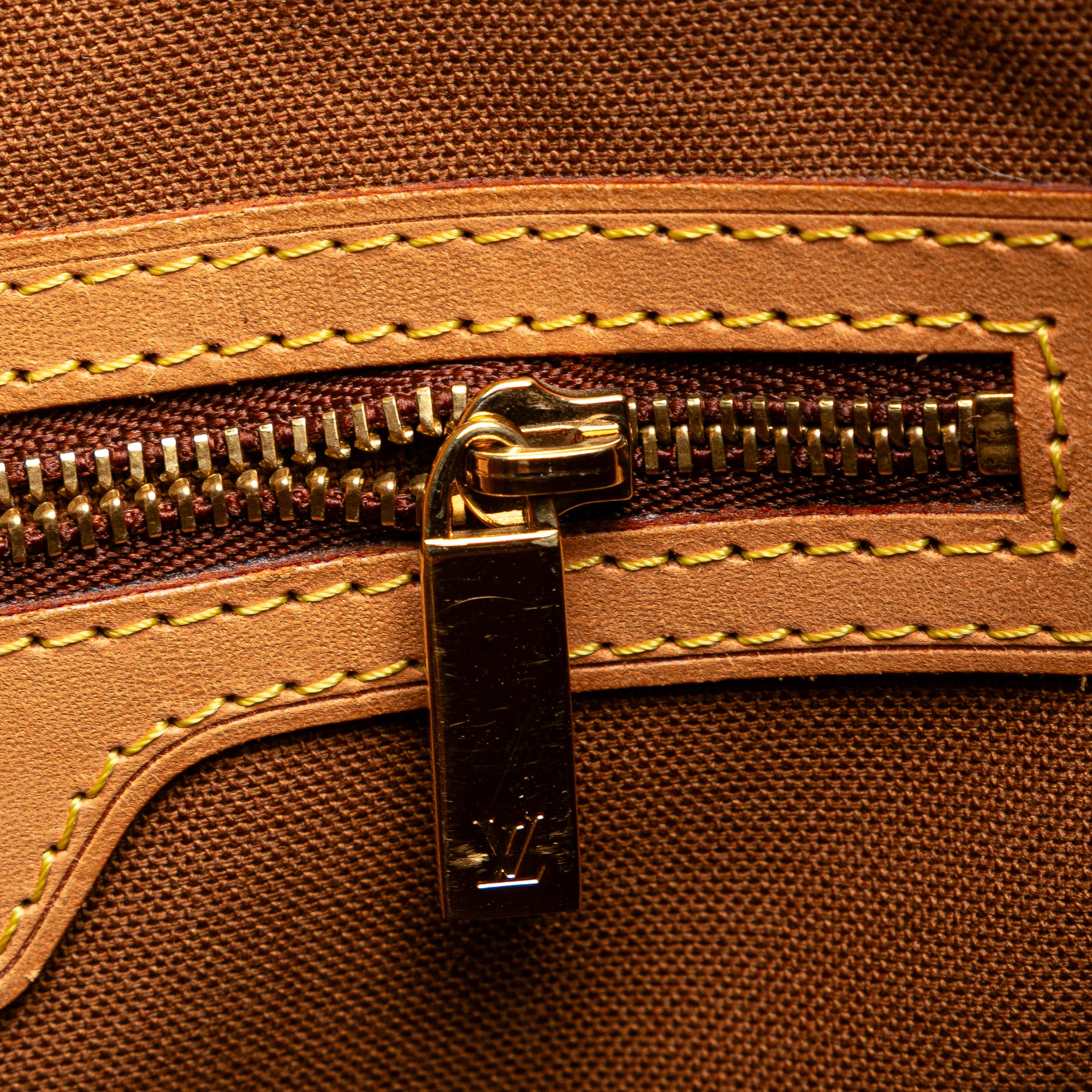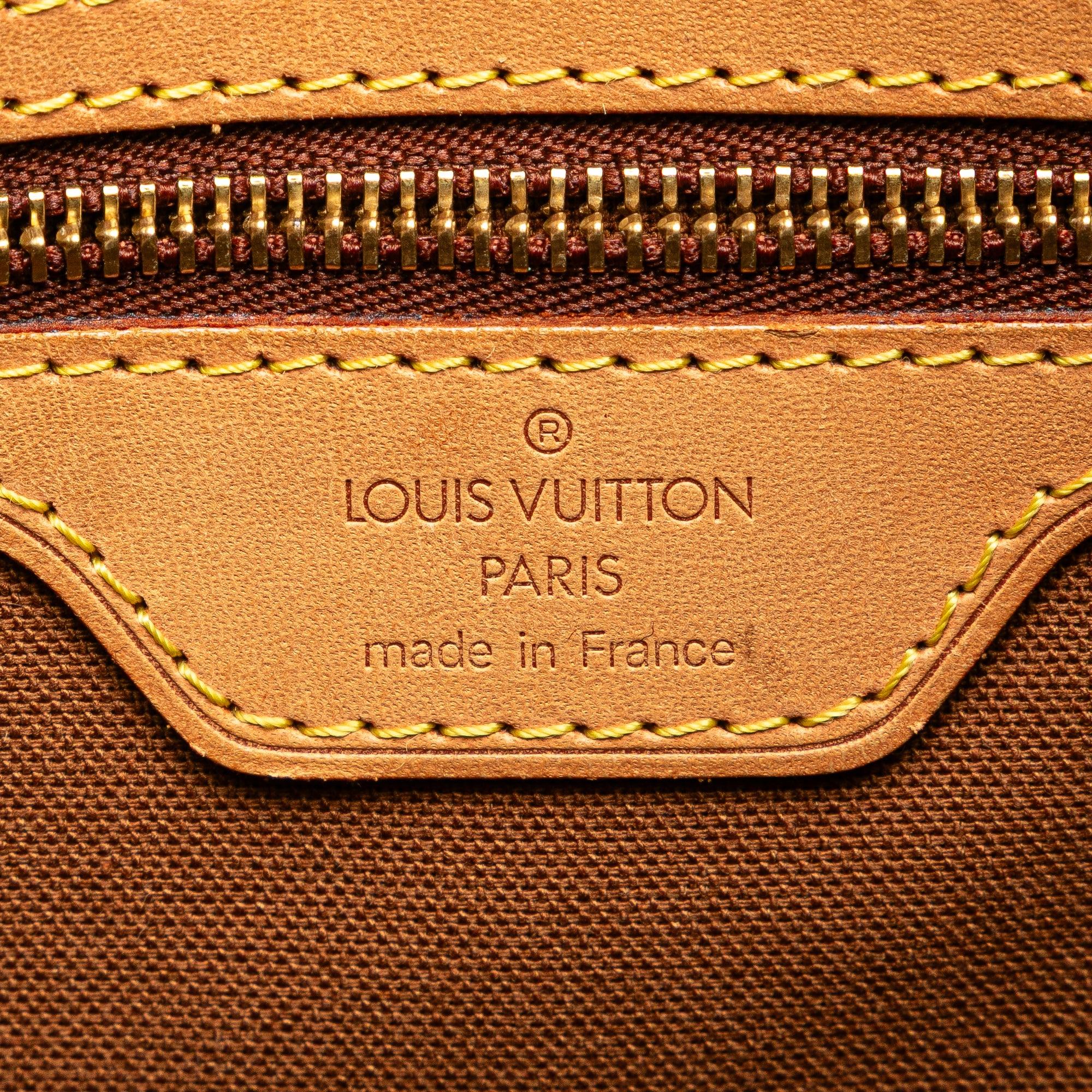 The Vavin GM features a monogram canvas body, flat vachetta leather straps, an open top, and interior zip and slip pockets. Retail Price: 1450.00