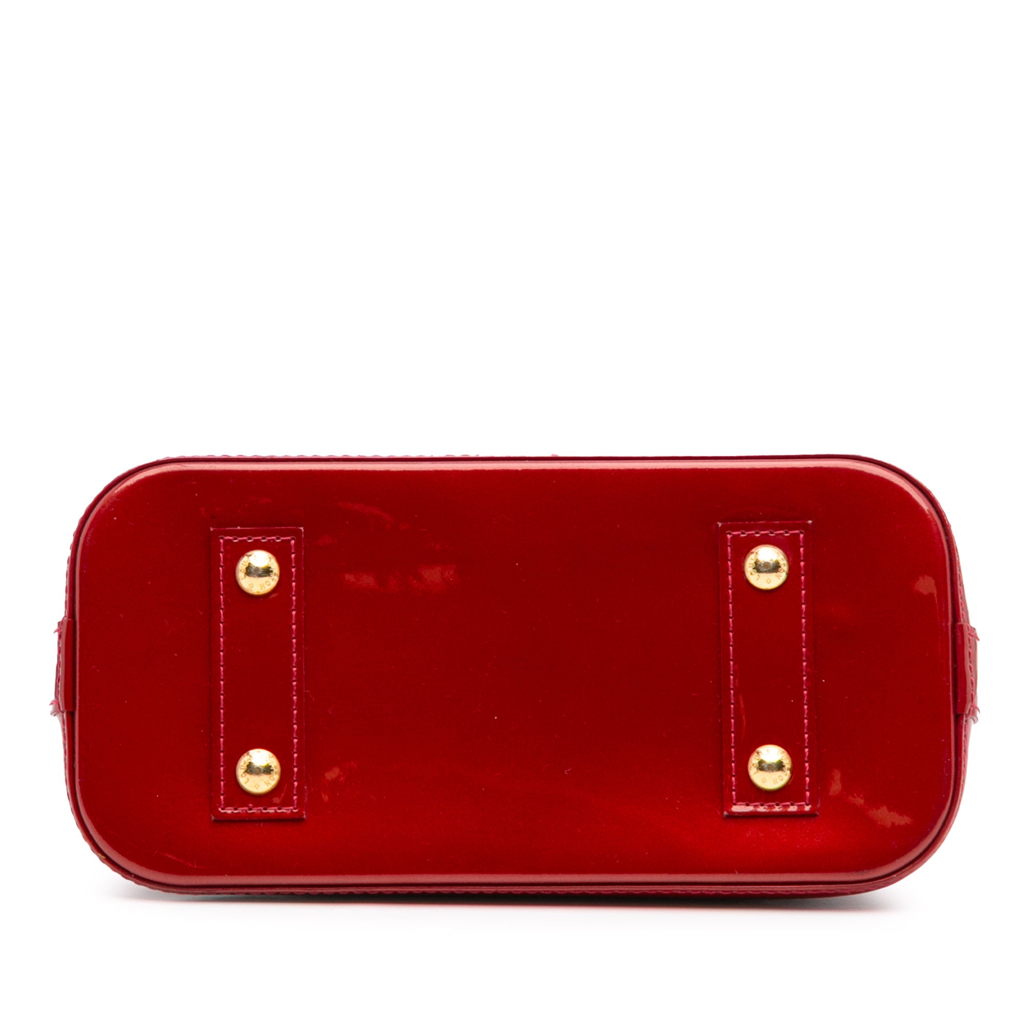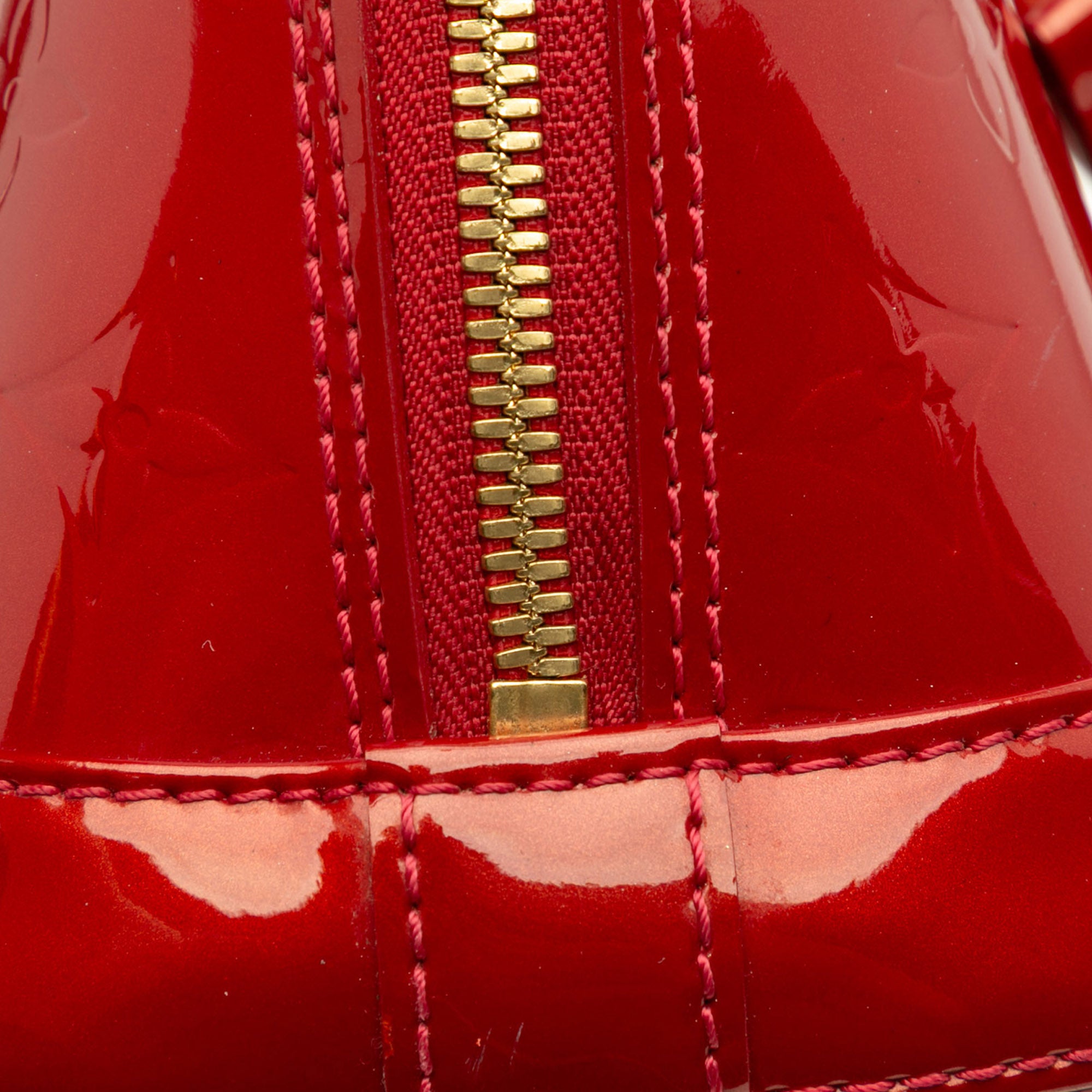 The Alma BB features a monogram vernis leather body, a clochette, rolled leather handles, a top zip around closure, and an interior slip pocket. Retail Price: 2230.00