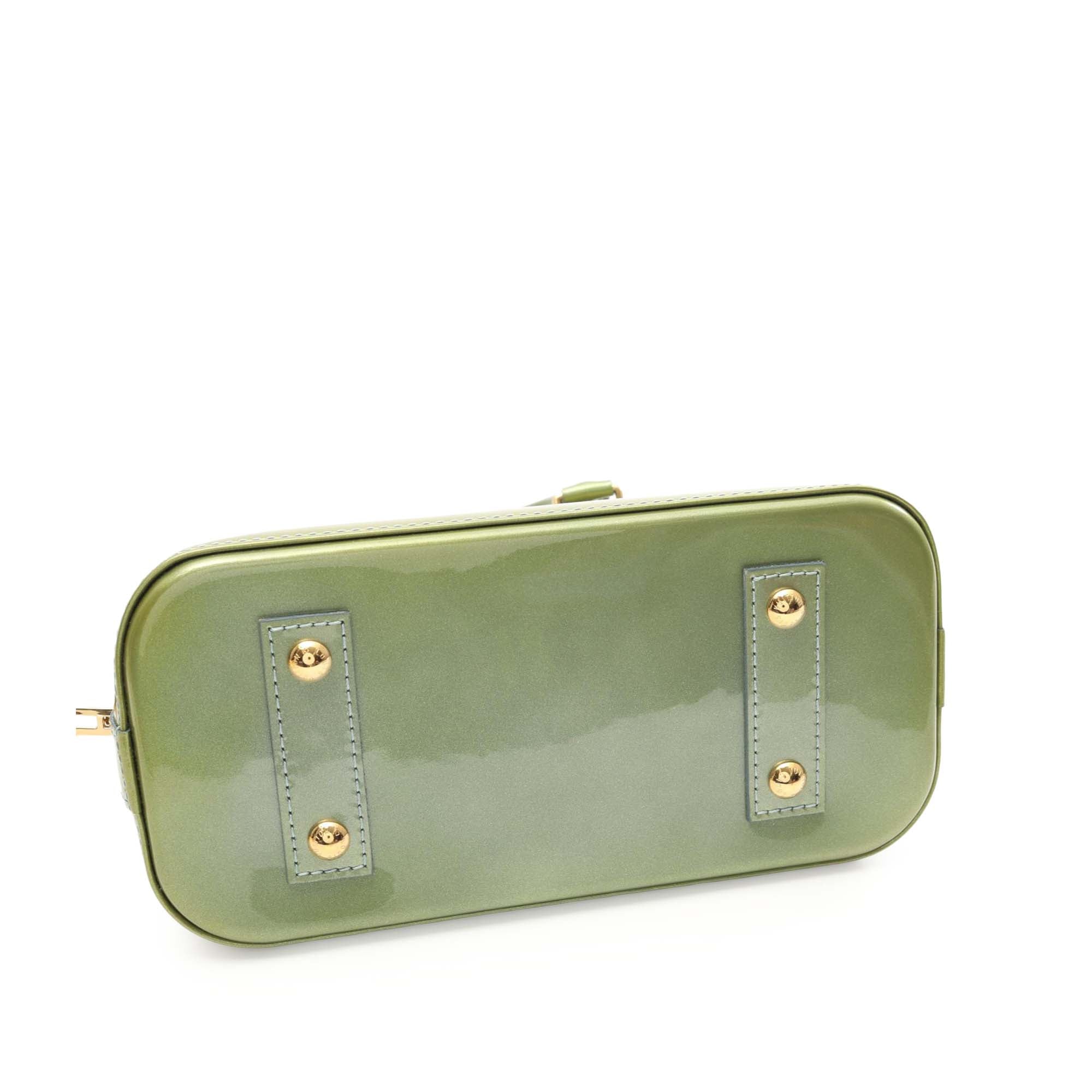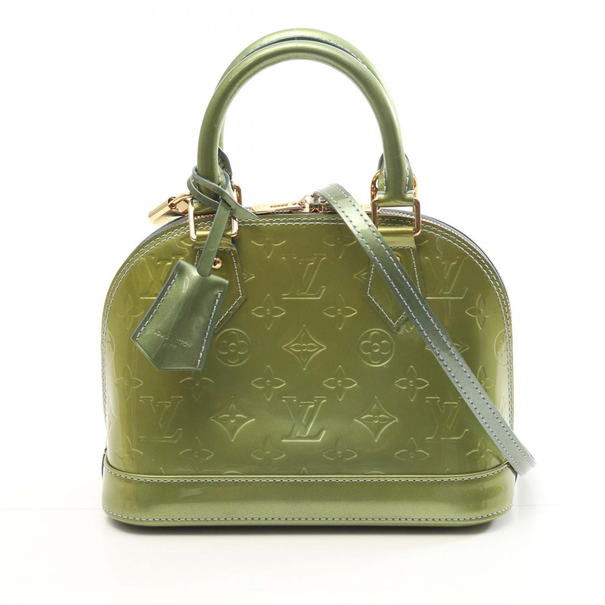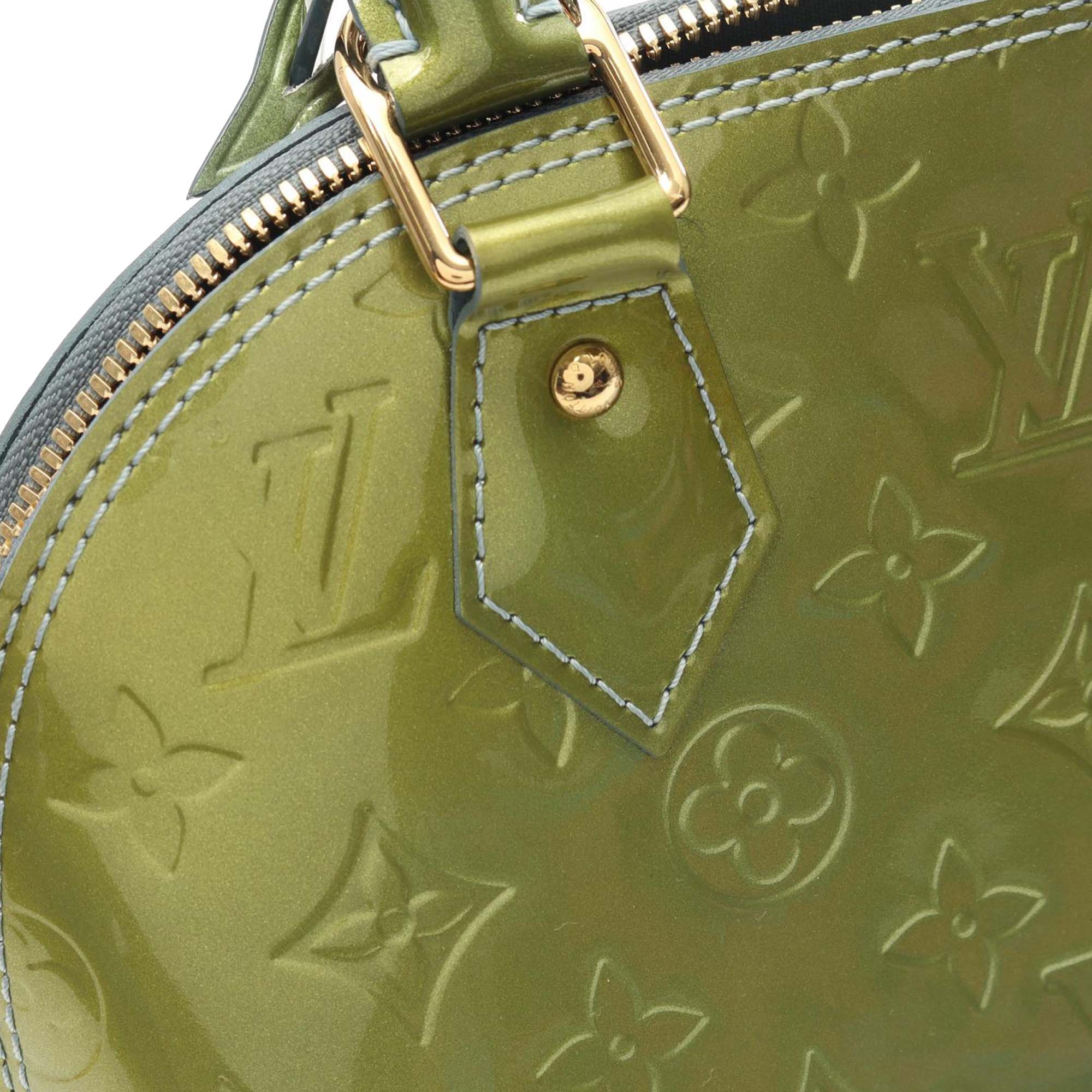 The Alma BB features a monogram vernis leather body, rolled leather handles, a detachable flat leather strap, a top zip-around closure, a clochette, and an interior slip pocket. Inclusion: Dust bag. Retail Price: 1890.00