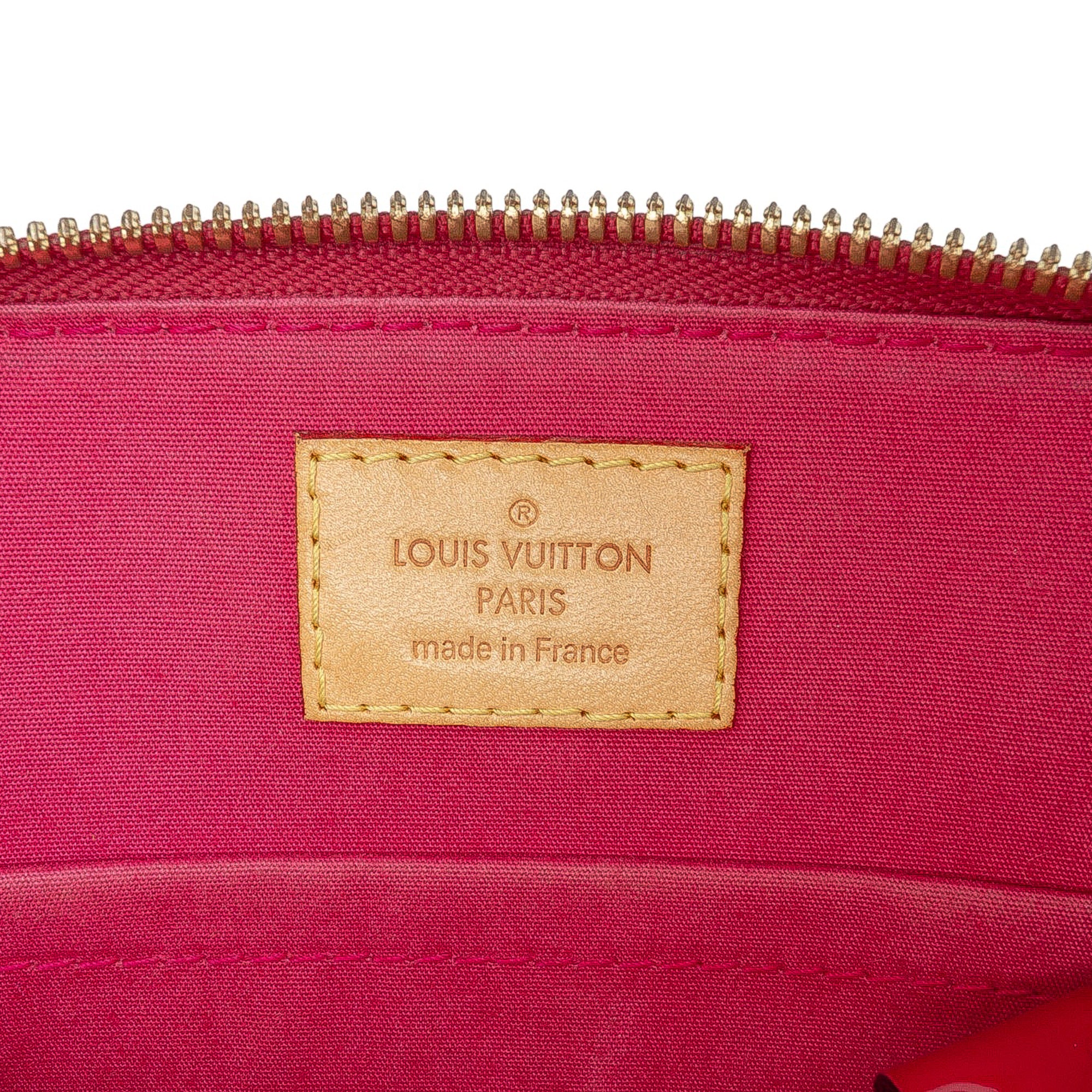The Alma BB features a vernis leather body, rolled leather handles, a detachable flat leather strap, a top zip around closure, a clochette, and an interior slip pocket. Retail Price: 2230.00