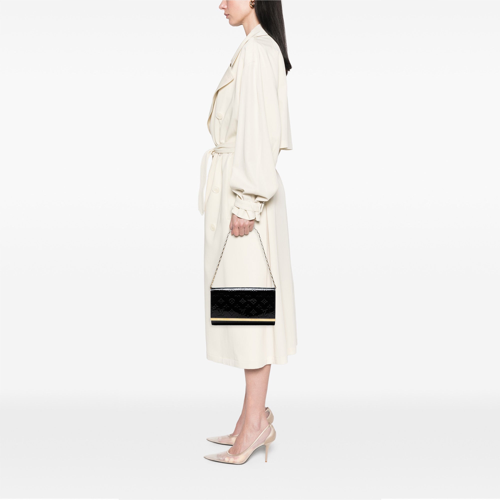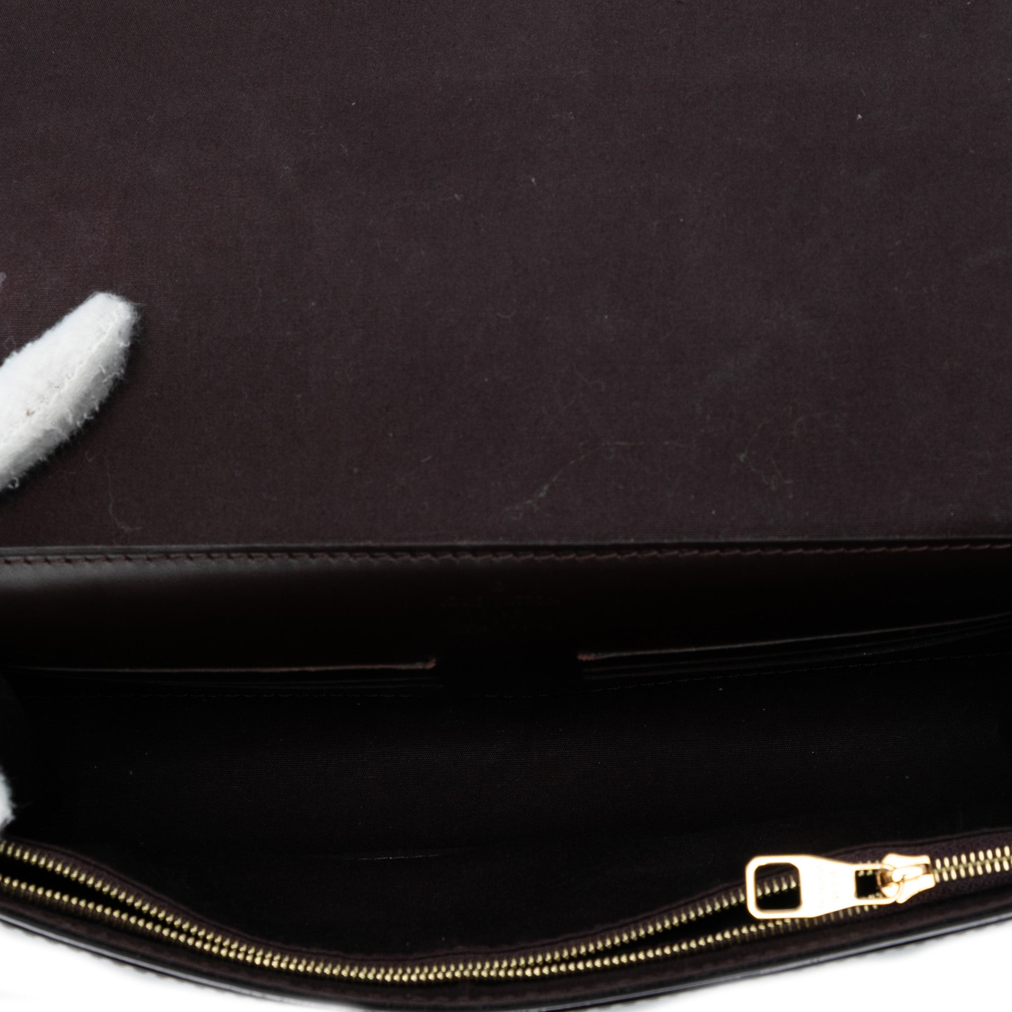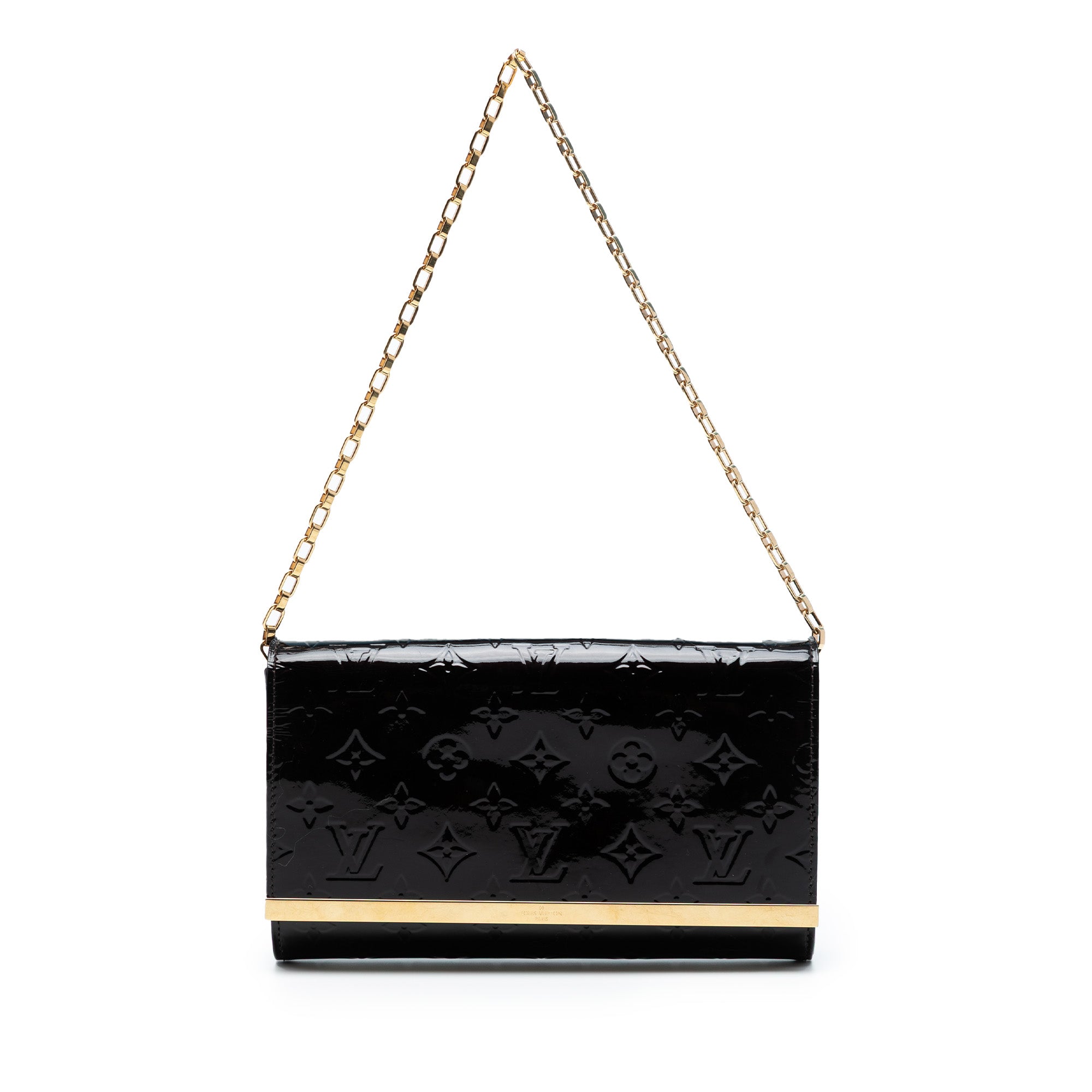 The Ana features a monogram vernis leather body, a chain link strap, a front flap with magnetic snap closure, an interior zip compartment, and interior slip pockets. Retail Price: 1990.00