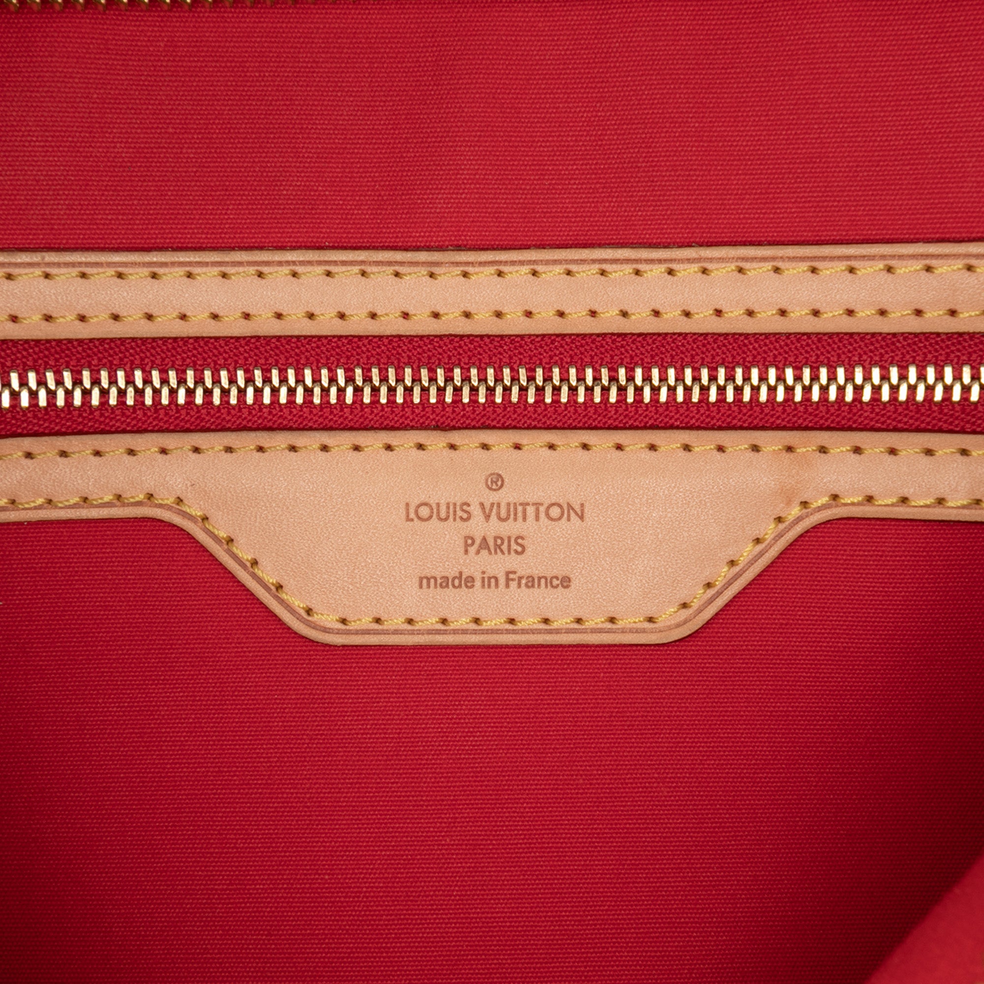 The Brea MM features a monogram vernis leather body, flat vachetta leather handles, a detachable vachetta leather strap, a top zip closure, and interior zip and slip pockets. Retail Price: 2730.00