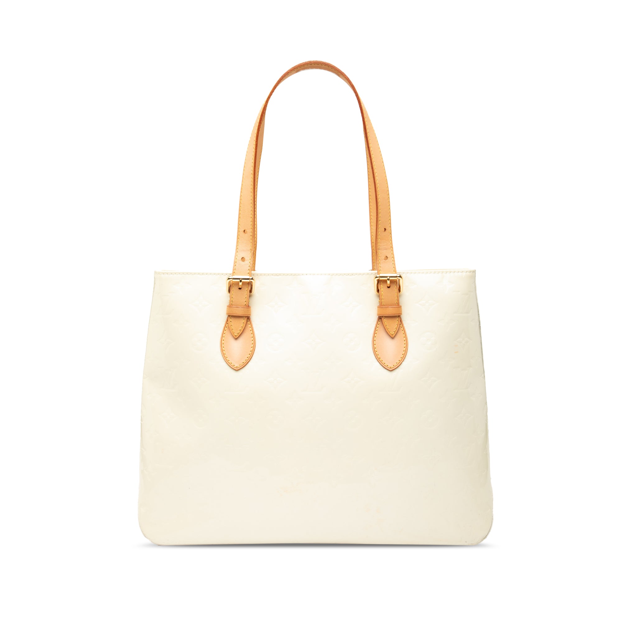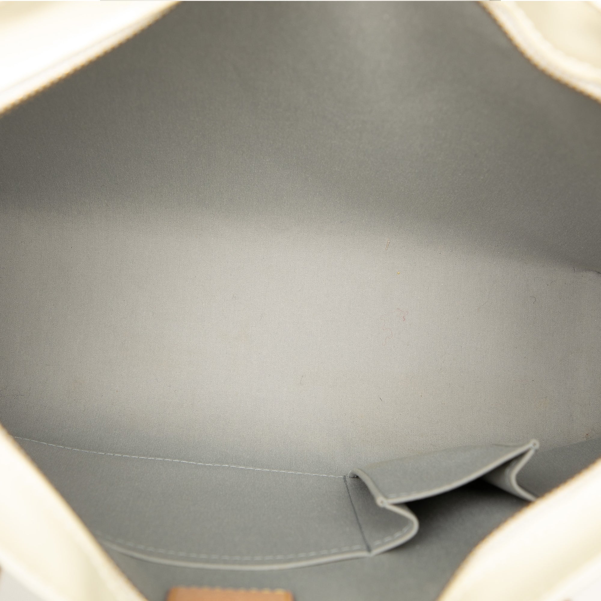 The Brentwood features a vernis leather body, flat vachetta leather straps, a top zip closure, and interior slip pockets. Retail Price: 1630.00