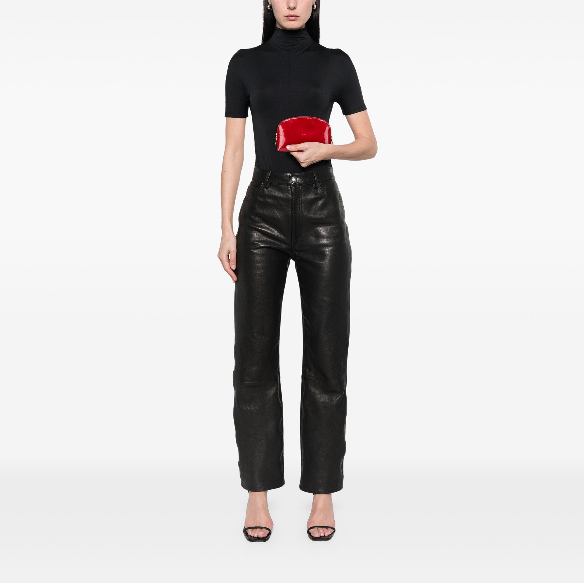 This pouch features a vernis leather body, a top zip closure, and an interior slip pocket. Retail Price: 530.00