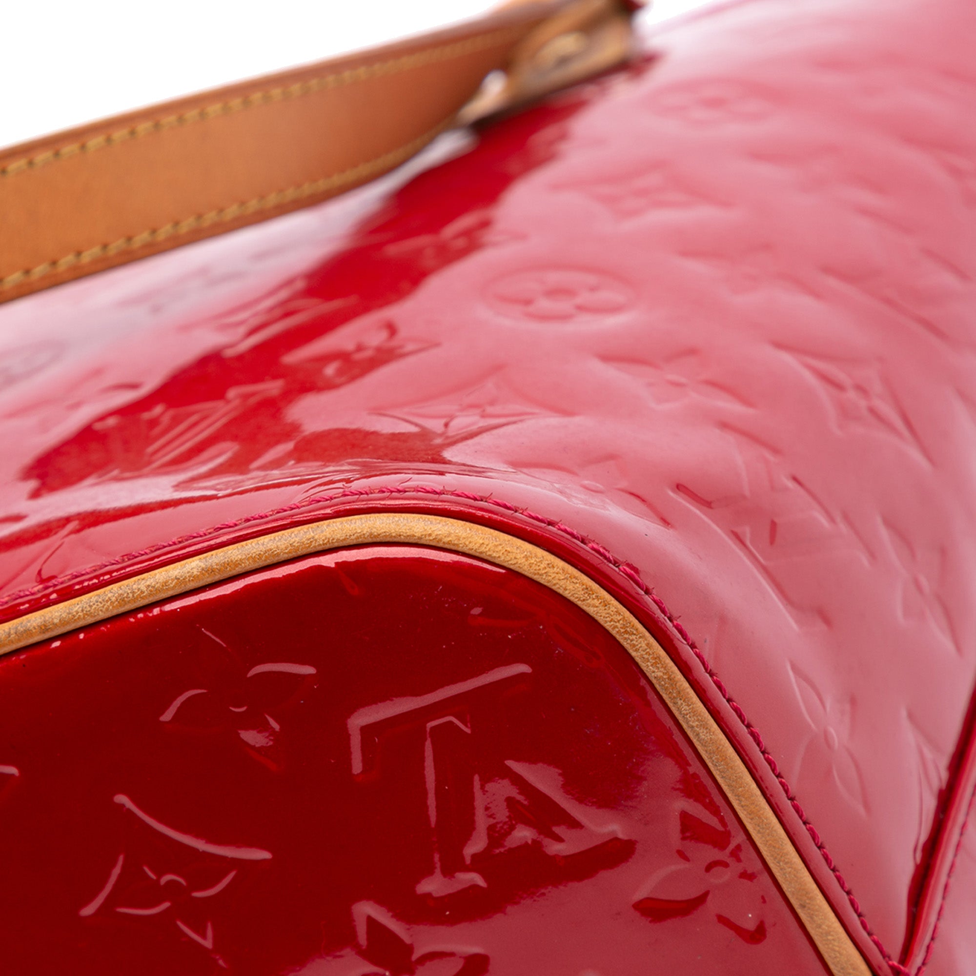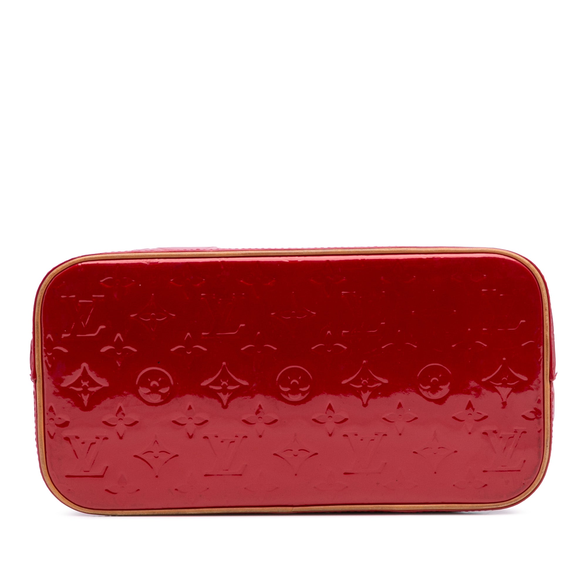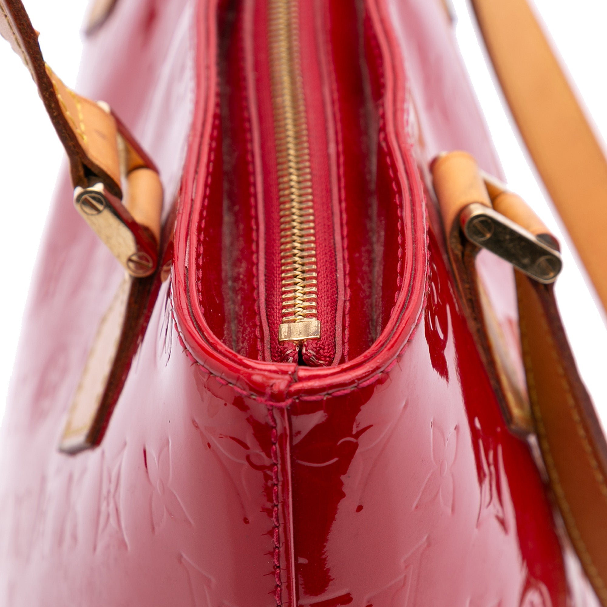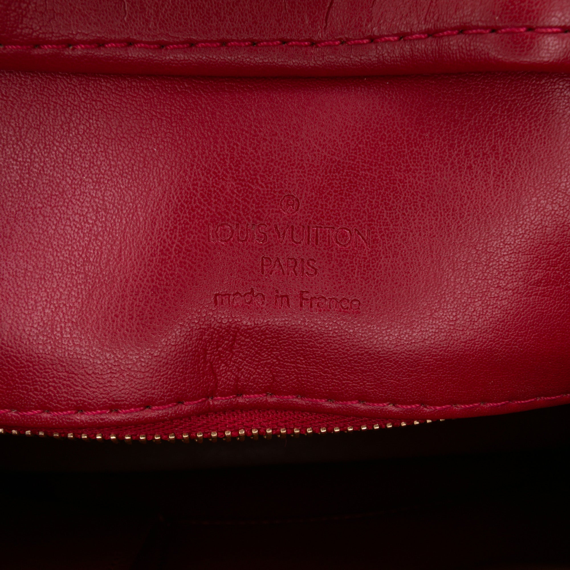 The Houston features a monogram vernis leather body, flat vachetta leather straps, a top zip closure, and interior zip and slip pockets. Retail Price: 1630.00