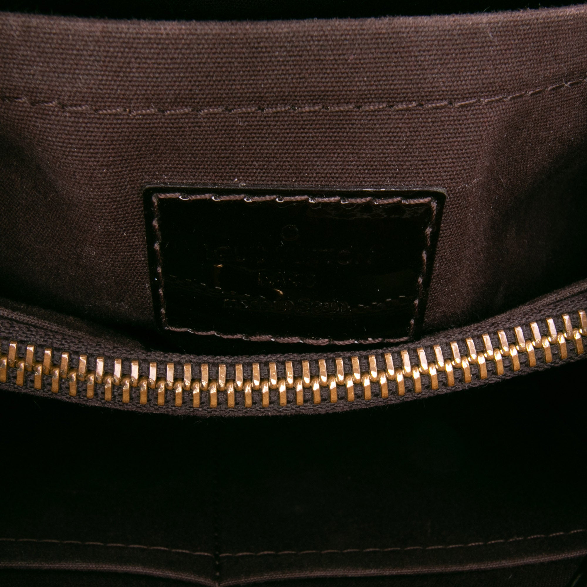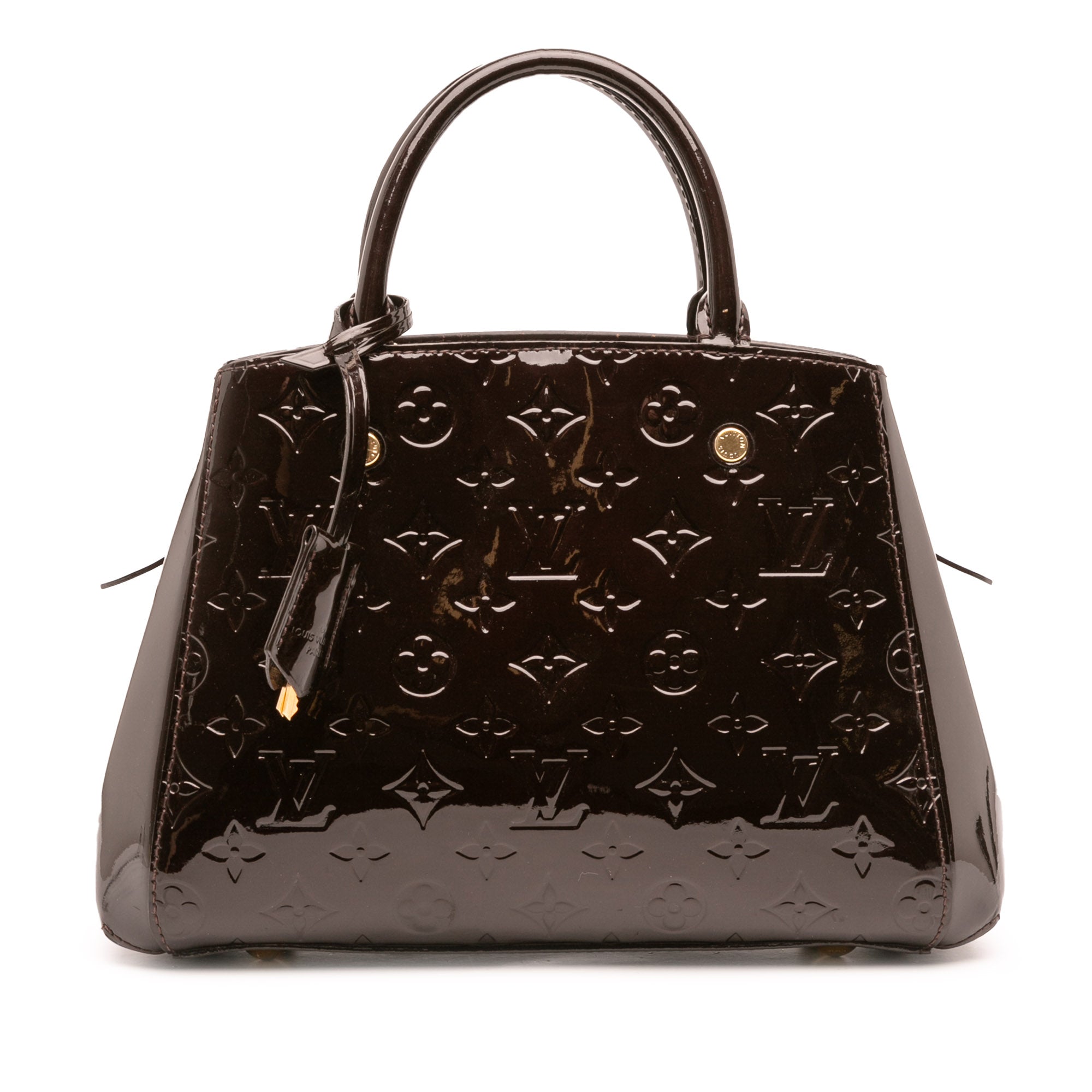 The Montaigne BB features a monogram vernis leather body, rolled leather handles, an open top with a clasp closure, a zip compartment, and interior slip and zip pockets. Retail Price: 2500.00