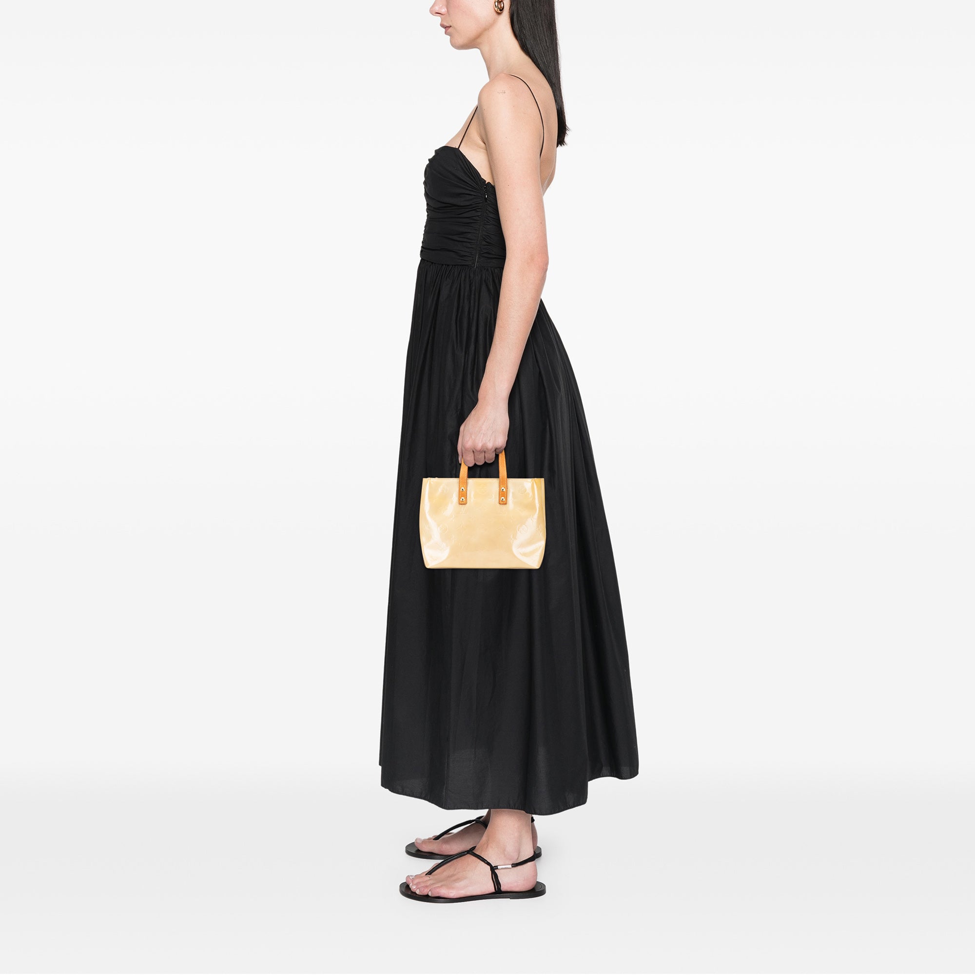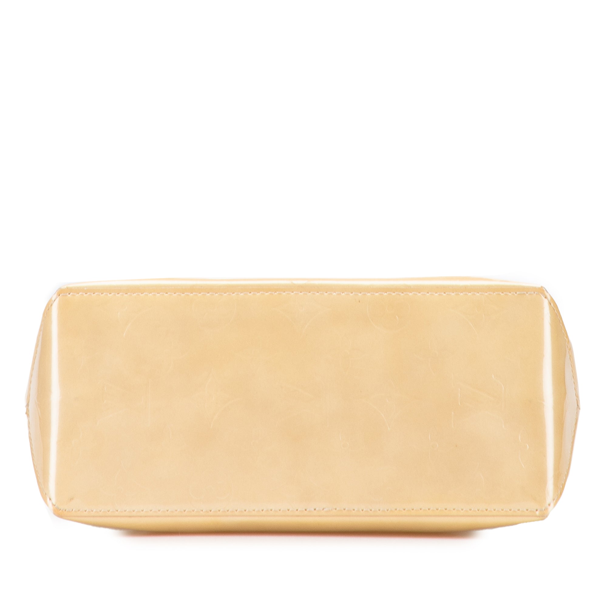 The Reade PM features a monogram vernis leather body, flat vachetta leather handles, an open top, and an interior zip pocket. Retail Price: 850.00