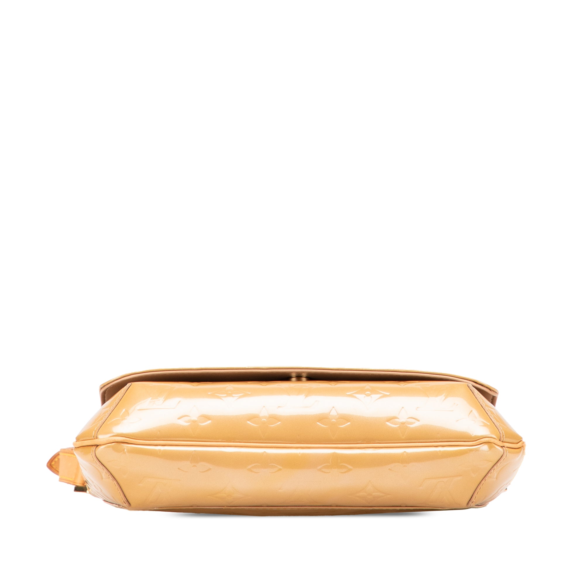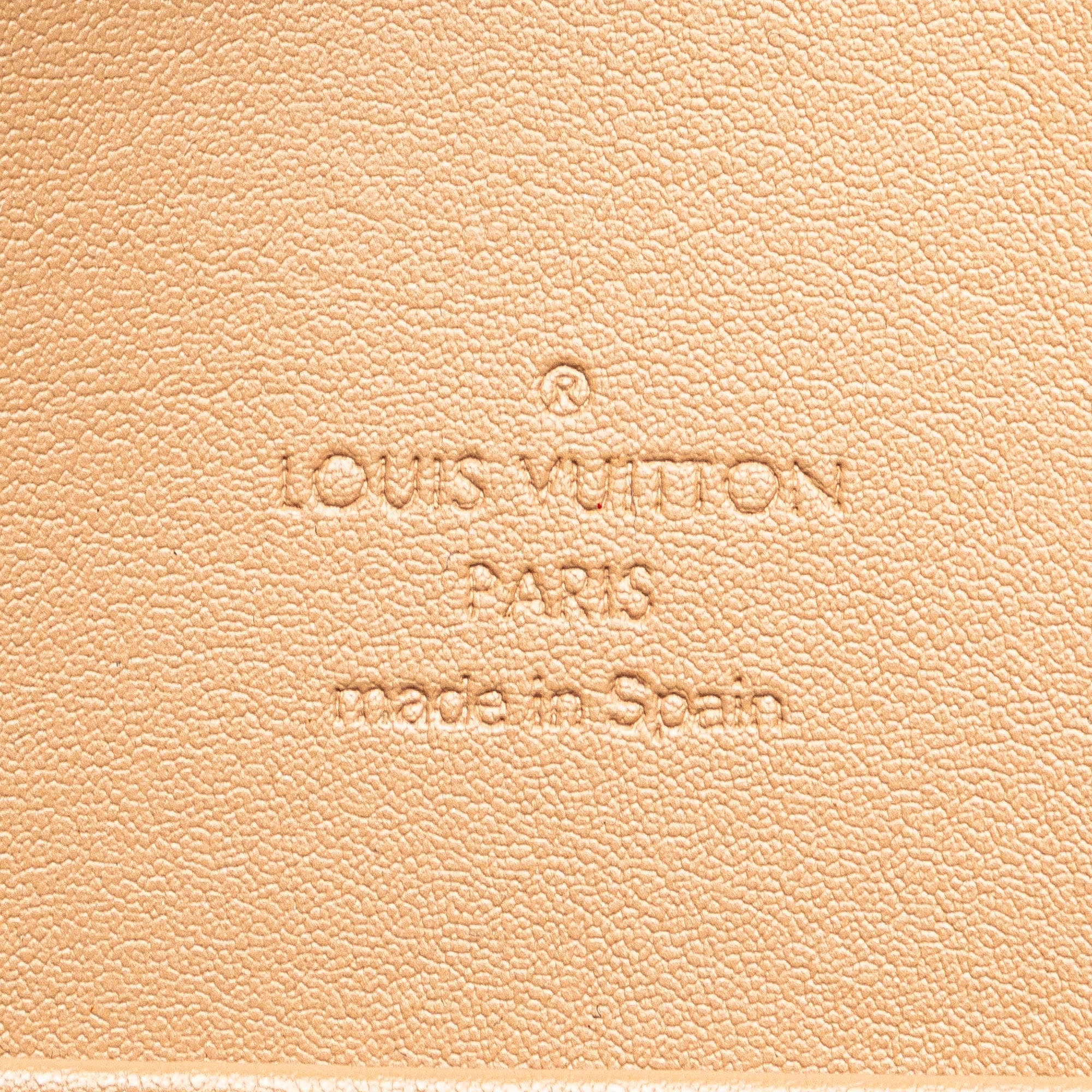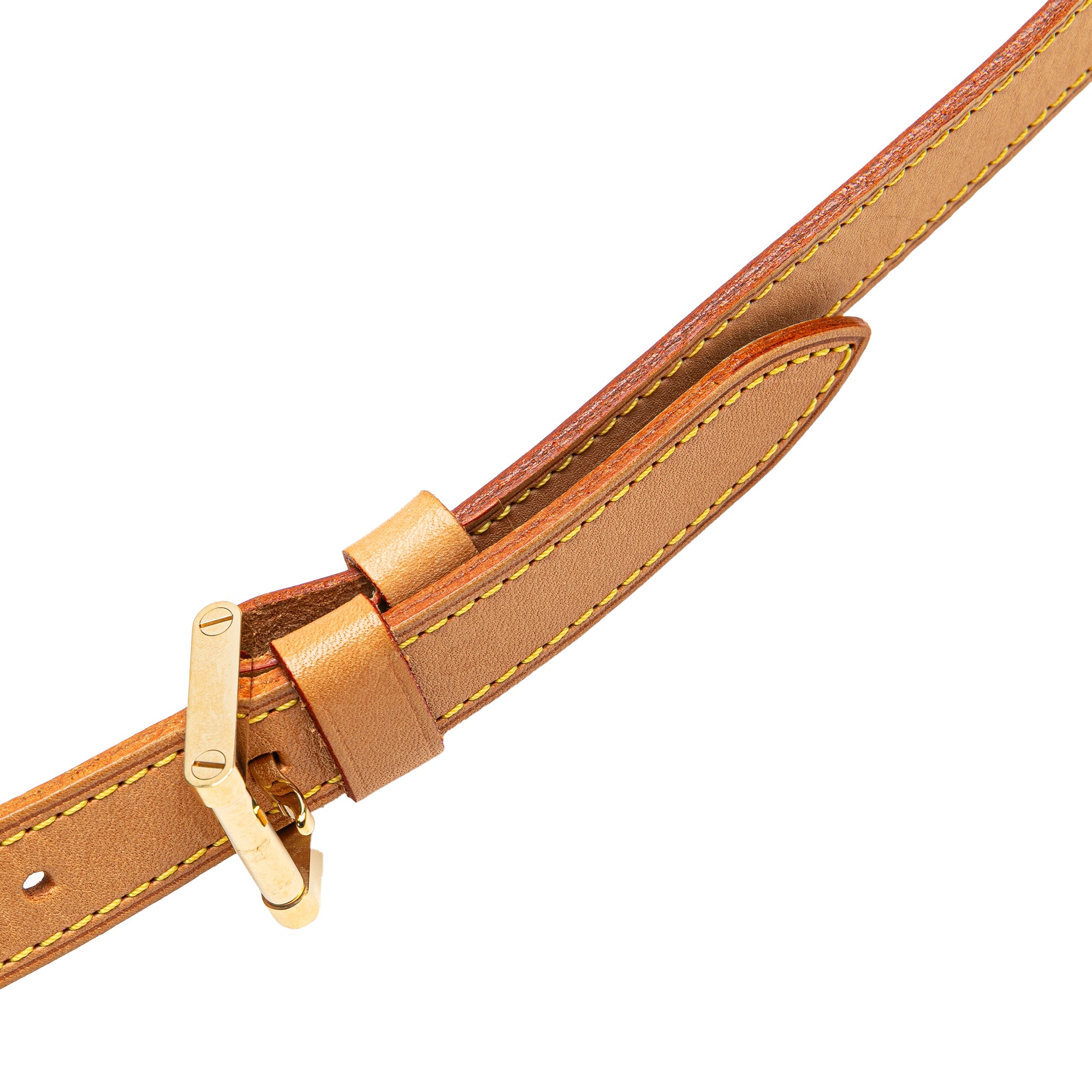 The Thompson Street features a monogram vernis leather body, an adjustable vachetta leather strap, a front flap with magnetic snap closure, and an interior slip pocket. Retail Price: 750.00