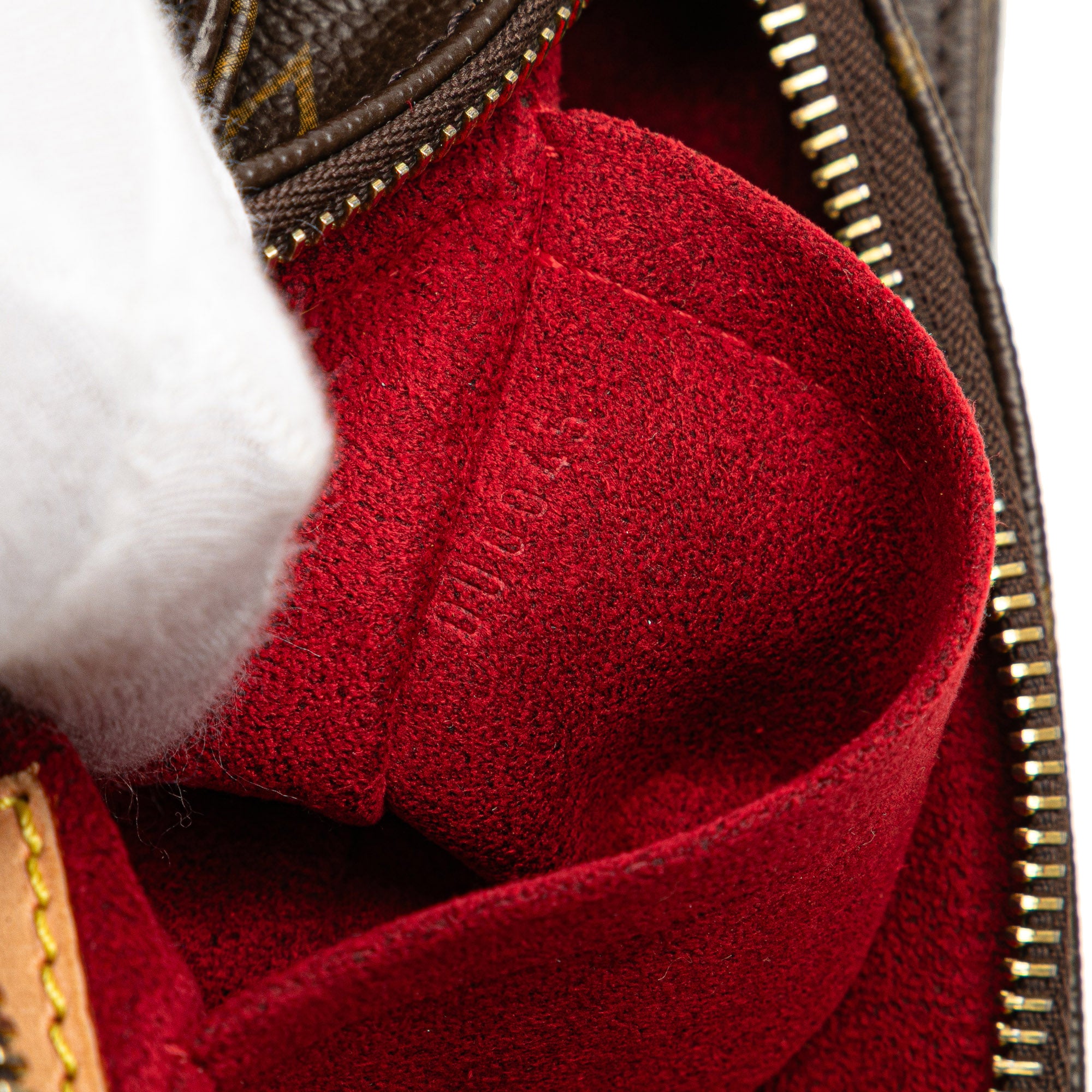 The Viva Cite MM features a monogram canvas body with vachetta leather trim, an adjustable vachetta leather shoulder strap, exterior flap pockets, a top zip closure, and interior slip pockets. Retail Price: 1345.00
