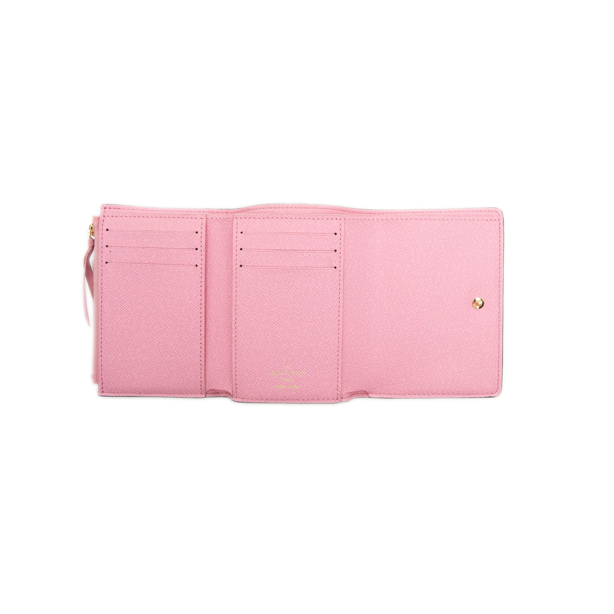 The Victorine wallet features a printed monogram canvas body, a folding and snap button closure and, interior zip and slip pocket. Inclusion: Dust bag, box. Retail Price: 795.00