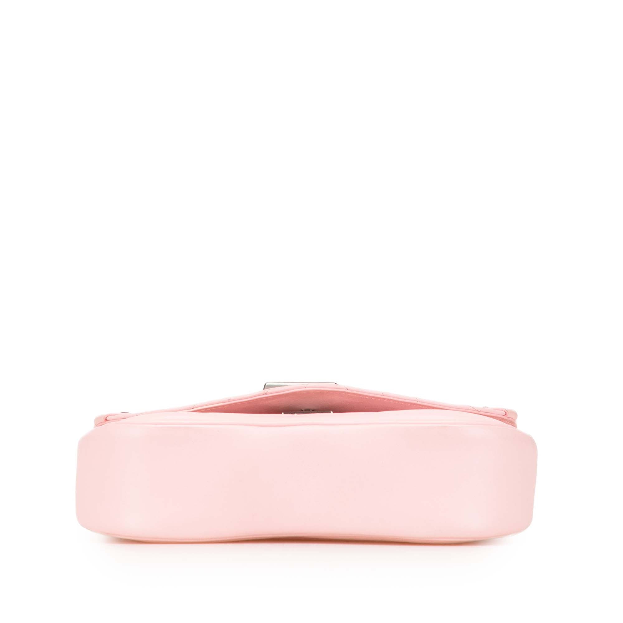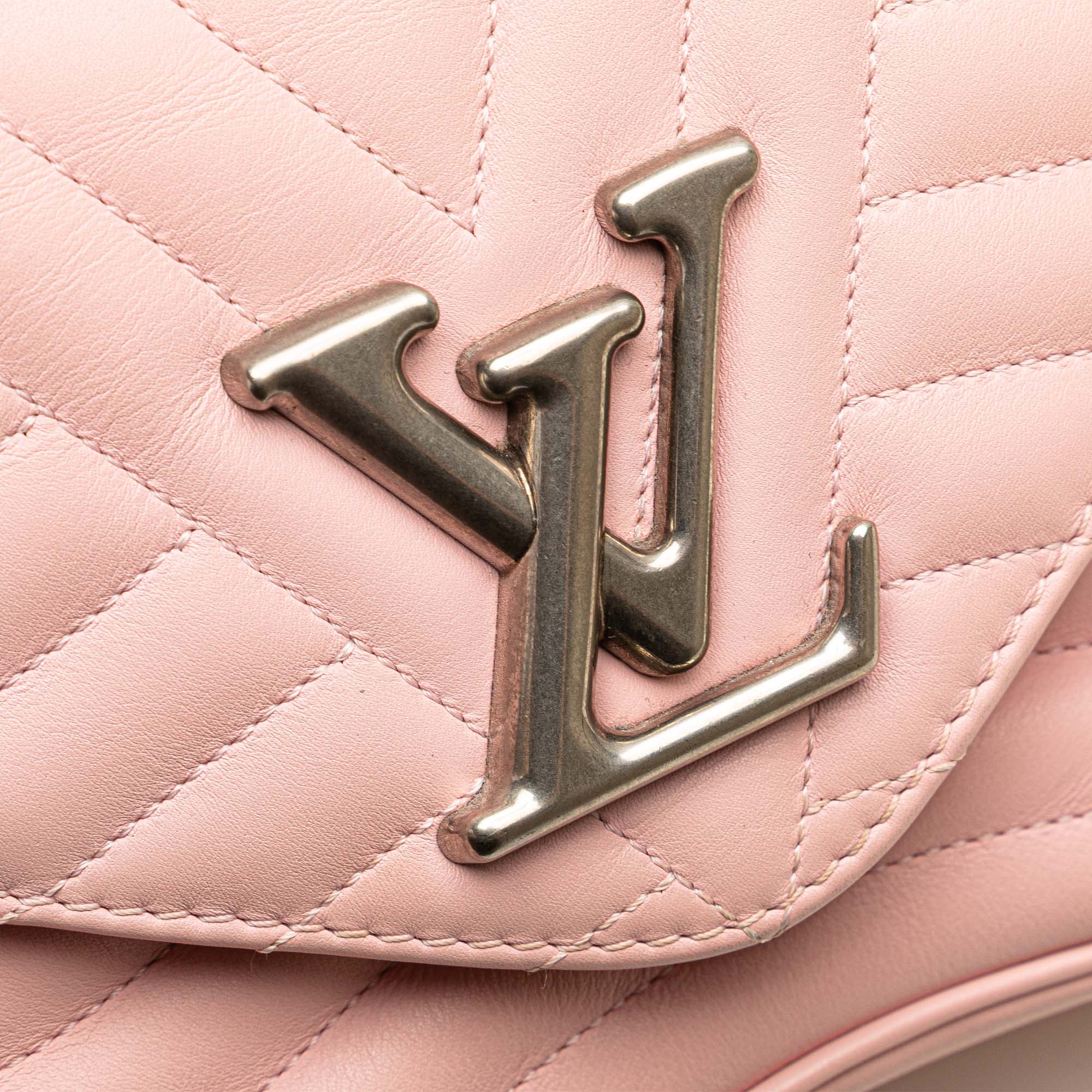 The New Wave Chain MM features a leather body, a detachable flat leather top handle, a silver-tone curb chain link shoulder strap with leather guard, a front flap magnetic snap closure, and an interior slip pocket. Inclusion: box. Retail Price: 2460.00