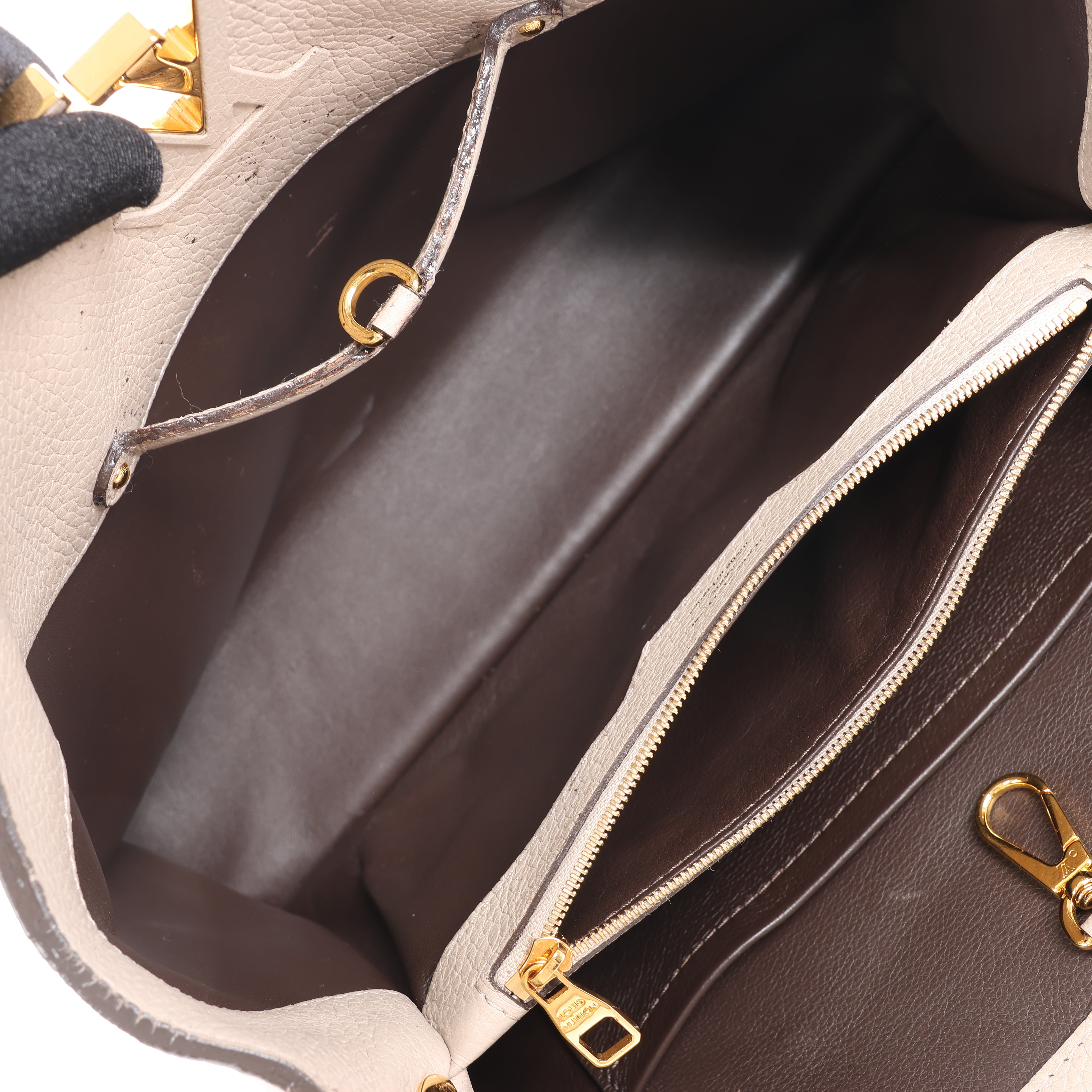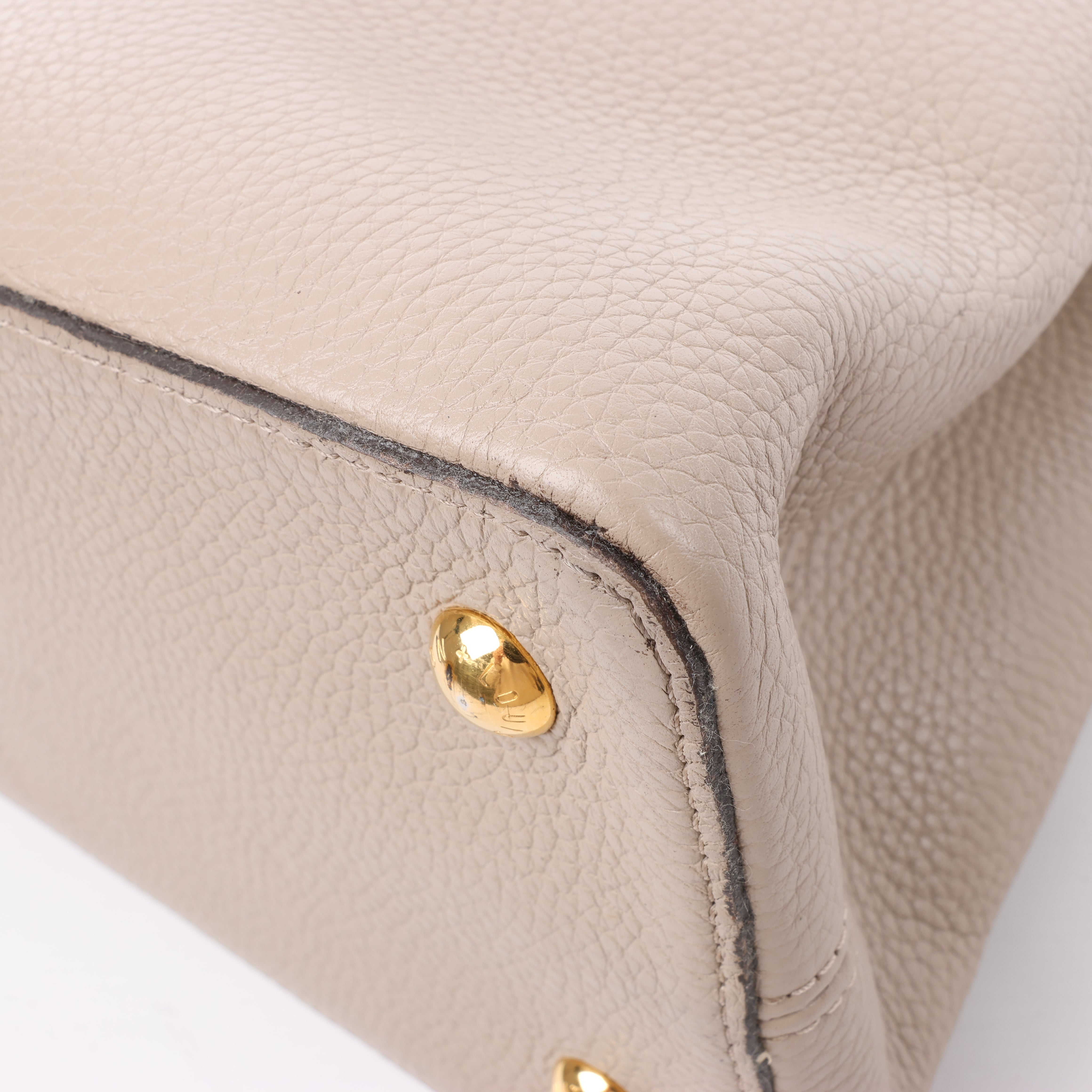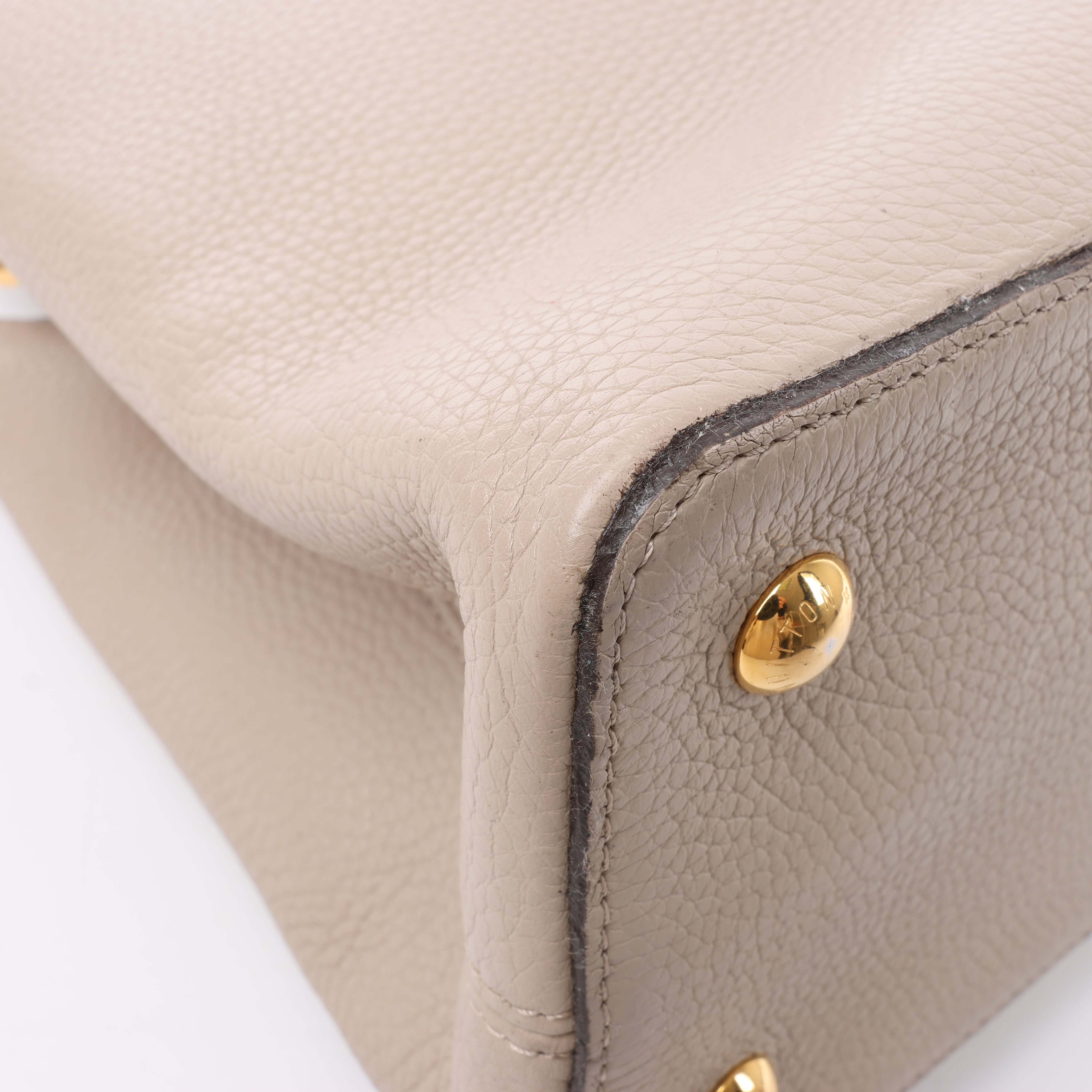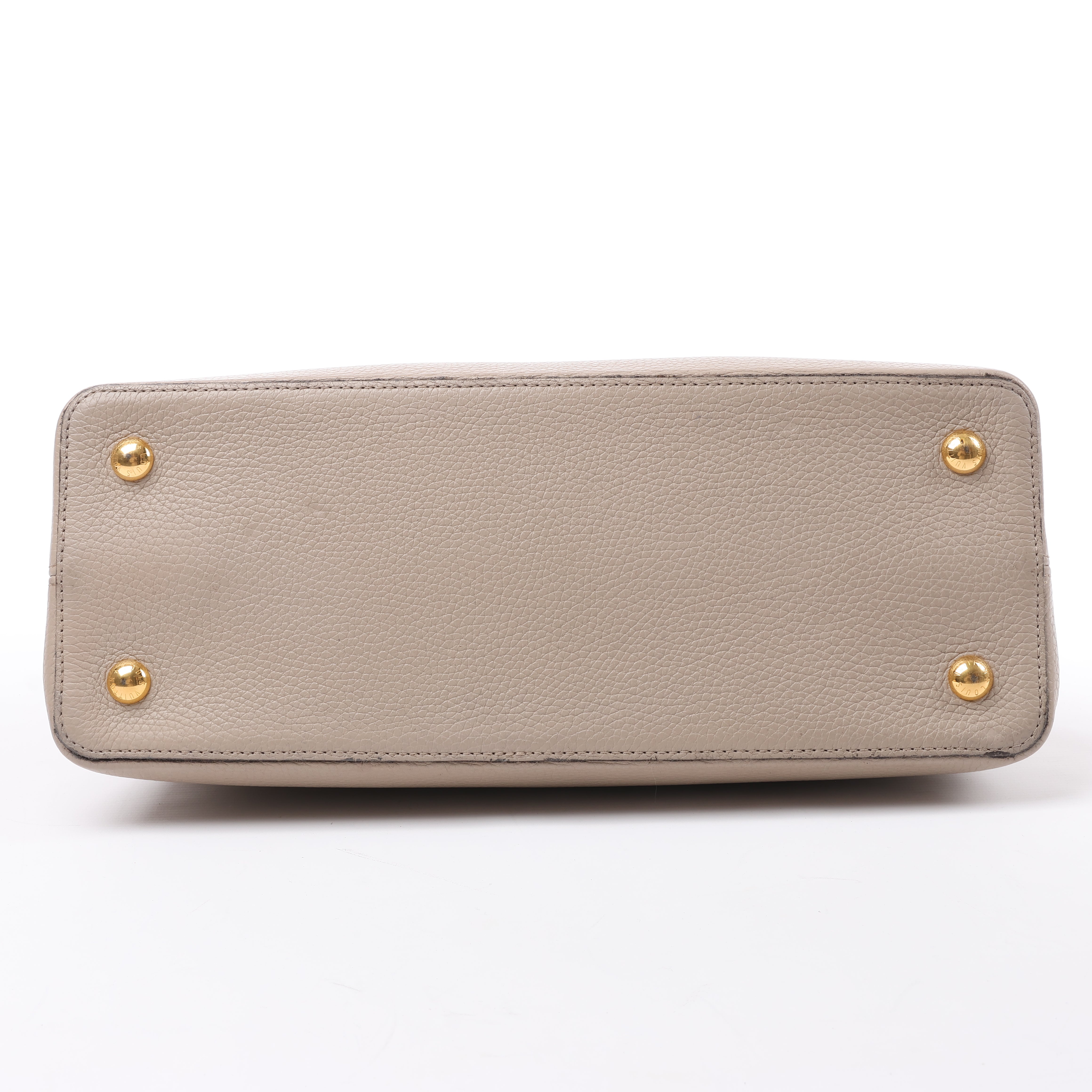 Brand: LOUIS VUITTON Model: CapucinesSize: MM Width: 35,5 cmHeight: 23 cm Exterior Condition: ExcellentInterior Condition: ExcellentCondition Details: The exterior leather is clean and beautiful with light creases. The handle is clean and firm, but has some creases. Note: The shoulder strap is missing. The hardware remains bright and clean, but has hairline scratches. The interior leatheris in excellent condition, but some glazings are destroyed that made a little mess. Overall the bag looks great! Date code: TR4123Colour: Beige (Taupe)Interior Colour: Brown Hardware Colour: GoldMaterial: LeatherComes With: Dustbag, Entrupy certificate