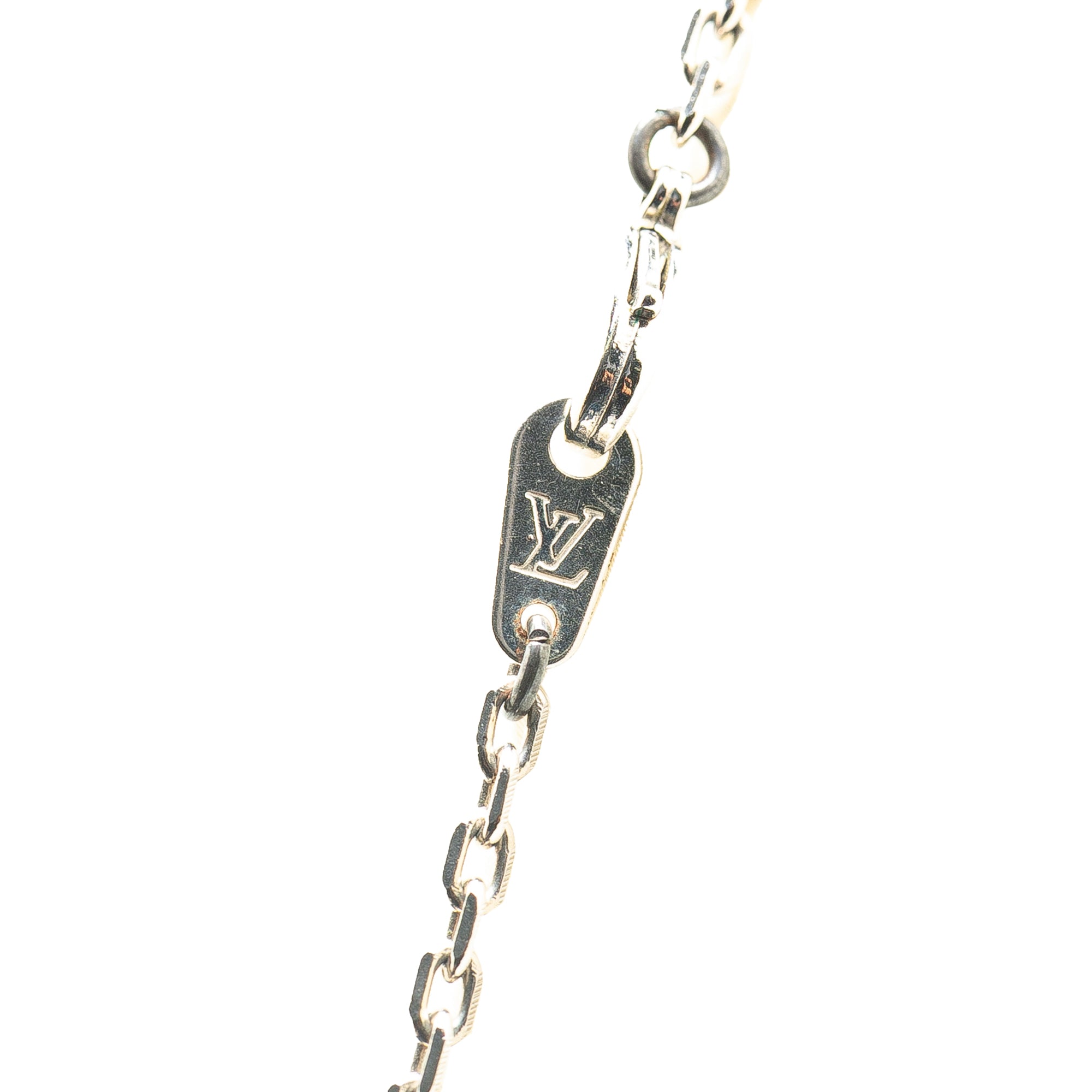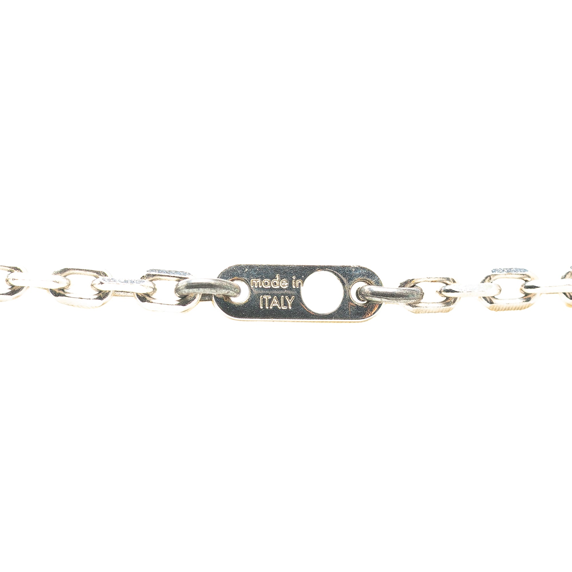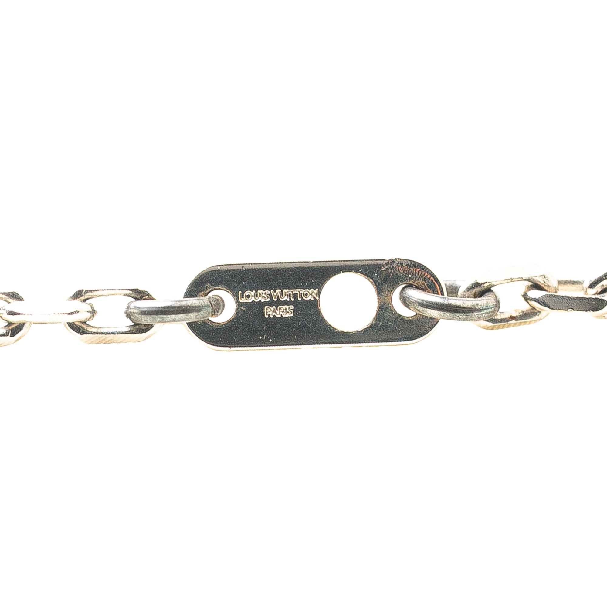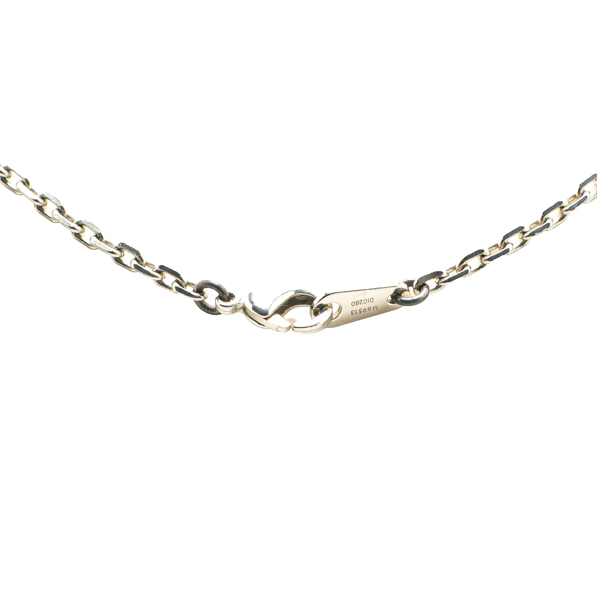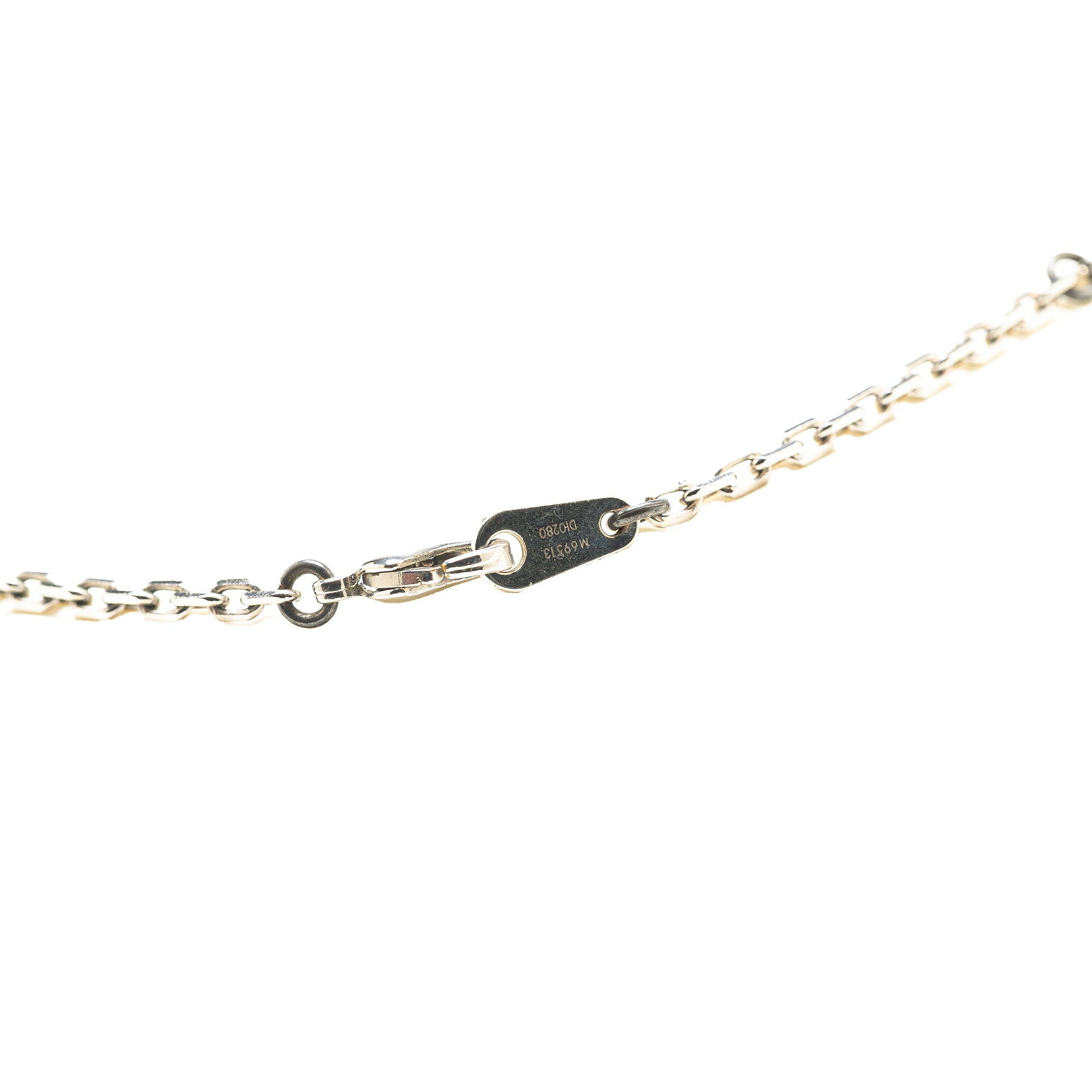 This necklace features a silver tone metal body, a logo and dandy-inspired charm, and a lobster clasp closure. Retail Price: 845.00