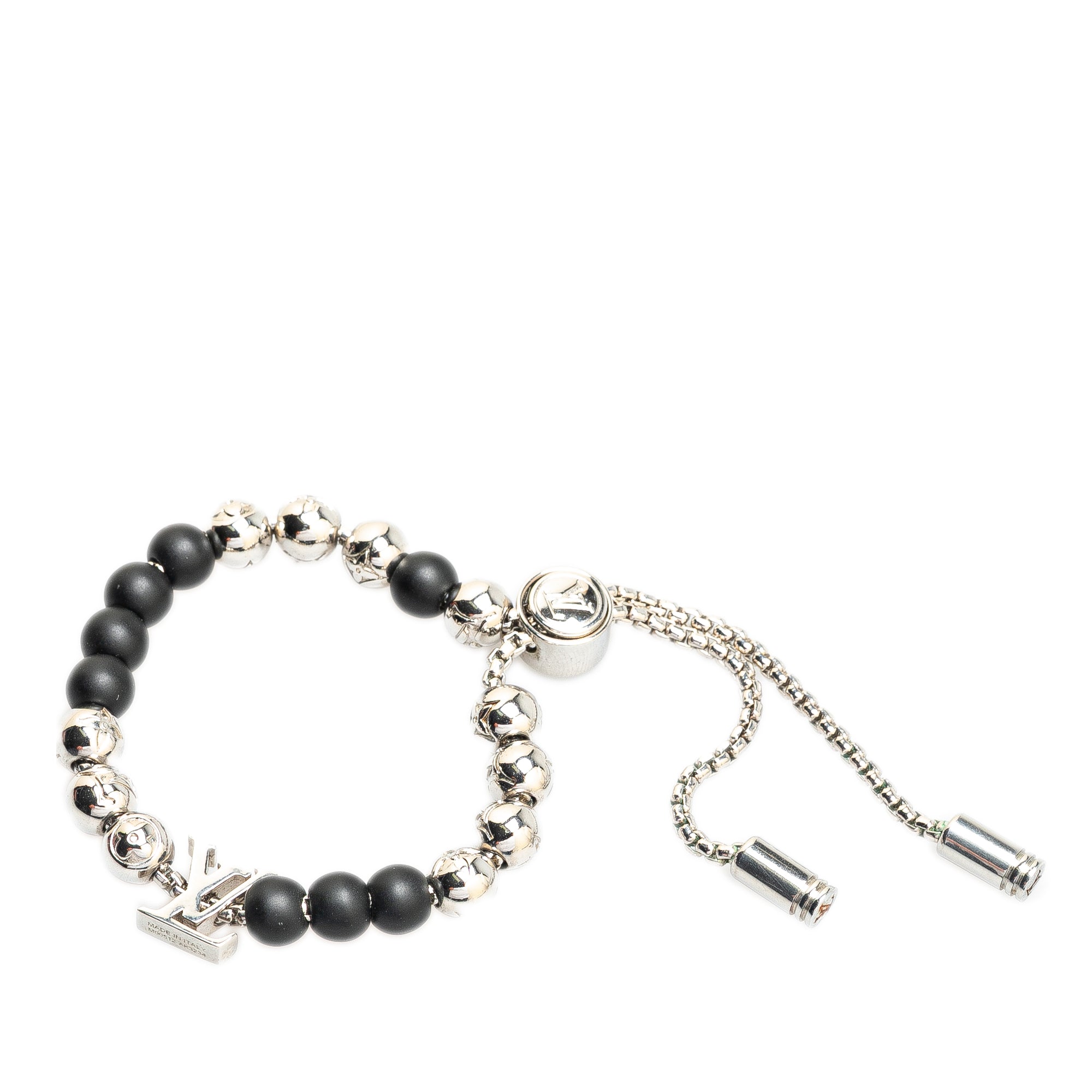 This bracelet features a silver-tone metal body with black beads and adjustable wrist band Retail Price: 600.00