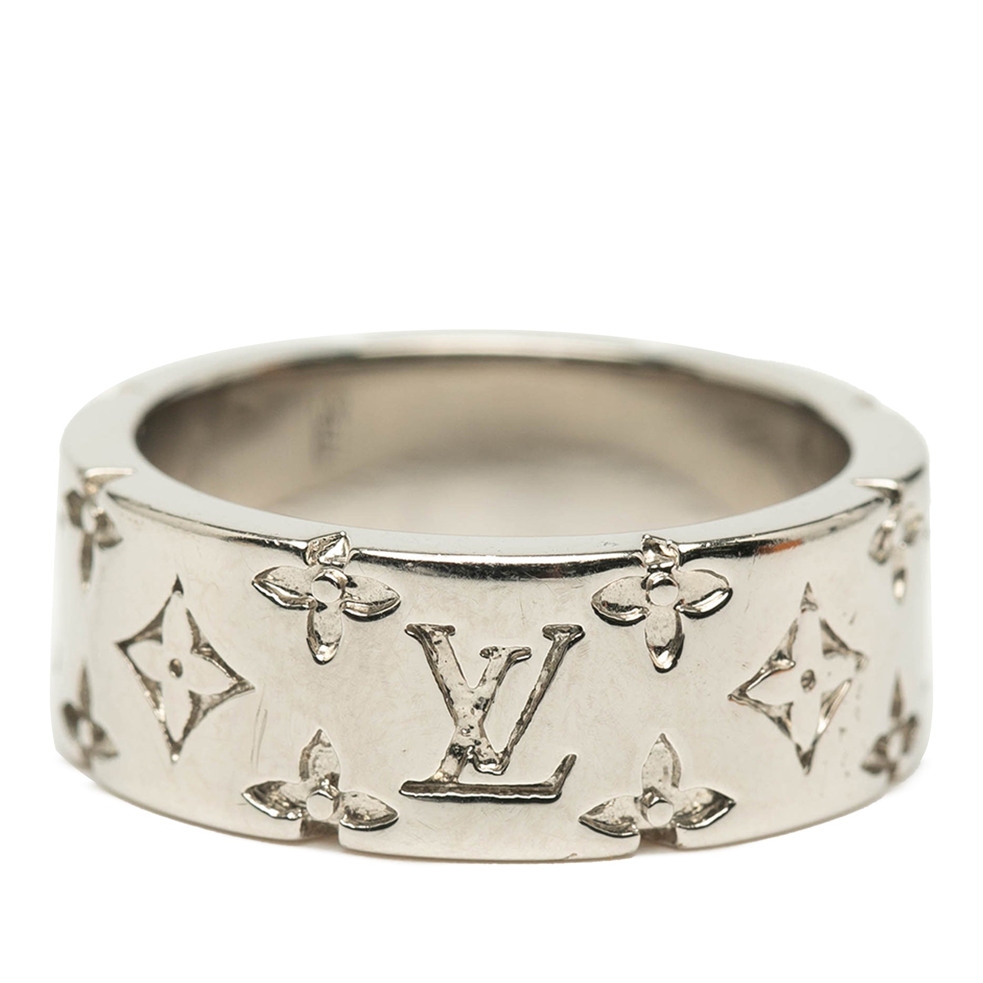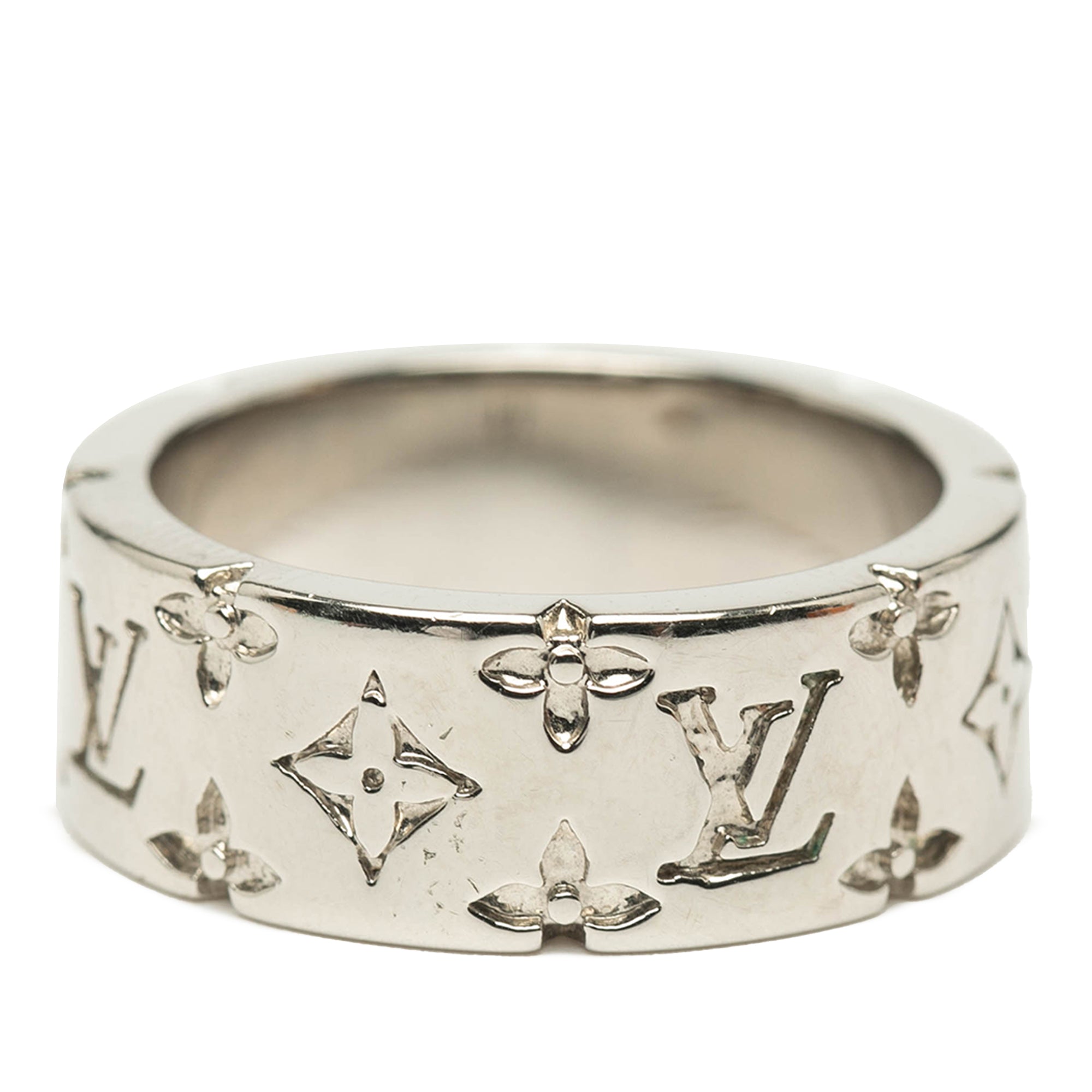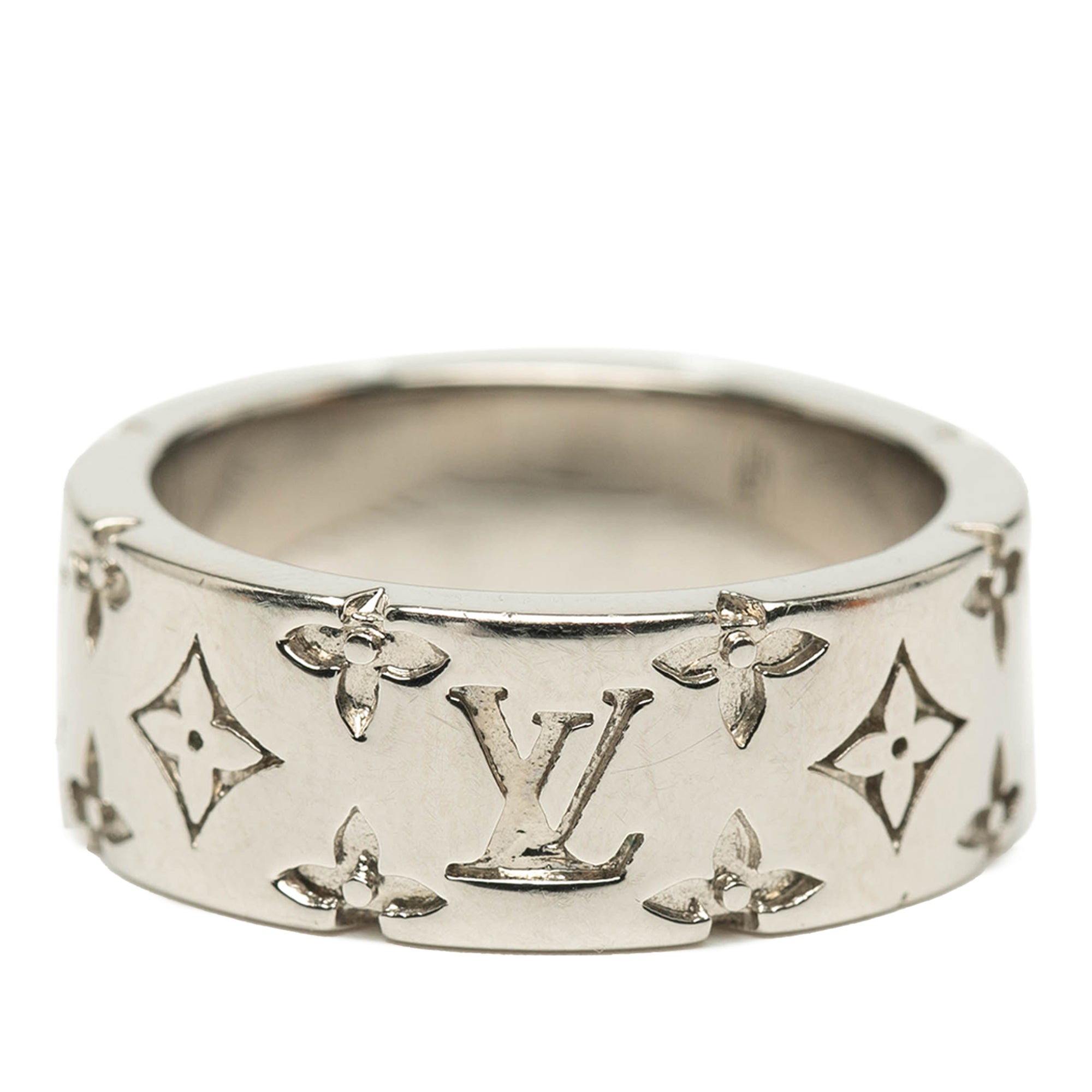 Louis Vuitton Silver Plated Monogram Mosaic Ring L