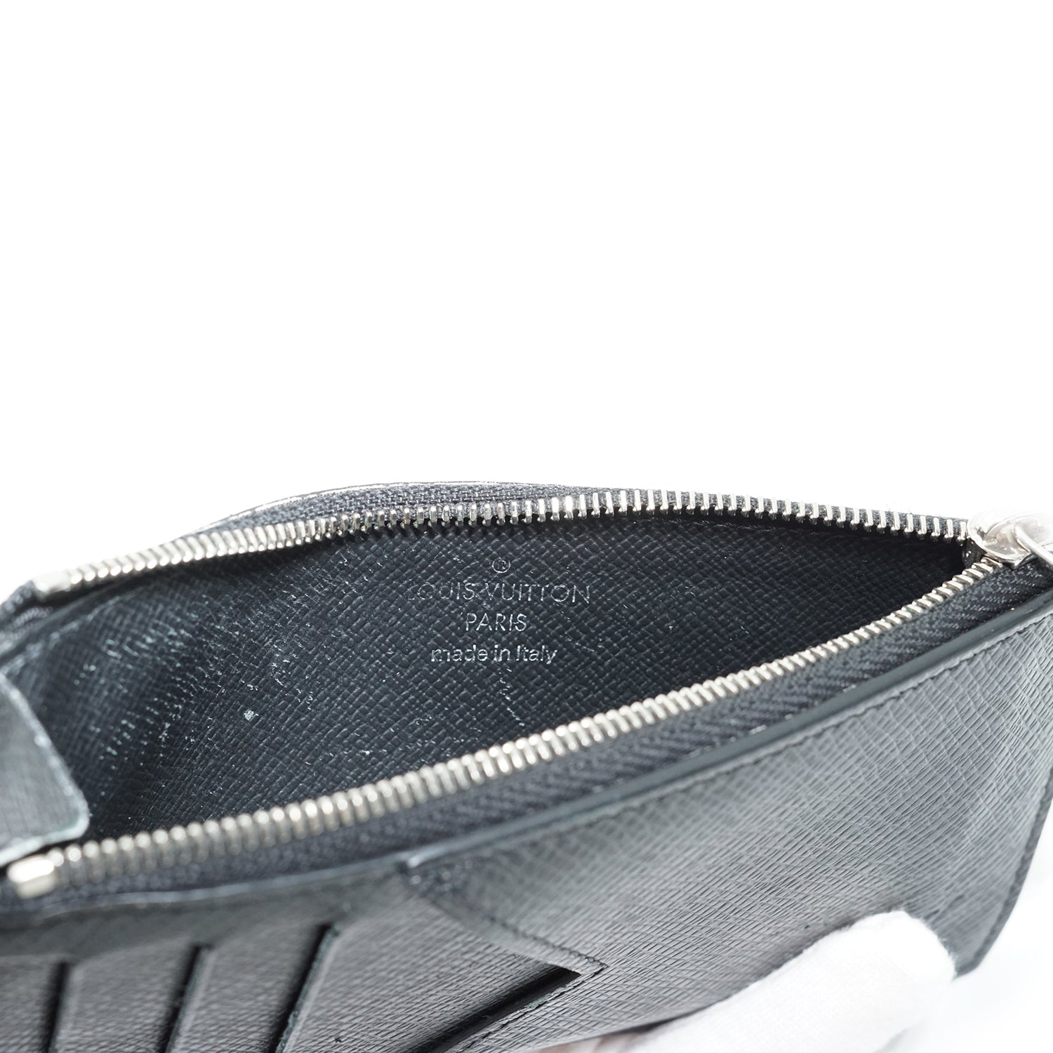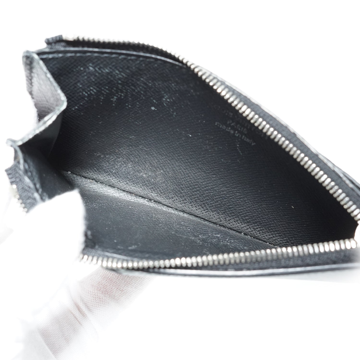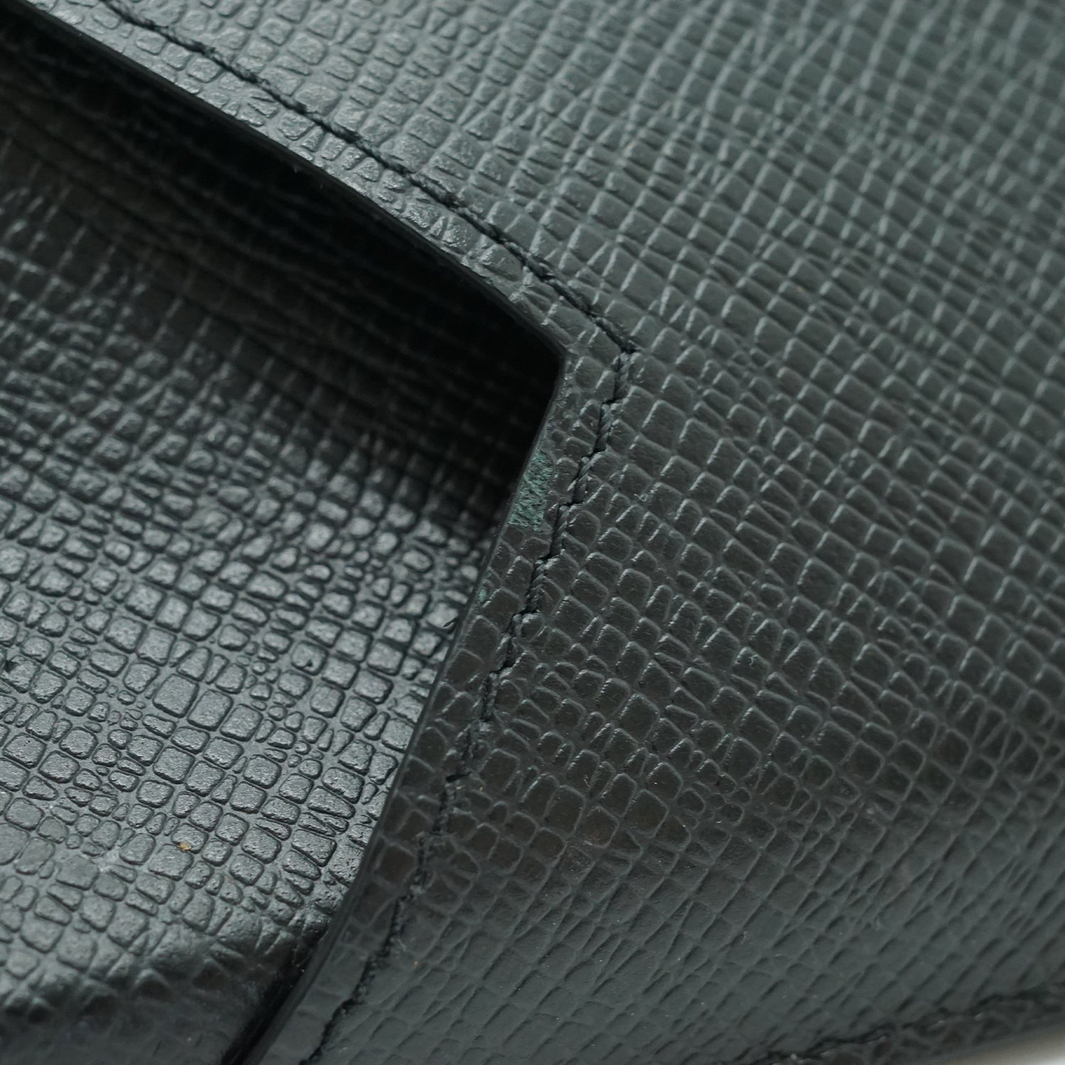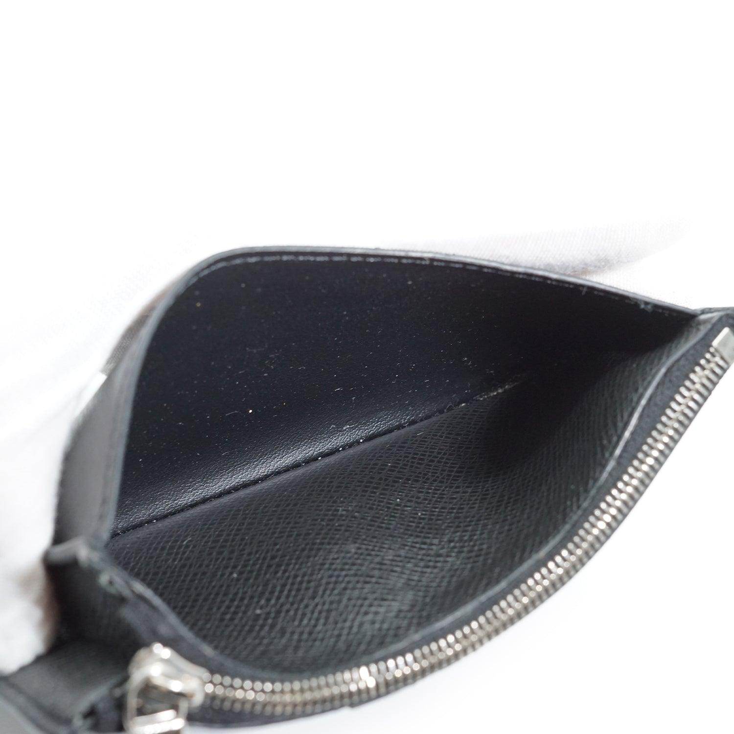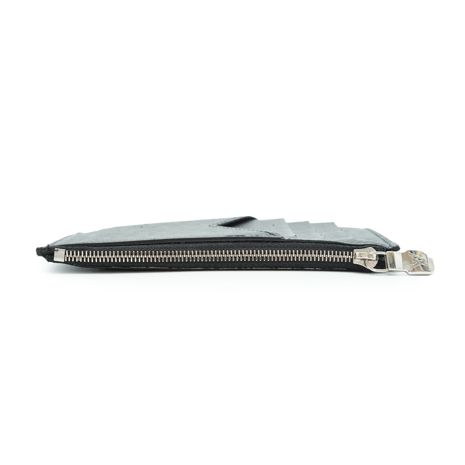 Taiga Coin Card Case Black LeatherDepth: 4cmHeight: 7.5cmWidth: 14.5cmDiscoloration: Some leather discoloration throughout the insideScratch: Visible scratches throughout the insidePeeling: One side peeling/leather layers coming apart in one sectionInclude: Box, dust cover, care guideComments: Date code illegible/unfound