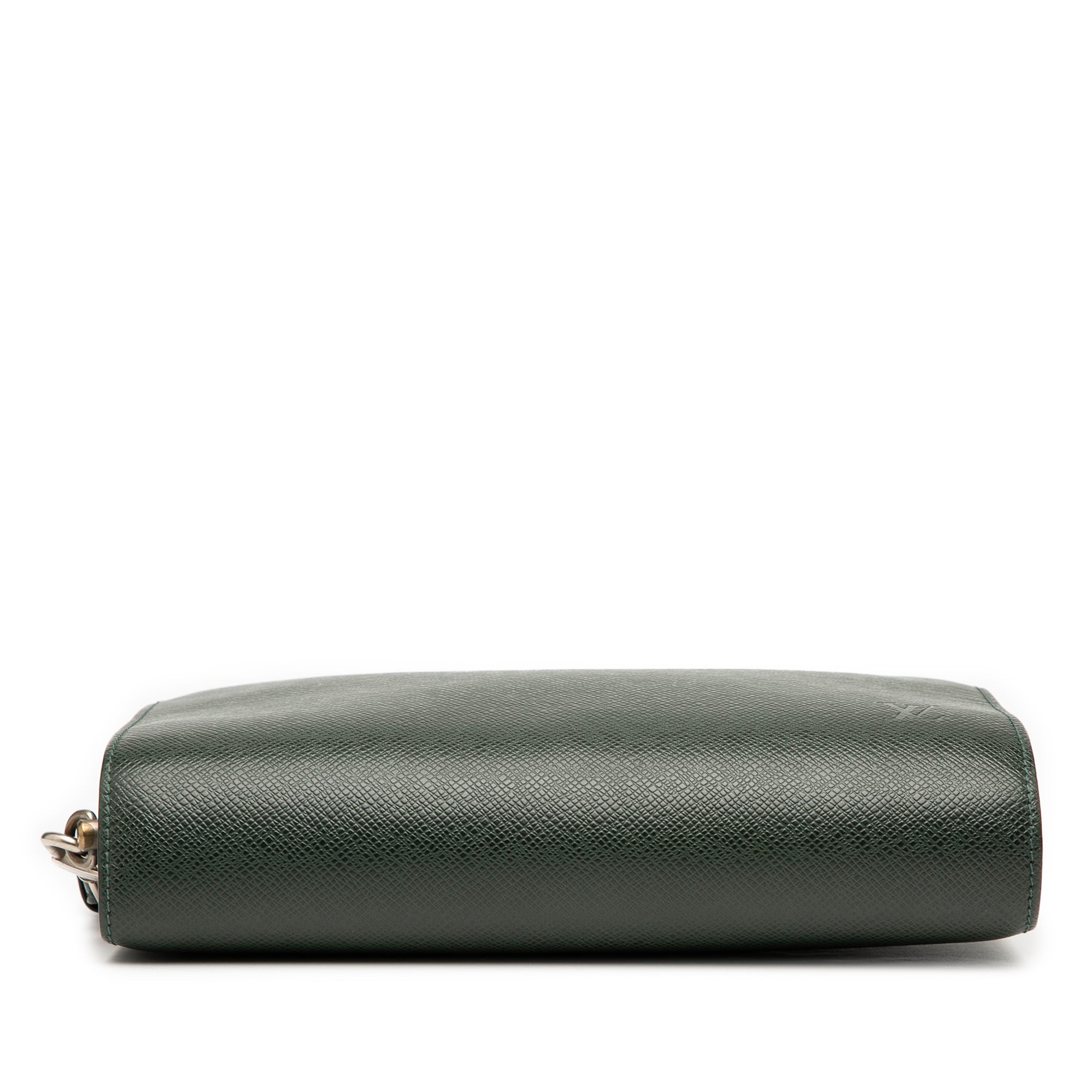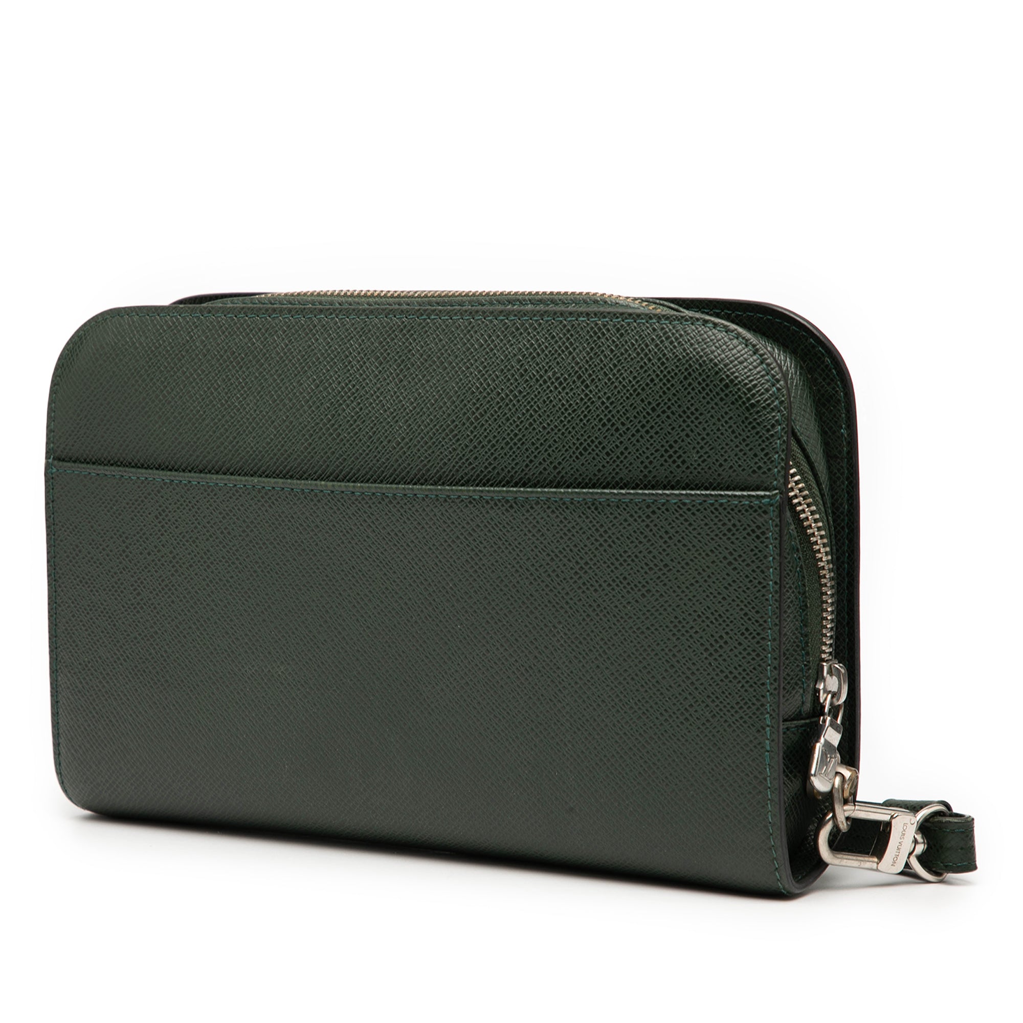 The Baikal features a taiga leather body, a flat leather wristlet, a top zip closure, an exterior slip pocket, and an interior slip pocket. Retail Price: 703.00